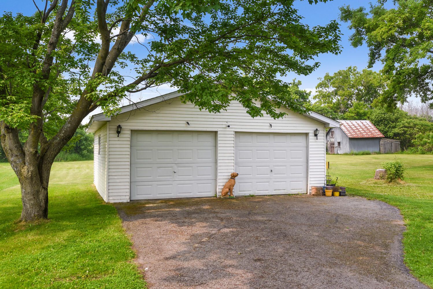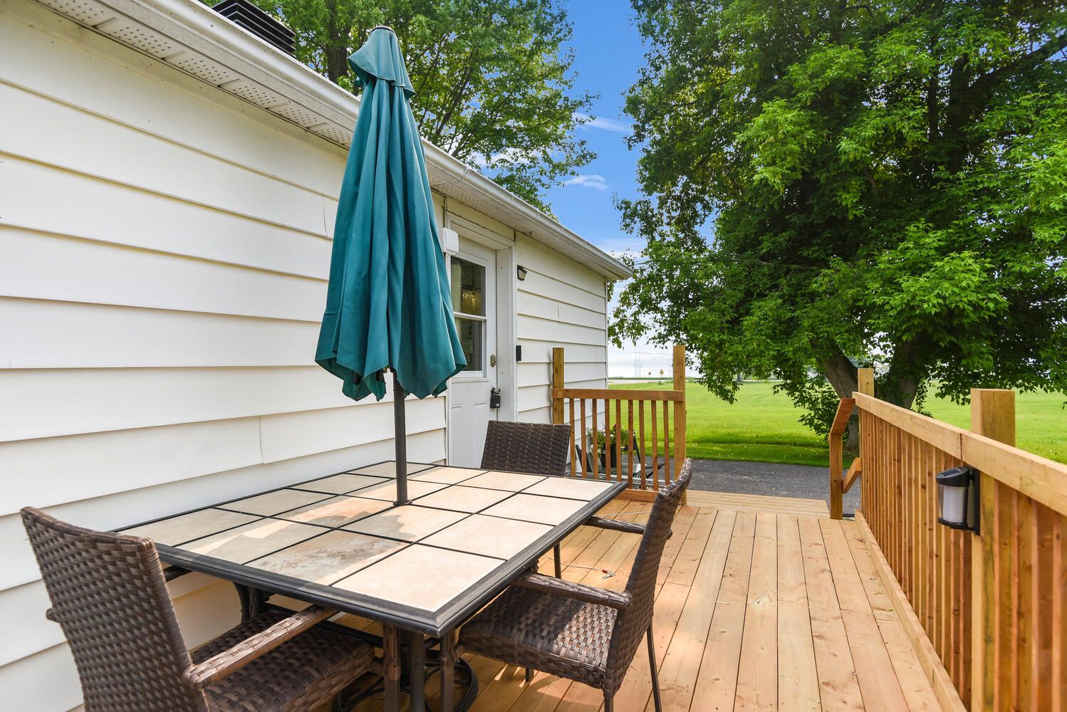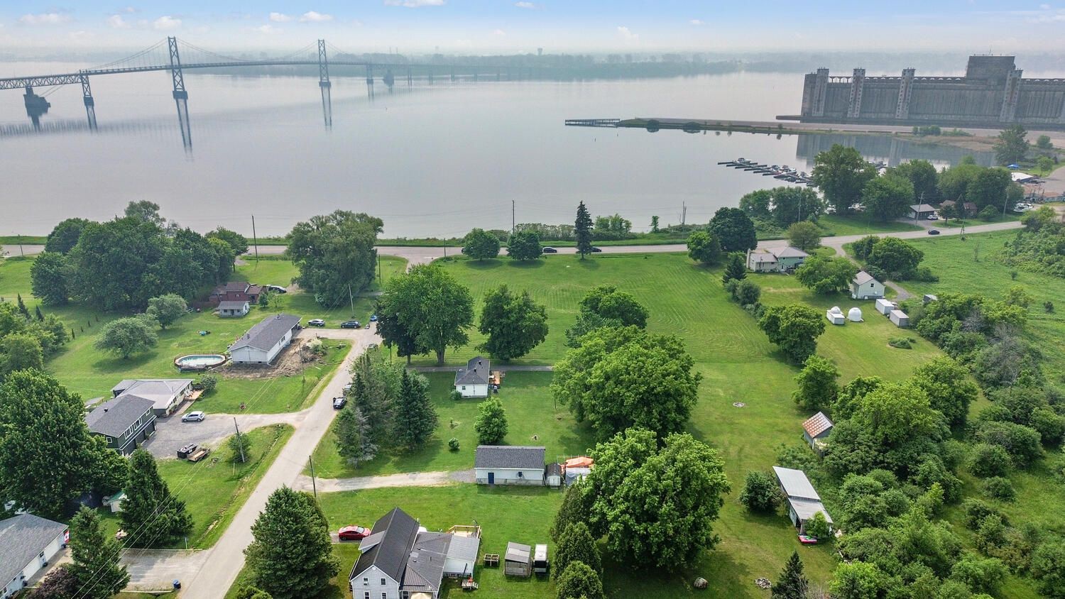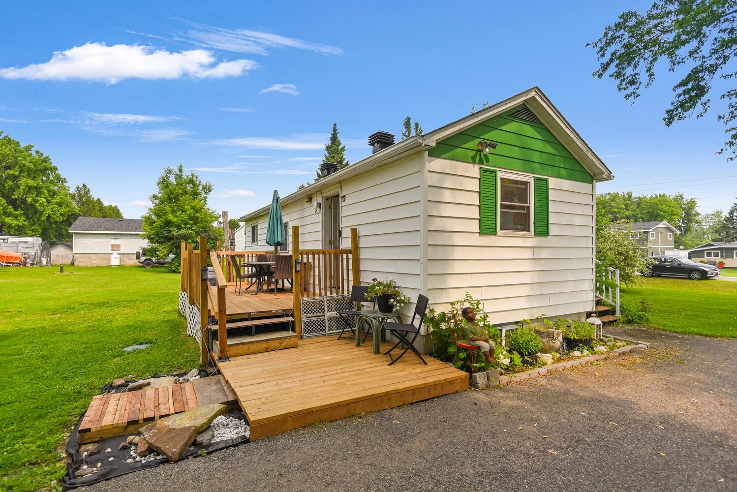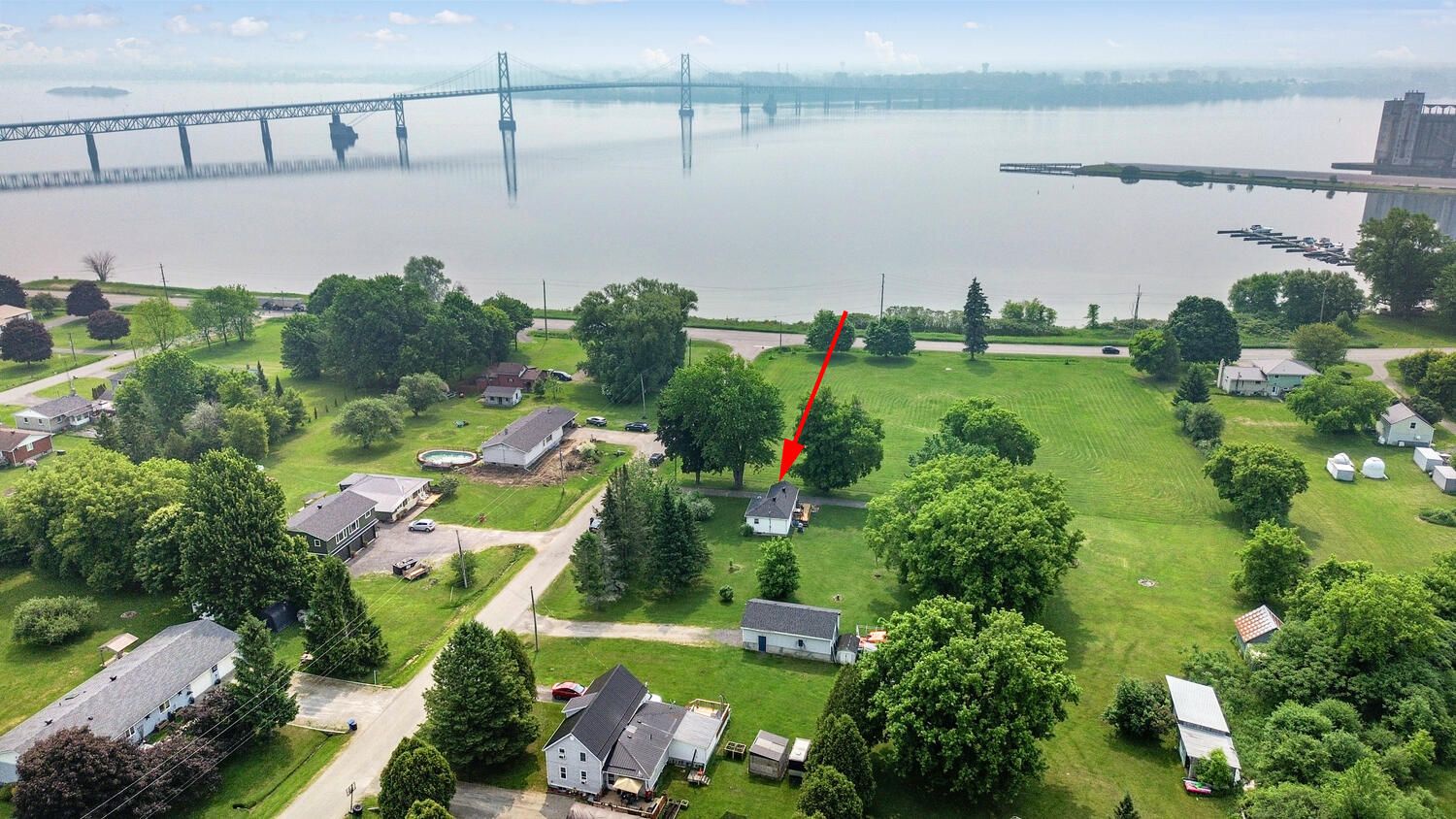 LOCATION as they say. This lovely home and property boasts full riverview and view of the Ogdensburg Prescott Bridge and all the Seaway Traffic. Cozy bungalow on spacious treed lot. Well maintained. Aluminum siding. 2 bedrooms. Living area. Eat in Kitchen. Front porch for enjoying that sunrise with your coffee and book. Back patio with Gas BBQ hookup. Full 4 piece bath. Double car garage with opener and electric. This is a perfect property for a starter home, small family, first time buyer, down sizer and investor. Video Door Bell, Security Code Lock, Exterior Cameras. Sump Pump. Beautiful views, fishing just across the road. Restaurant nearby. Convenience Store. Only 1 hour to Ottawa and near all important transportation and amenities. 20 minute to Brockville. Song Birds, Deer and Bunnies included. As Is.