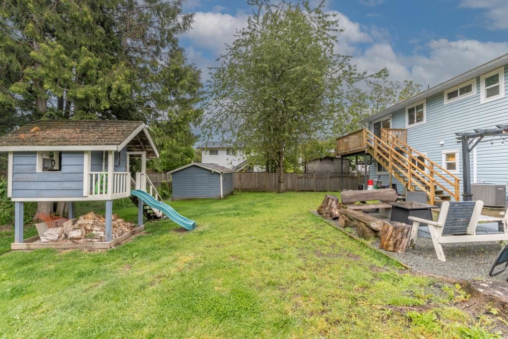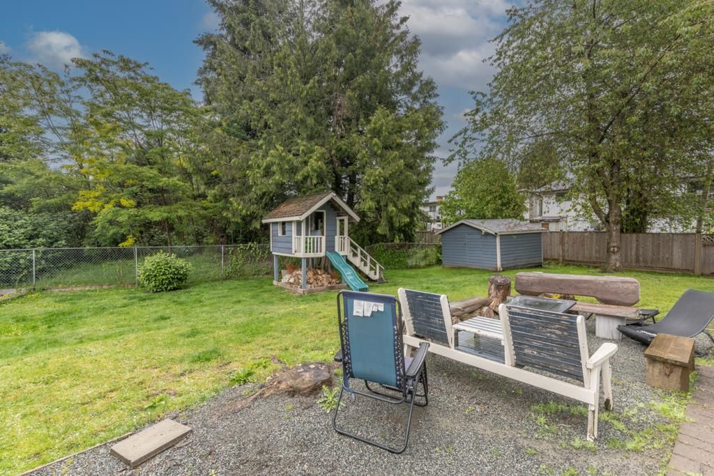 LOCATION! LOCATION! LOCATION! QUIET CUL-DE-SAC. Beautiful, private setting. Well-kept, fenced, adorable 4-bedroom and 2.5 bath basement entry home situated in West Abbotsford best location . Possibility of a basement suite downstairs. Features include updated windows, furnace, air conditioner, updated sundeck , Updated Shed (12' and 12') , treehouse and Fenced backyard, . If you enjoy spending time outside on a updated sundeck and fenced backyard, you will love this oasis. The house backs onto Fishtrap Creek and a walking trail. Live next to a beautiful natural setting with sitting and resting areas, a park, and a pond where you can watch ducks and birds. Plenty of walking and hiking trails!. Great central location—close to schools, recreation and quick freeway access for commuters.