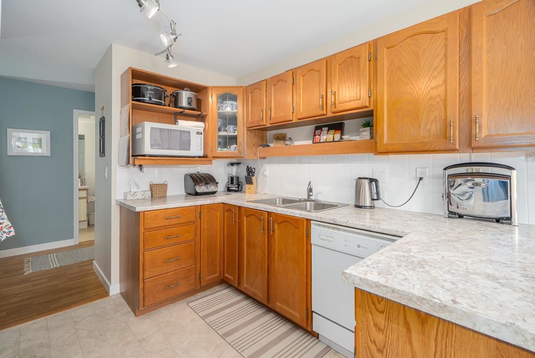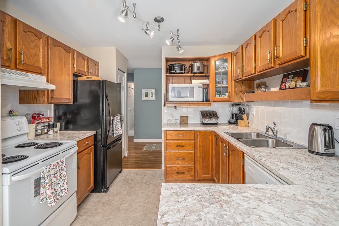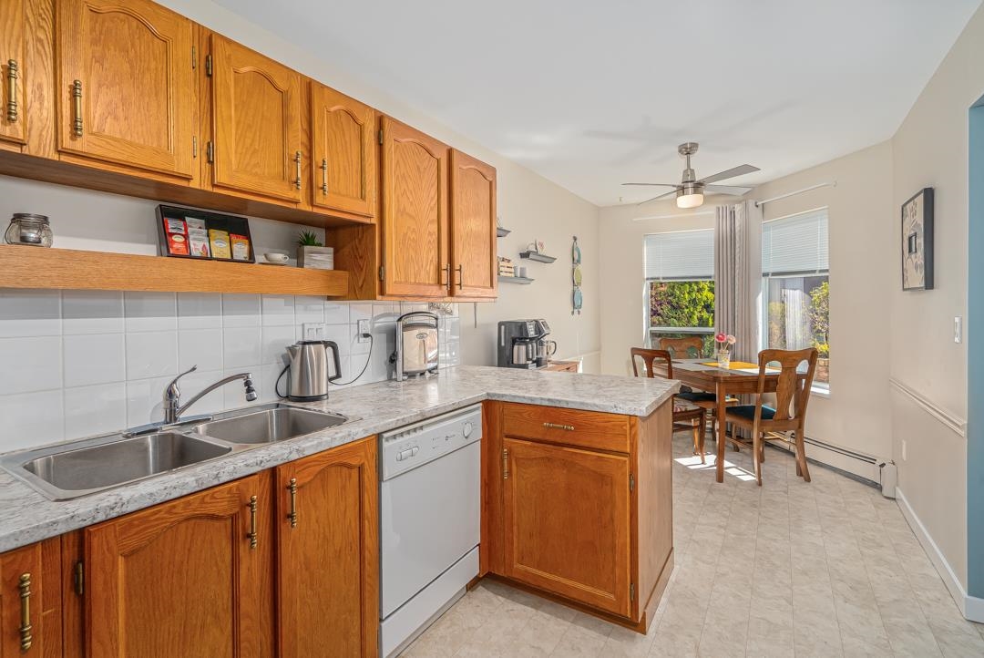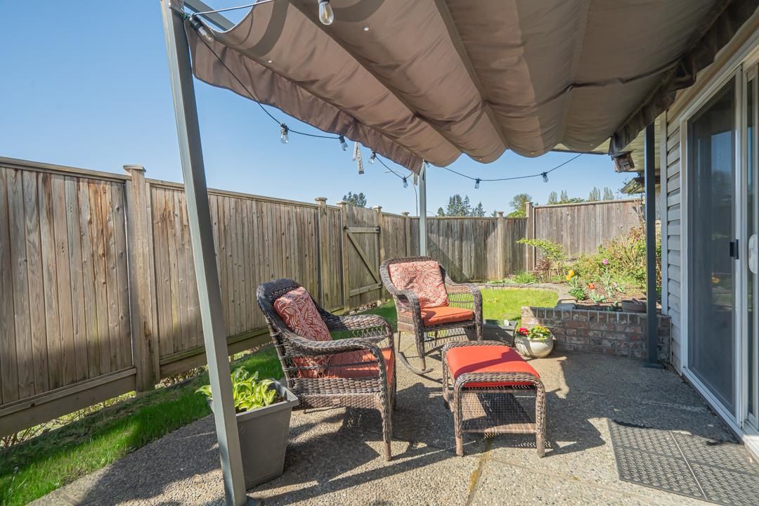 This bright and spacious 1,250 sq ft, 2 Bed / 2 Bath condo feels like a rancher style house! It's a Southeast facing, ground floor corner unit which gives it lots of light with huge wrap around patio boasting a large pivate yard and garden. This home is a very well kept unit with updated flooring, fixtures and countertops. Canterbury Gate is centrally located, only a 12 min walk to Sevenoaks Mall, 5 min to Superstore; 5 min drive to Hwy 1 and is a well maintainted and gated complex. Building amenities include a good-sized community room for your parties & fully equipped workshop for handymen and hobbyists! These units rarely come available - don't miss out! Live and Invest in Peace and Convenience!