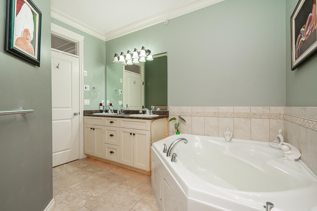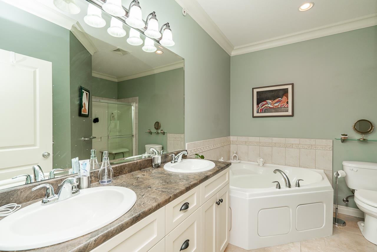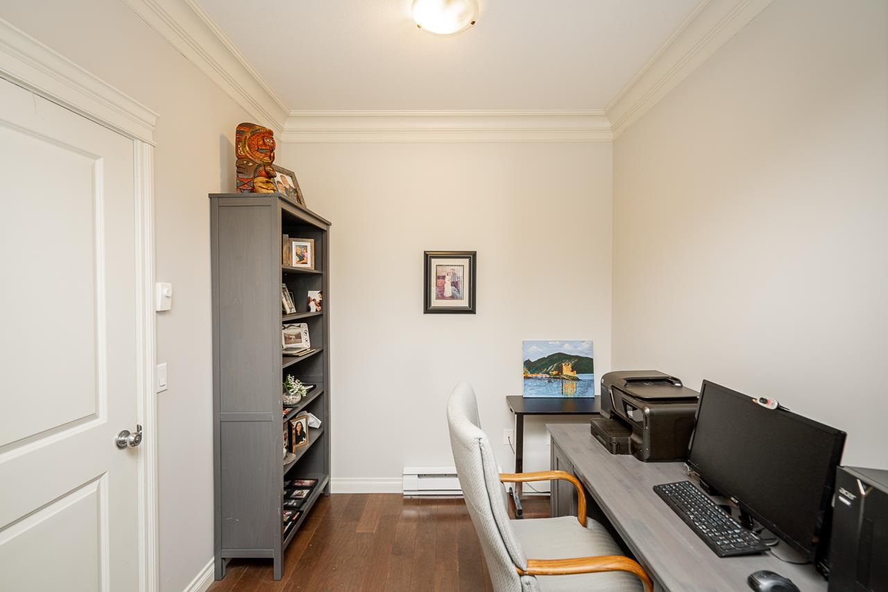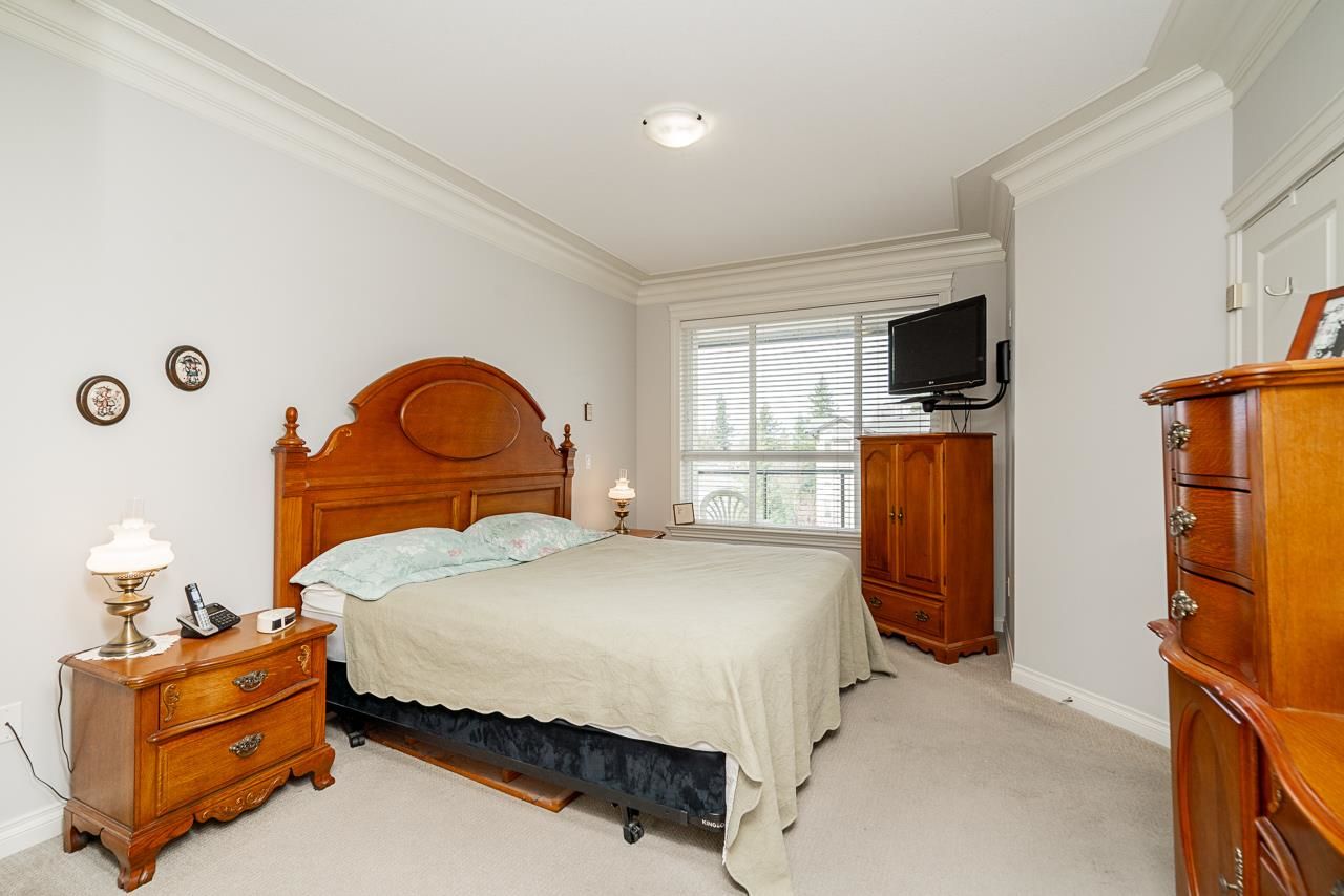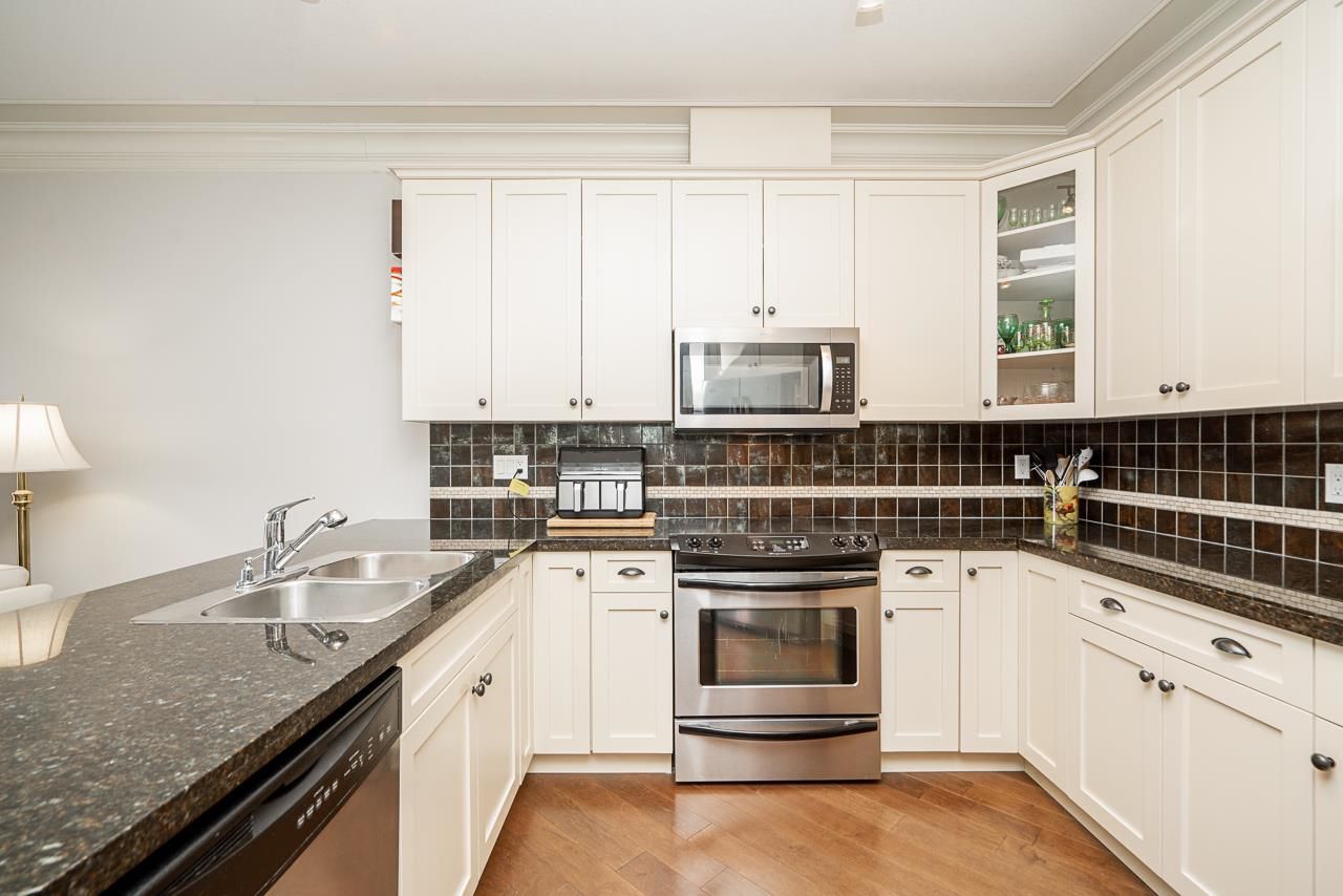 WOW! Almost 1,000 SQ FT - TOP FLOOR - 1 BED + DEN + 2 BATHS at the coveted GARIBALDI LANE. Super quiet inside corner unit overlooking the courtyard. Open floor plan with a super functional kitchen with granite counters and S/S appliances. Crown moulding through out. Plenty of natural light with an abundance of windows and a great-sized balcony. Generously sized primary bedroom with a walk-in closet. No storage issues here with an oversized utility room PLUS a storage Locker. Ensuite has a soaker tub, separate stand up shower and double vanity. Also a convenient powder room perfect for guests. In-suite laundry and a beautiful stonework fireplace. A perfect location on the border of West and Central Abbotsford, walking distance to Trading Post, Restaurants, transit and all amenities.