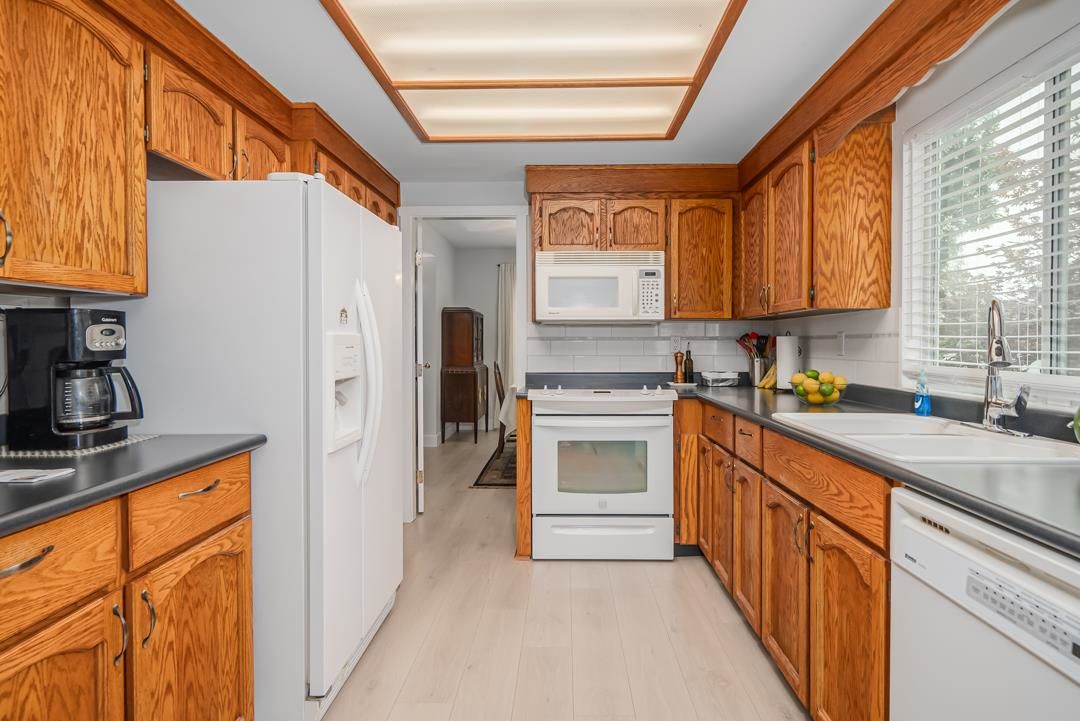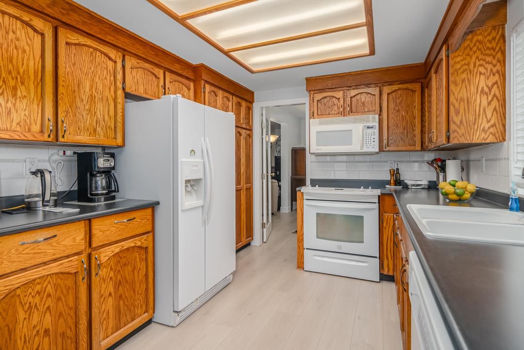 Incredible location! Walk to all levels of great public and private schools, parks and sports fields. Large corner lot with mature landscaping and spacious fenced side yard & patios. This 1860 sqft mostly remodelled 2 storey home offers a cozy family room with fireplace off oak style kitchen, separate living room with corner gas fireplace, and formal dining room. The 3 bedrooms upstairs all have walk-in closets and the large primary bedroom has a unique 4 pc ensuite. Recent updates include most flooring & paint. A very clean house with lots of parking and the gated yard would allow for RV or extra parking.