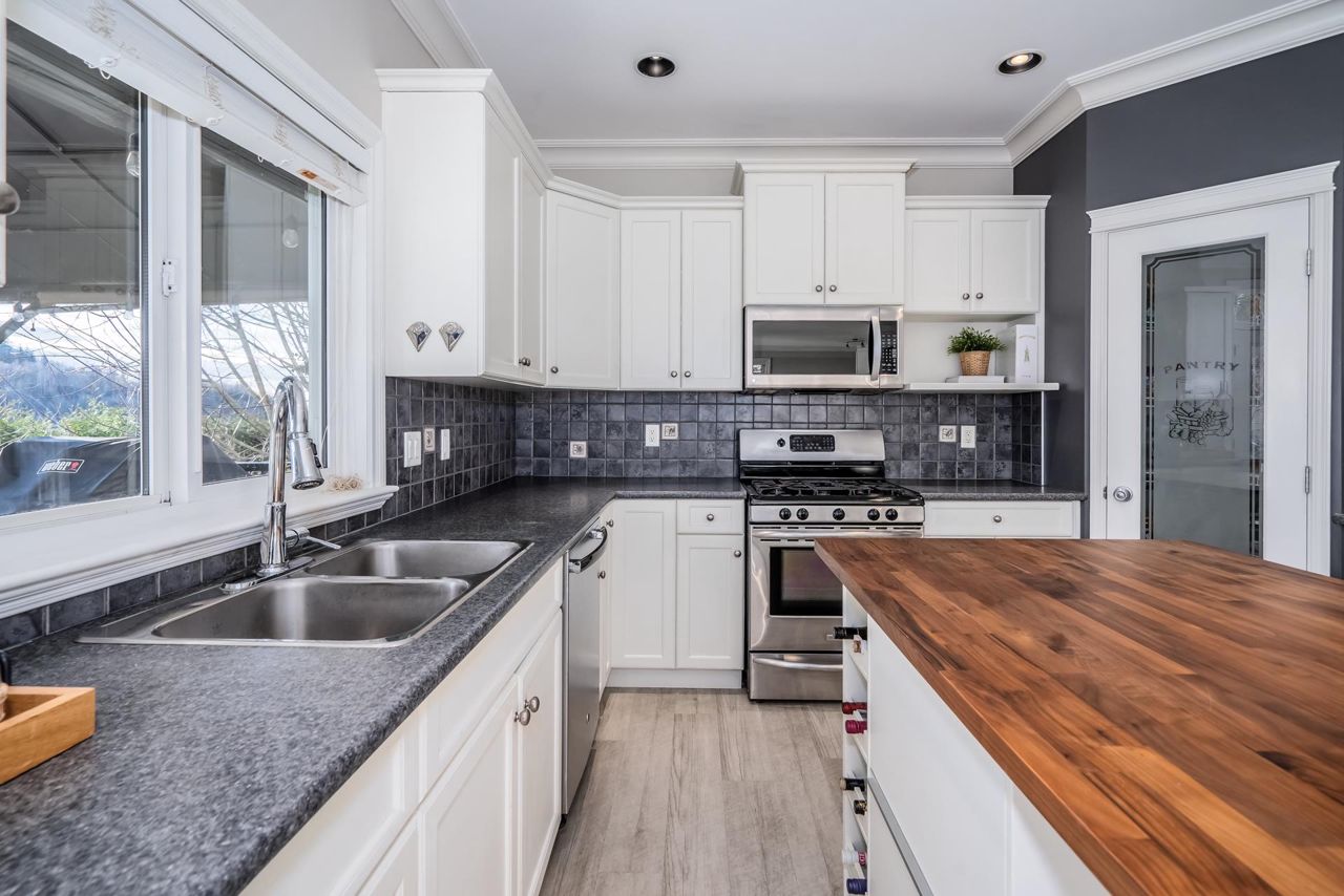 Your new Home! East Abby, McKinley Heights, corner lot, completely renovated, 4 bedrms up, 3 bthrms plus flex room upstairs. Beautiful spacious and bright living room w/ cozy fireplace, dining room and kitchen with view of an established summer garden w/ underground irrigation and covered patio for BBQ and family visits. Home has an office or 5 th bedrm on main and den in the basement. Large mstrbedrm w/ ensuite and 2 walk-in closets. Amazing daylight, walk-out bsmnt suite w/ 2 separate entries, 1 bdrm that can be divided into 2 separate rms w/Washer/Dryer, Gas Stove , Fridge and Dishwsher. This home has endless features. A theatre with 35K media equipment included! EV outlet in garage w/ lots of parking. RV prkng possible in backyard. Close to schools, golf, Hwy and shopping. A must see!