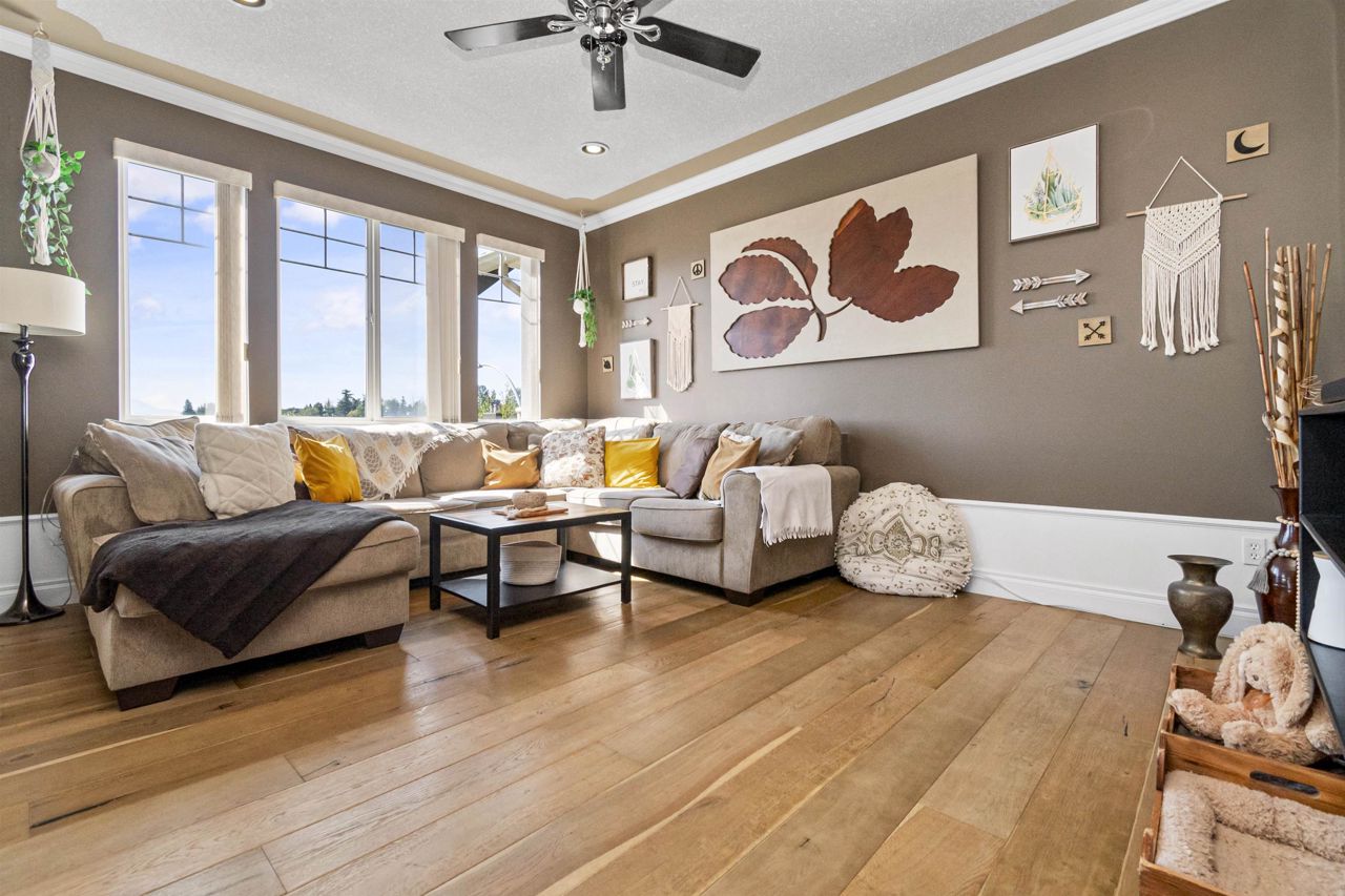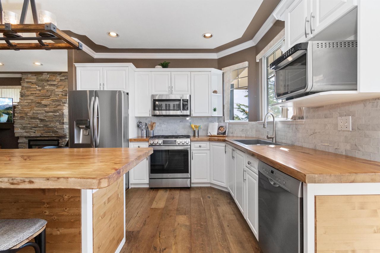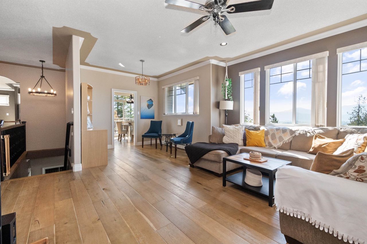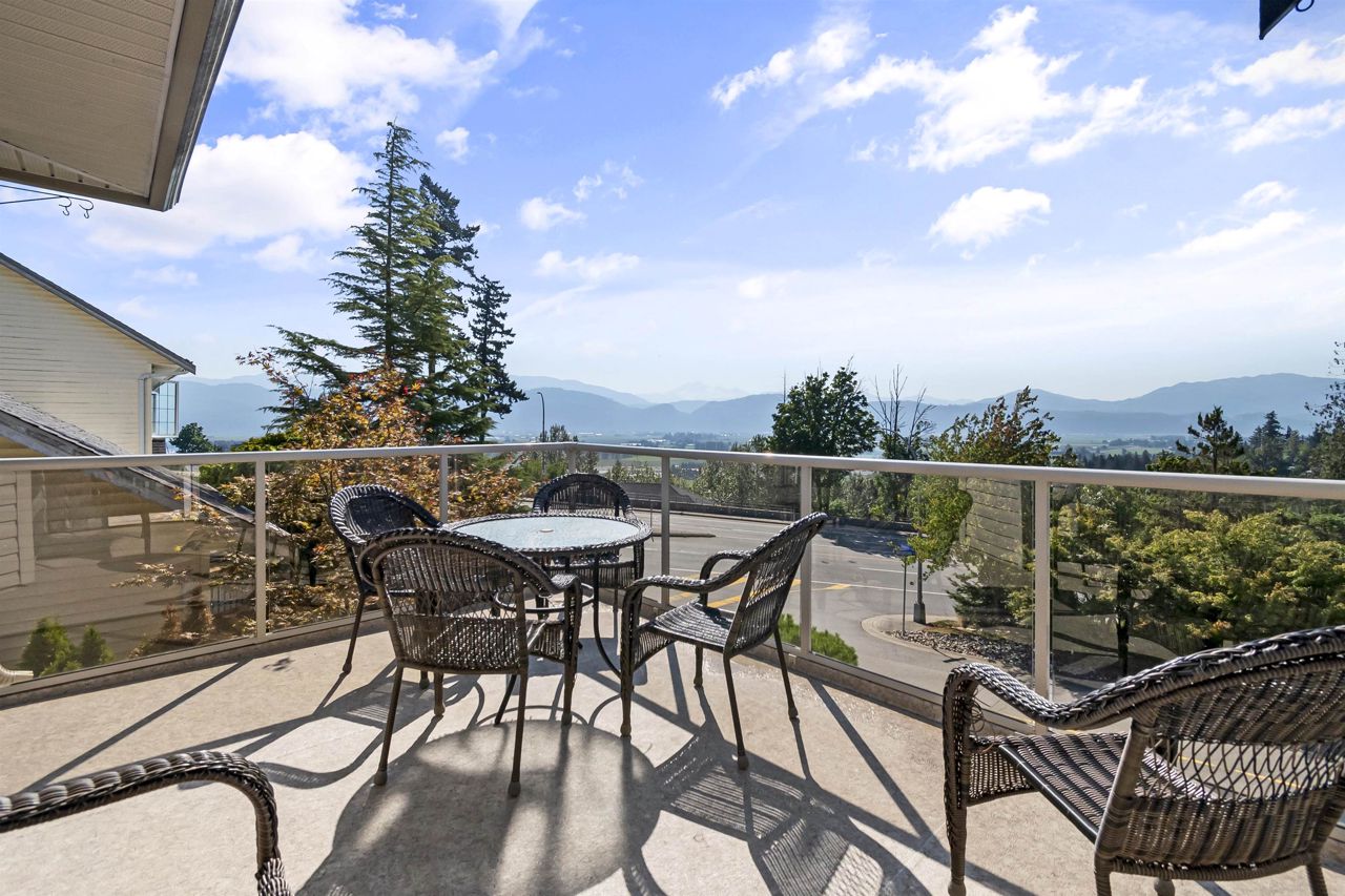 Say,"YES!" & repeat! All boxes are checked! Welcome to the stunning 3,101 sq.ft, 6 bdr/5 bthrm property w/a legal suite. The home is built on a 7,340 sq.ft lot w/a green backyard & unobstructed, dynamic view of Mnt. Baker & Sumas Prairie. Open the doors to the future! Step into the grand natural slate tiles foyer, 2 bedrooms (one w/ensuite), laundry, & legal suite w/sep. entrance. Go up the custom white oak stairs & reach the main floor. Walk the spacious rooms w/9' ceilings, large bedrooms & state of art main bathrm; pause in the dining room & great maple kitchen w/S/S appliances, handmade live edge wood countertops & the island; rest on the balconies; love the panoramic views! Many updates, short distance to schools, shopping, HWY1 & more! This property is one of a kind & rare to find!