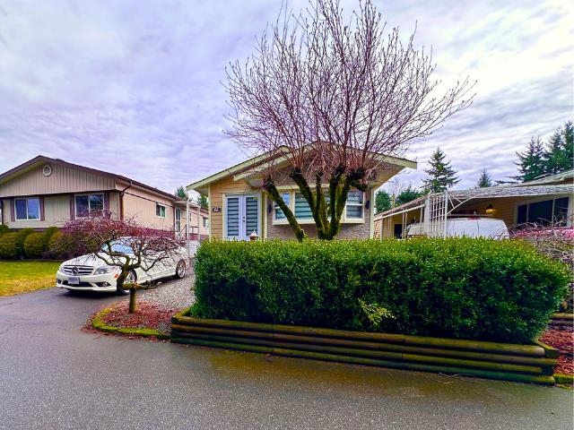 Welcome to PARADISE PARK! Situated on the quiet side of the complex with a view of the park, this lovely home is sure to impress you! This fantastic 55+ community has lots to offer! With over 1103 square feet of living space, there are plenty of windows to let in natural light, large bedrooms, and an open floor layout. The home has been renovated extensively with a new roof, stylish gray laminate flooring, and a designer fireplace. The kitchen features brand new stainless steel appliances, and there's a new bathroom too! You have to see it for yourself. There's also plenty of outdoor space, including a covered area where you can put your hot tub or outdoor furniture. Plus, this home comes with three parking spots. It's located in the heart of Abbotsford, just a short 2 blks to transit.