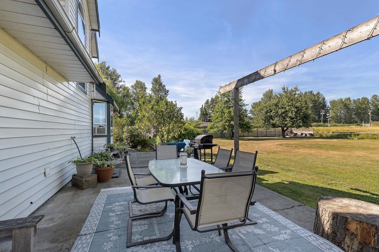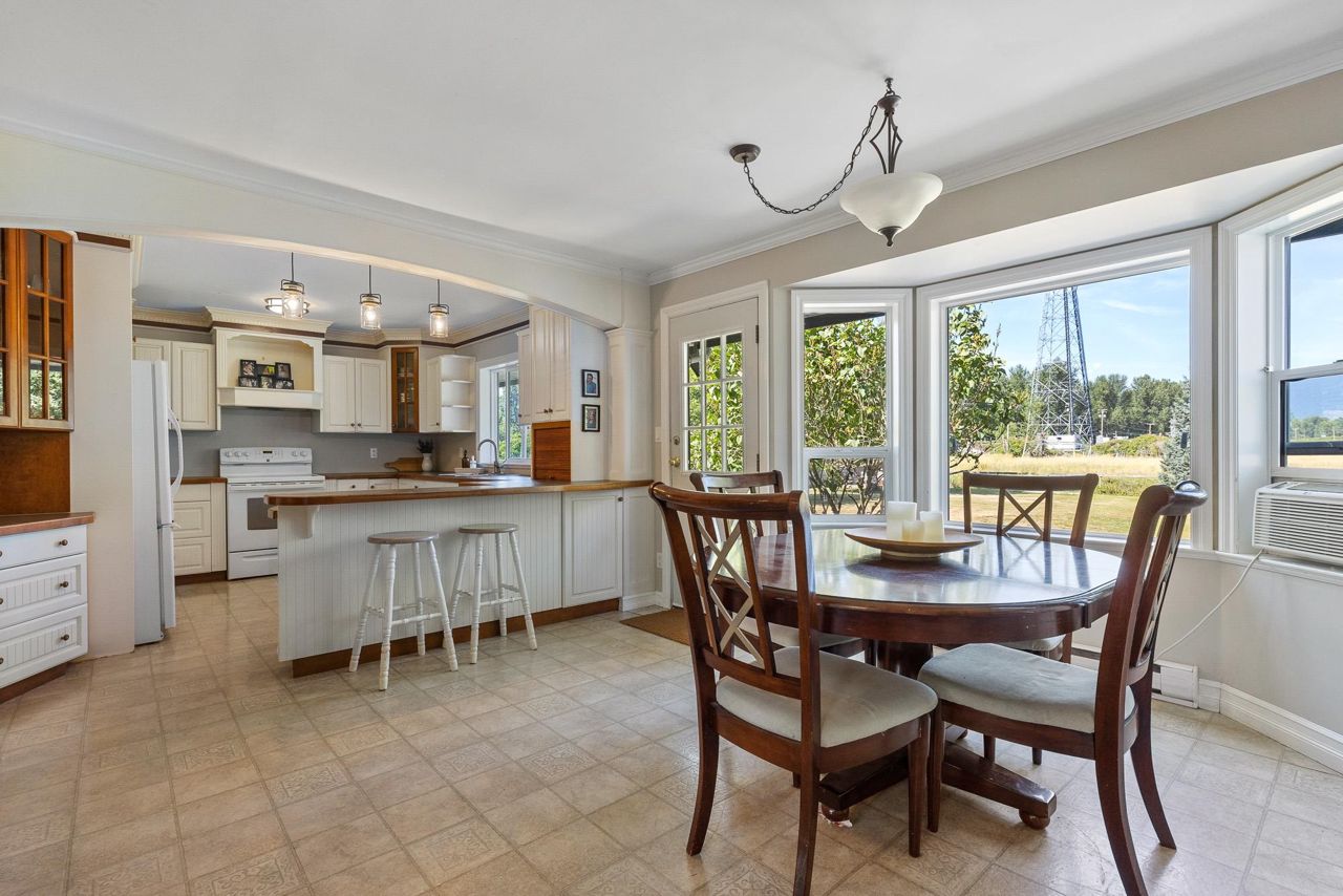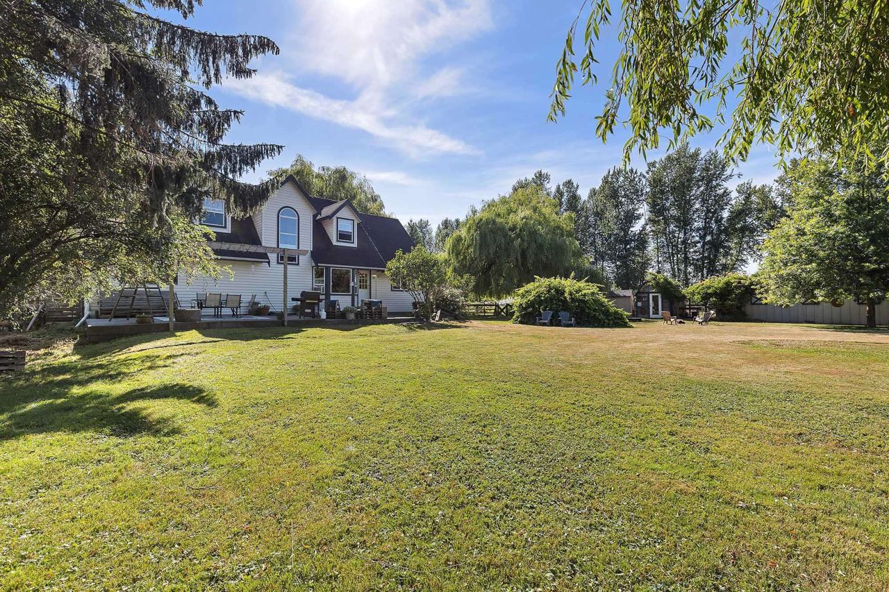 Mini Acreage in Matsqui, This cute farmhouse is sitting on 1.51 acres of land surrounded by ALR & next-door to the Fraser River Dyke with endless trails and waterfront exploring. The home offers 3 LG beds and 3 baths, w/ Primary Bedroom on the Main Floor including a 3pc ensuite and WI Closet. Large Farm style kitchen with tons of storage and counter space. Formal front living room with gas fireplace and sun room, Bright dining space open concept to family room. Both beds up offer LG WI closets lots of windows & 4pc bath. A Bonus Recroom or bedroom above the mud/laundry room. 2 Stall barn with tack room and hay storage. Small workshop and Garden shed. Mins to Abby and Mission but living in the country! The yard is fully fenced and full of many possibilities bring your ideas! View Today!
