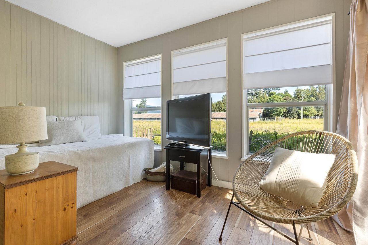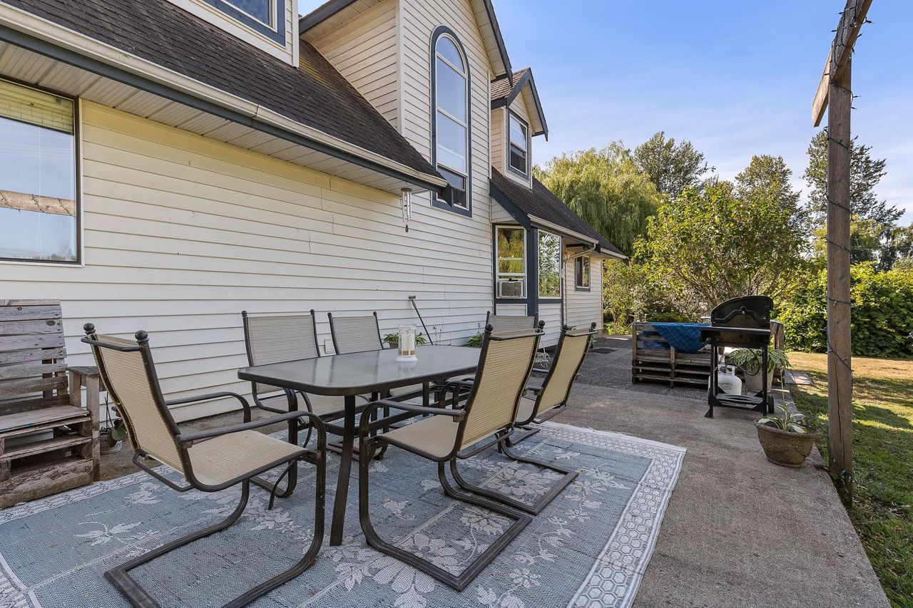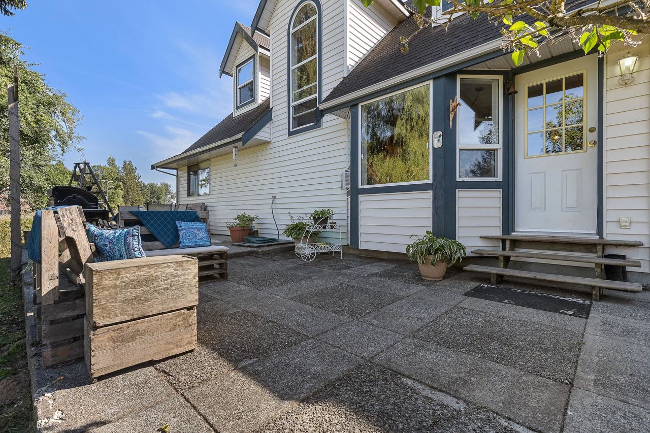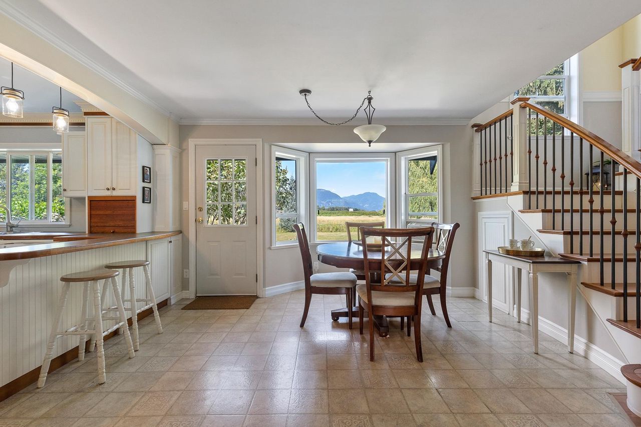 Mini Acreage in Matsqui, This cute farmhouse is sitting on 1.51 acres of land surrounded by ALR & next-door to the Fraser River Dyke with endless trails and waterfront exploring. The home offers 3 LG beds and 3 baths, w/ Primary Bedroom on the Main Floor including a 3pc ensuite and WI Closet. Large Farm style kitchen with tons of storage and counter space. Formal front living room with gas fireplace and sun room, Bright dining space open concept to family room. Both beds up offer LG WI closets lots of windows & 4pc bath. A Bonus Recroom or bedroom above the mud/laundry room. 2 Stall barn with tack room and hay storage. Small workshop and Garden shed. Mins to Abby and Mission but living in the country! The yard is fully fenced and full of many possibilities bring your ideas! View Today!