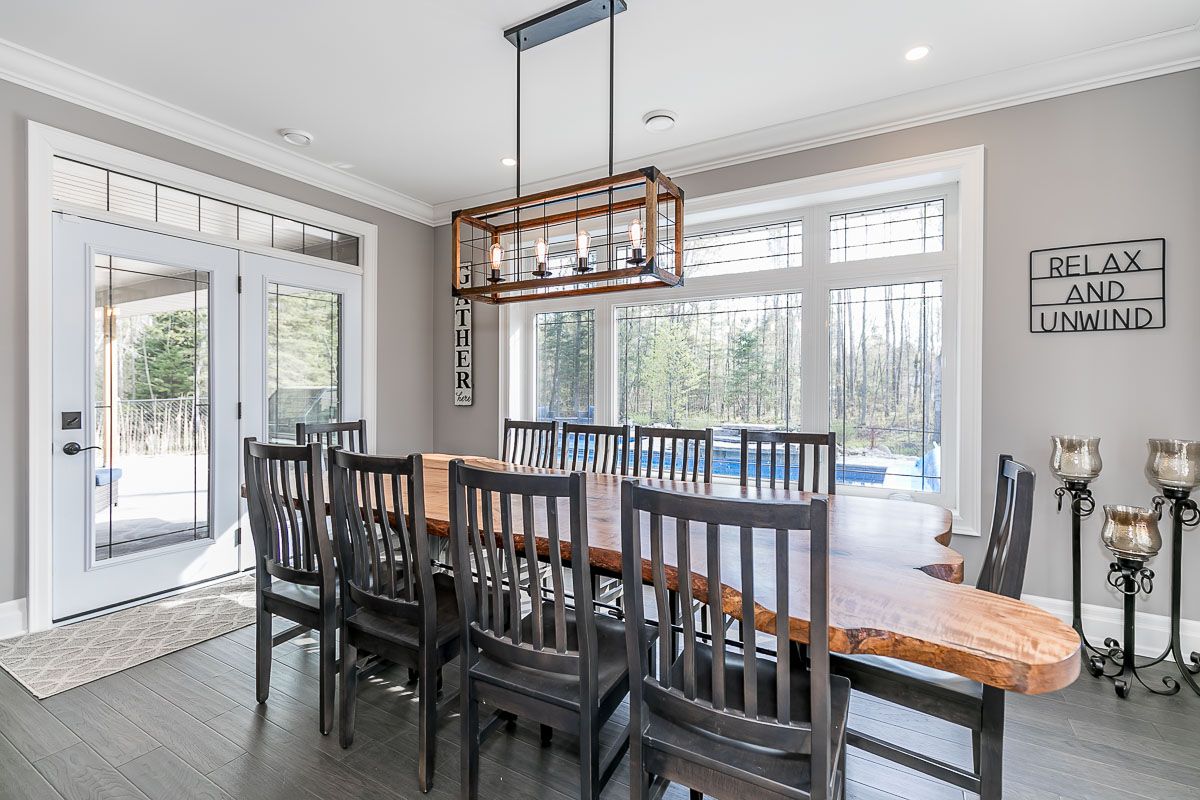 dining room w/ walkout to pool. The primary master bedroom has walk out to