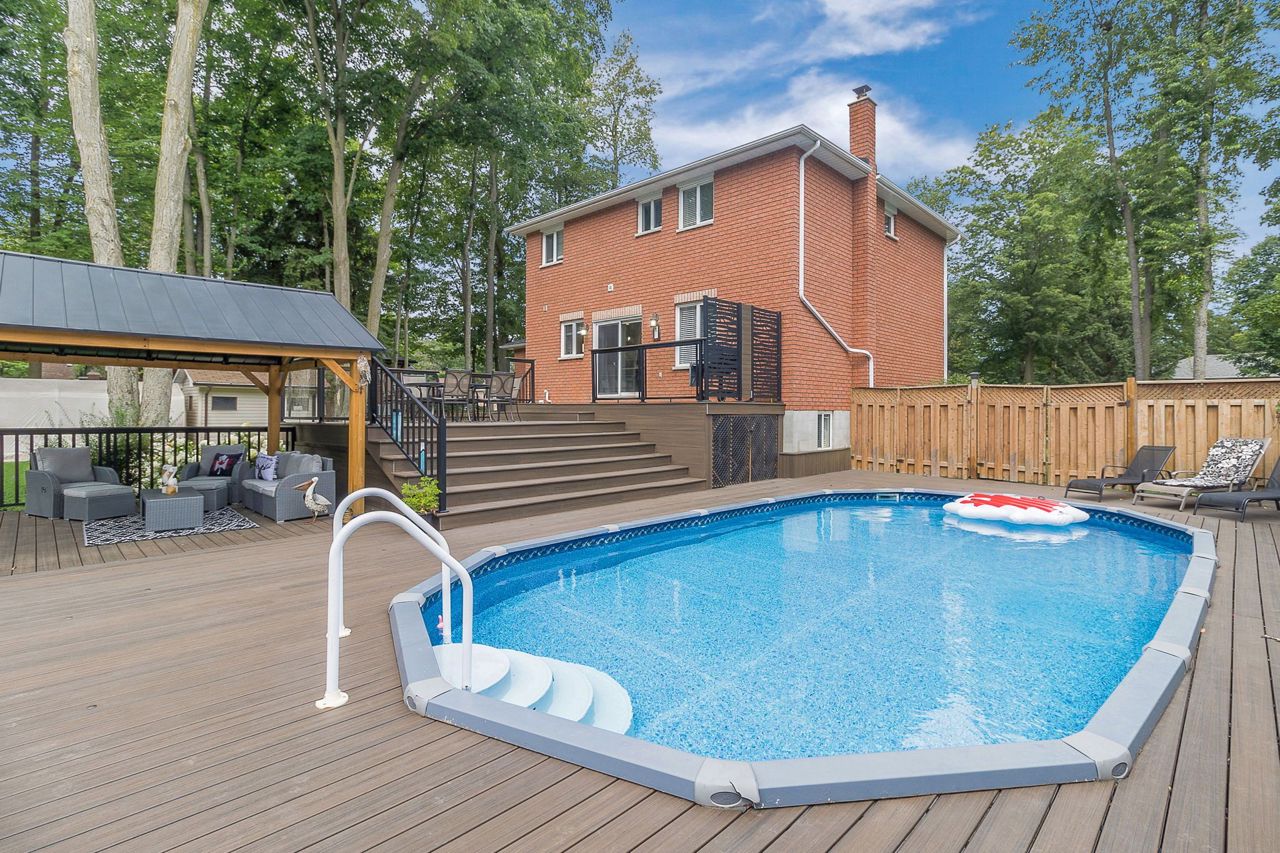 Lovingly updated, executive/country-style home in Everett! This 3+1 bedroom beauty offers a versatile layout with a walk-in closet that would easily covert back into the 4th bdrm. Extremely functional main floor layout complete with a gleaming, freshly renovated kitchen. Hardwood floors, formal dining room, family room with electric fireplace & built in shelving, a pantry & spacious pwdr rm. 2nd floor laundry for your convenience. Heated garage with additional furnace! The backyard is an entertainer's dream with a multi-level Trex deck, on-ground pool, gazebo and loads of space to play. Move in and enjoy your coffee on the front porch or in a hammock on your mature, treed property. Cozy up this fall in the fully finished lower level, beside the woodstove and watch your favorite movies or play games with your family. Additional lower level features include walk-up garage access, 3pc bath, 4th bedroom and plenty of storage space. This home really does have it all!Recent upgrades include a 2020 kitchen reno, custom island, quartz counters, stainless steel appliances, 2023 dishwasher, 2022 furnace, front door, garage doors and a 2019 roof (garage roof 2017). Sand point pump 2023. Sewage pump 2022