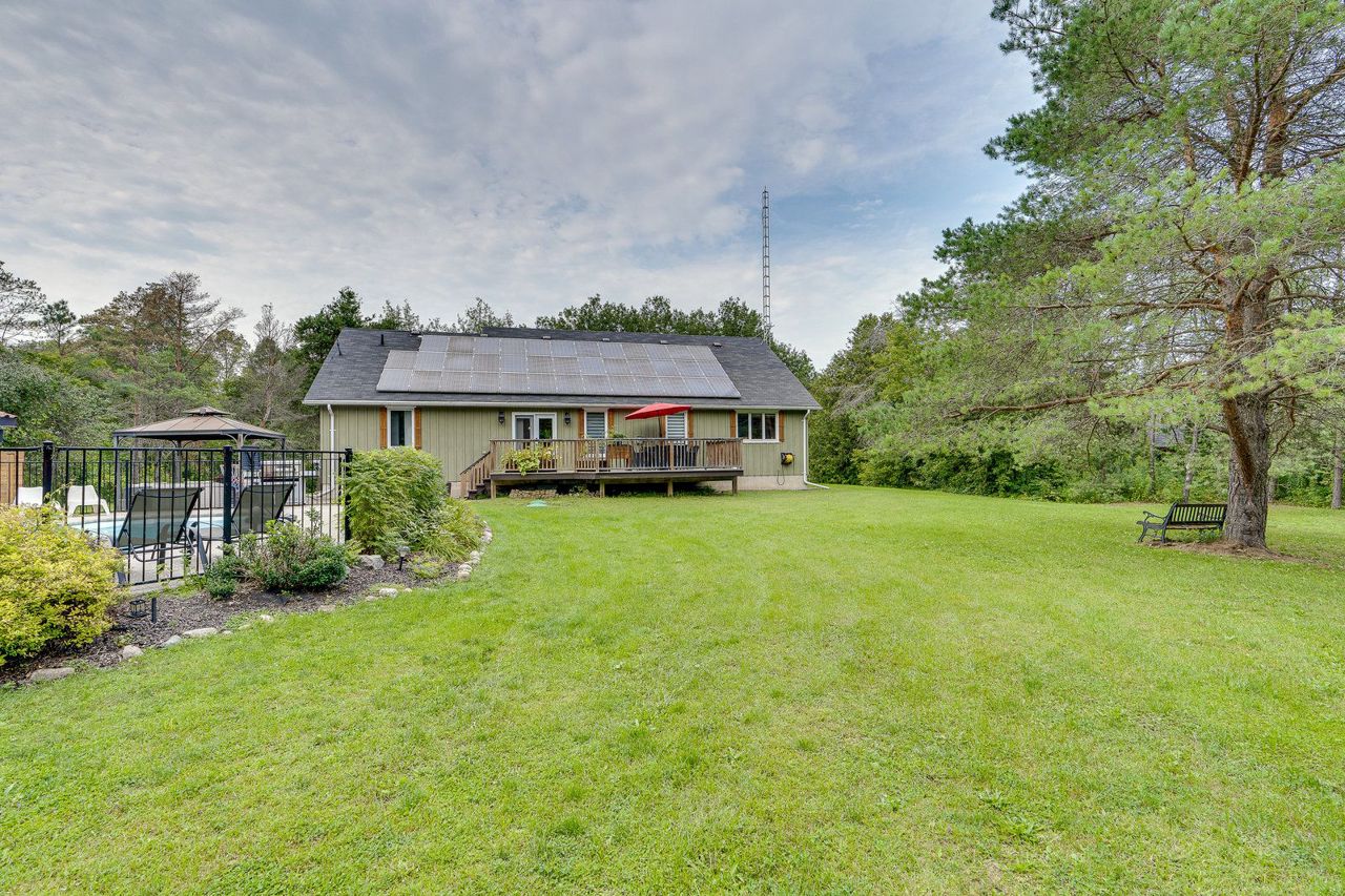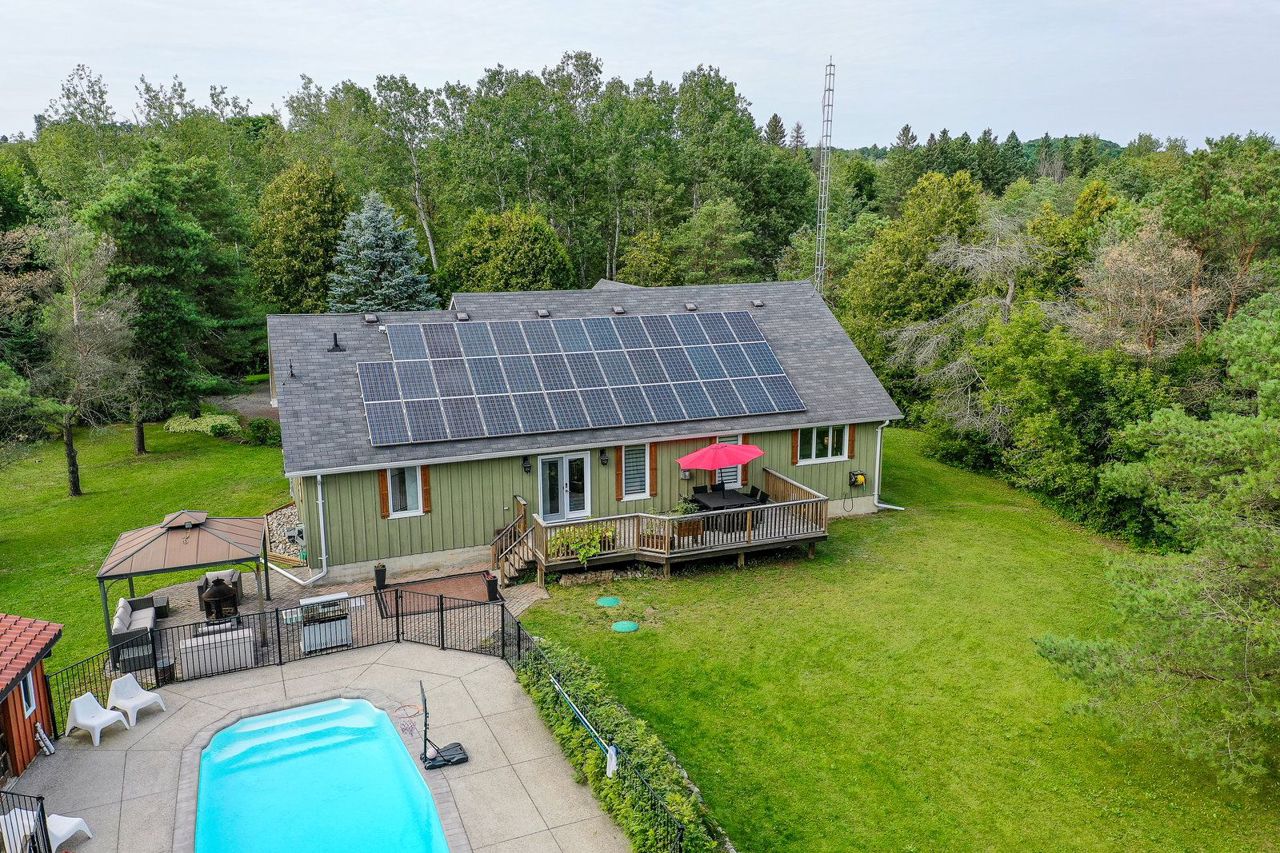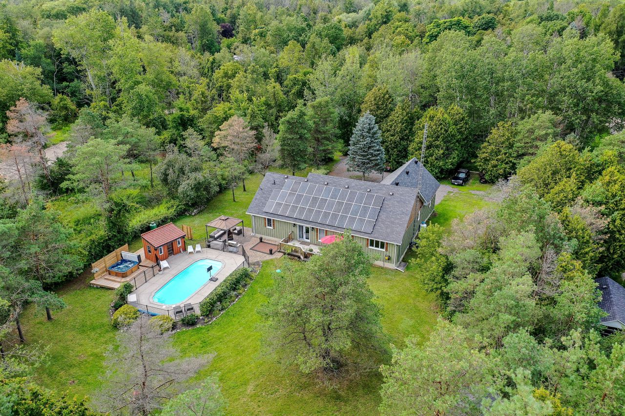 The best of all worlds come together! This Bungalow has been renovated from top to bottom, inside & out! Set on over 2 acres on a quiet cul- de- sac in Hockley Village. A short walk to schools, trails & the Nottawasaga River! Truly turn key, with so many improvements & ready to enjoy. Modern open concept kit with Corian counters & sleek stainless steel b/i appliances; the Great Room with handsome stone gas fireplace with cathedral ceilings create that sought after elegance. 3 bedrms on the main floor & a 4th above the garage, all ample size with stylish upgraded lighting & window coverings. Recently finished basement, with dricore subfloor, full bathroom, wet bar, pool table & motorized 120" screen with remote projector. Outside cedar decking, overlooks the heated fibre glass saltwater pool, private hot tub & your own forest! If 2 acres is more than you need, the township has responded positively to the possibility of a severance! On top (literally) is the $400 annual return for therooftop solar system (13 years remaining). Did we mention the fibre optic internet? 2 garden sheds, pool house, new water treatment systems '22, tankless water heater '21, back up generator panel, pool filter, pump, chlorinator all '22.