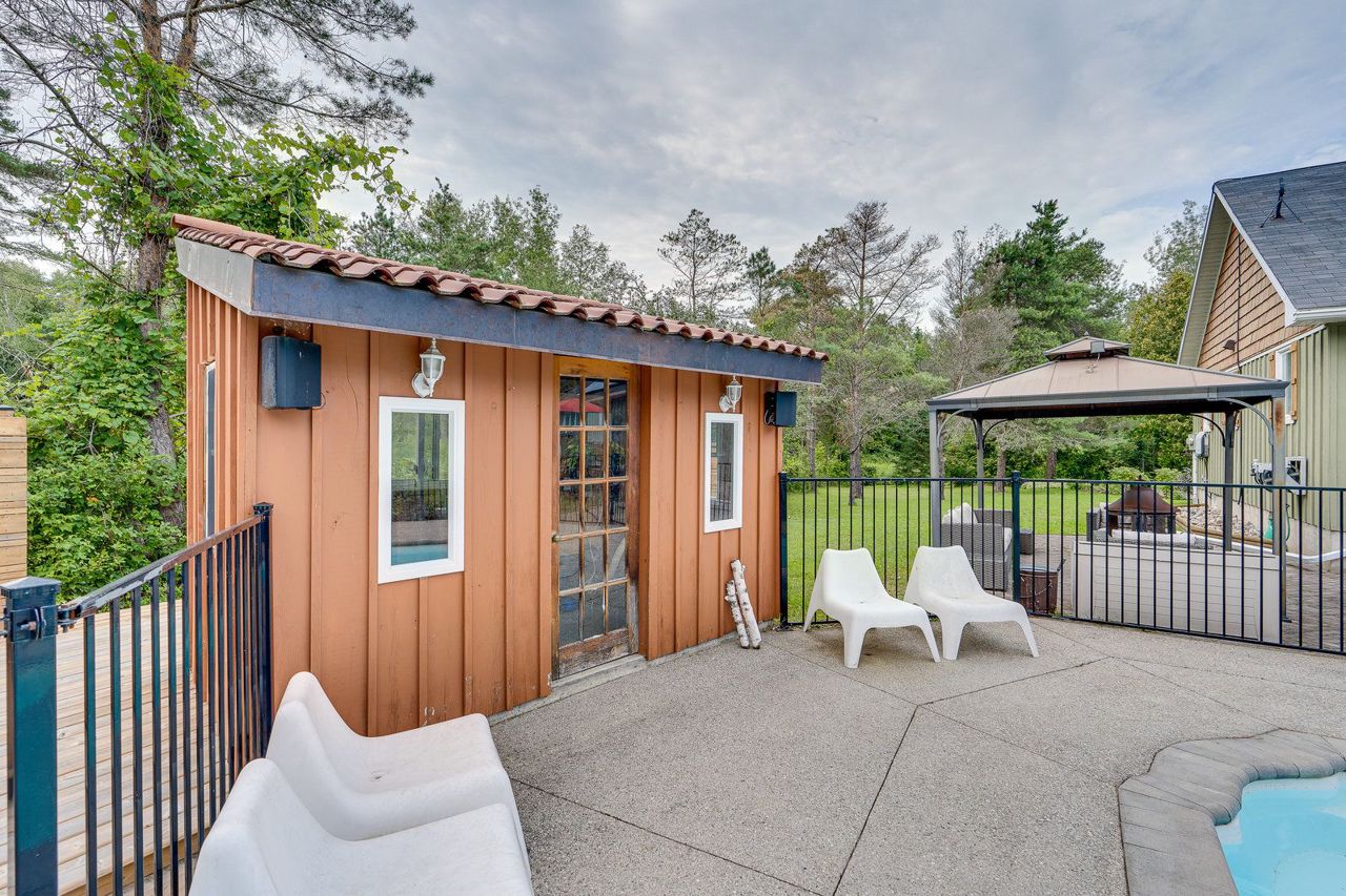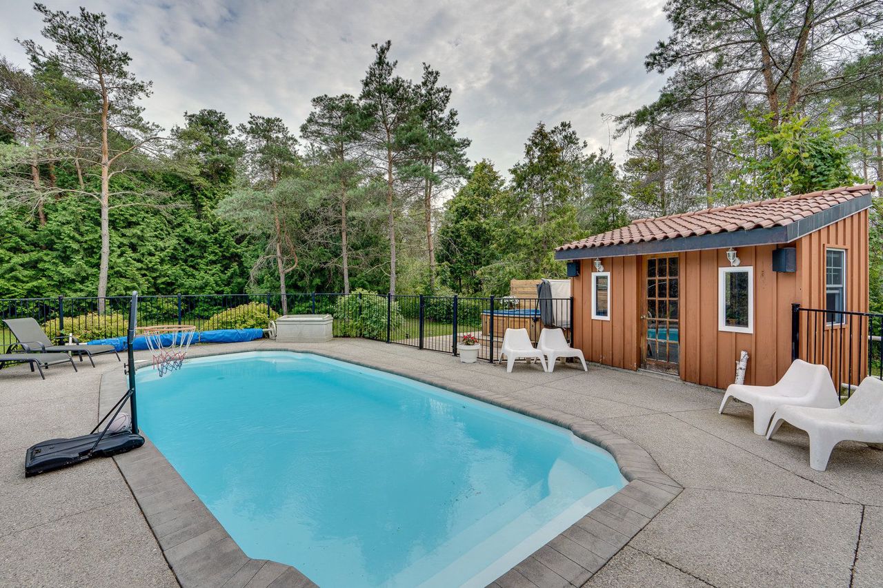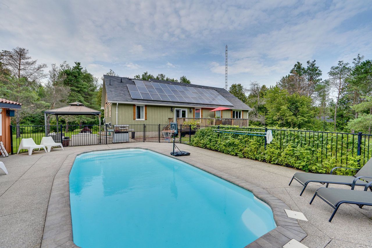 The best of all worlds come together! This Bungalow has been renovated from top to bottom, inside & out! Set on over 2 acres on a quiet cul- de- sac in Hockley Village. A short walk to schools, trails & the Nottawasaga River! Truly turn key, with so many improvements & ready to enjoy. Modern open concept kit with Corian counters & sleek stainless steel b/i appliances; the Great Room with handsome stone gas fireplace with cathedral ceilings create that sought after elegance. 3 bedrms on the main floor & a 4th above the garage, all ample size with stylish upgraded lighting & window coverings. Recently finished basement, with dricore subfloor, full bathroom, wet bar, pool table & motorized 120" screen with remote projector. Outside cedar decking, overlooks the heated fibre glass saltwater pool, private hot tub & your own forest! If 2 acres is more than you need, the township has responded positively to the possibility of a severance! On top (literally) is the $400 annual return for therooftop solar system (13 years remaining). Did we mention the fibre optic internet? 2 garden sheds, pool house, new water treatment systems '22, tankless water heater '21, back up generator panel, pool filter, pump, chlorinator all '22.