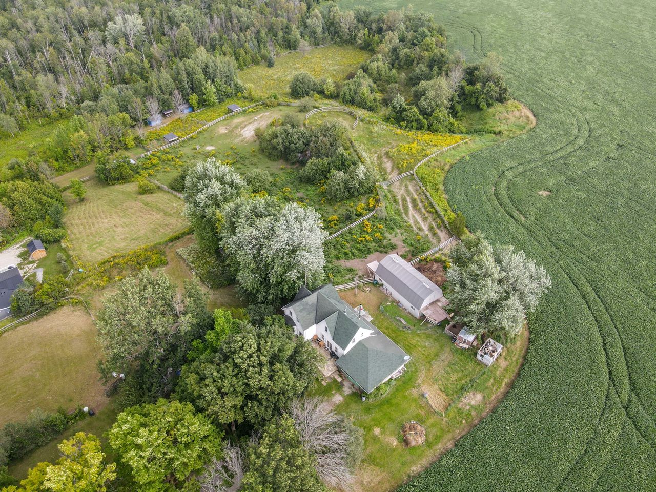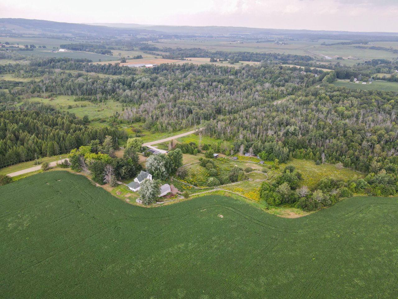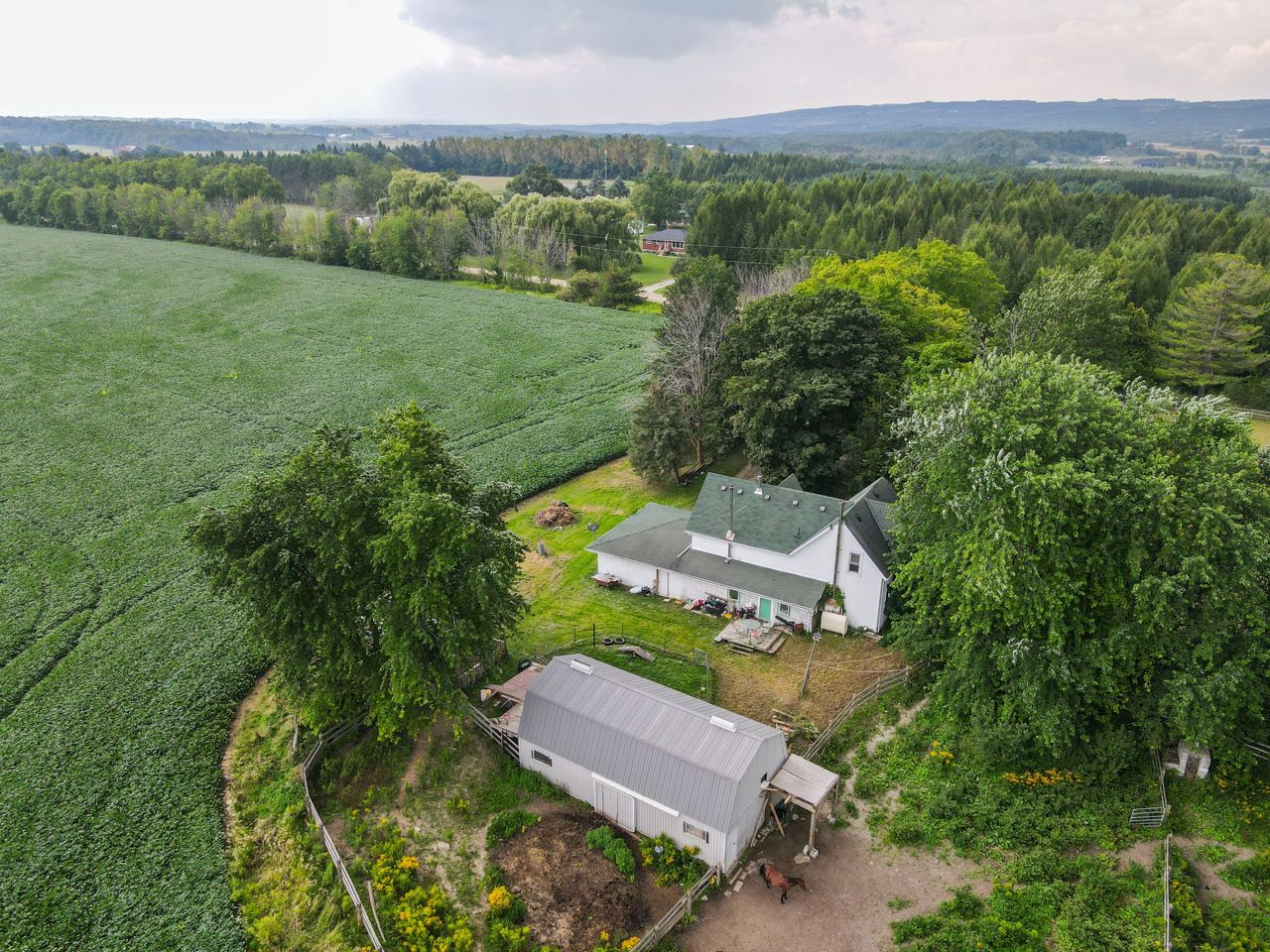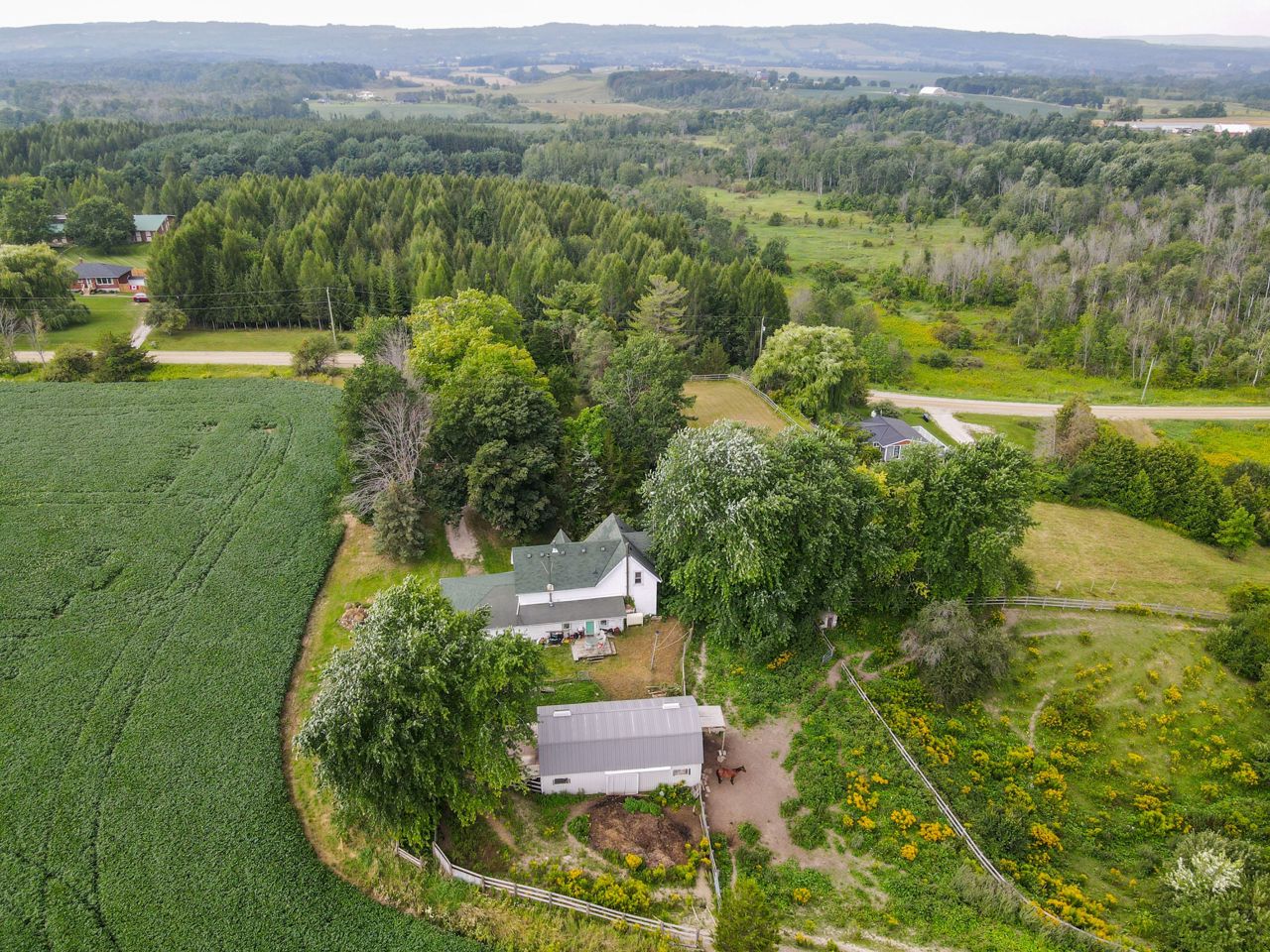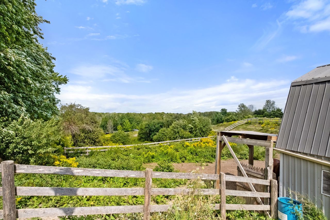 Large well kept home situated on 11.4 acres more or less, stunning views, spacious house, incredible treed privacy, small barn, paddocks, and forest ideal for small animals. Century home with original trim and moulding, with high ceilings. 4 bedrooms one (walk through), 2 baths, and spacious rooms, with beautiful views. Thermal pane windows most areas, shingles 2014, radiant boiler heating system. Wood stove and fireplace "As is". Enjoy the land and country living. Escape the hustle and bustle of city life and immerse yourself in the serenity of this breathtaking 11-acre property. Small Bunkie nestled beside a lush forested area, this is your opportunity to own a slice of paradise. Explore the beauty of nature as you meander through horse riding trails that wind their way through the property.Large trees views of the hills of Mulmur and Tosorontio. Several paddocks, lounging ring enjoy the rolling hills and flat areas of this 11.4 acres property. *Virtual Tour*