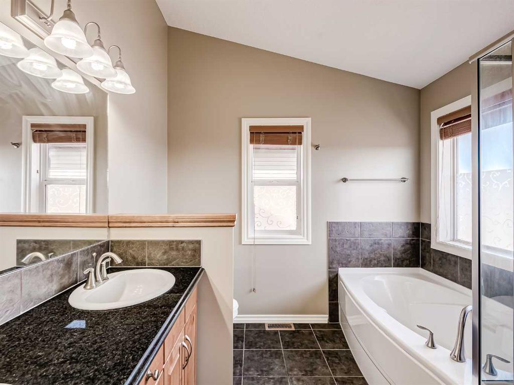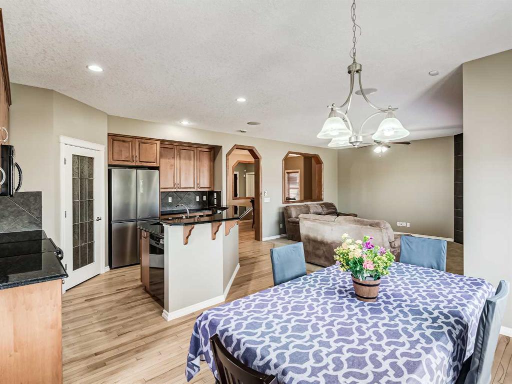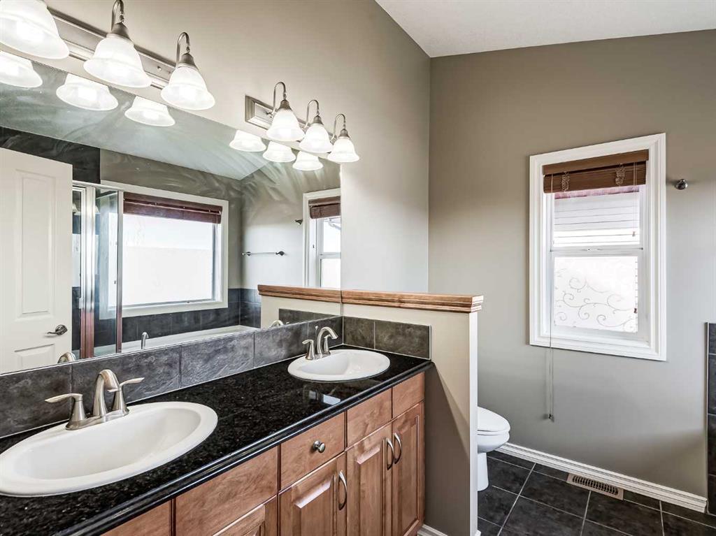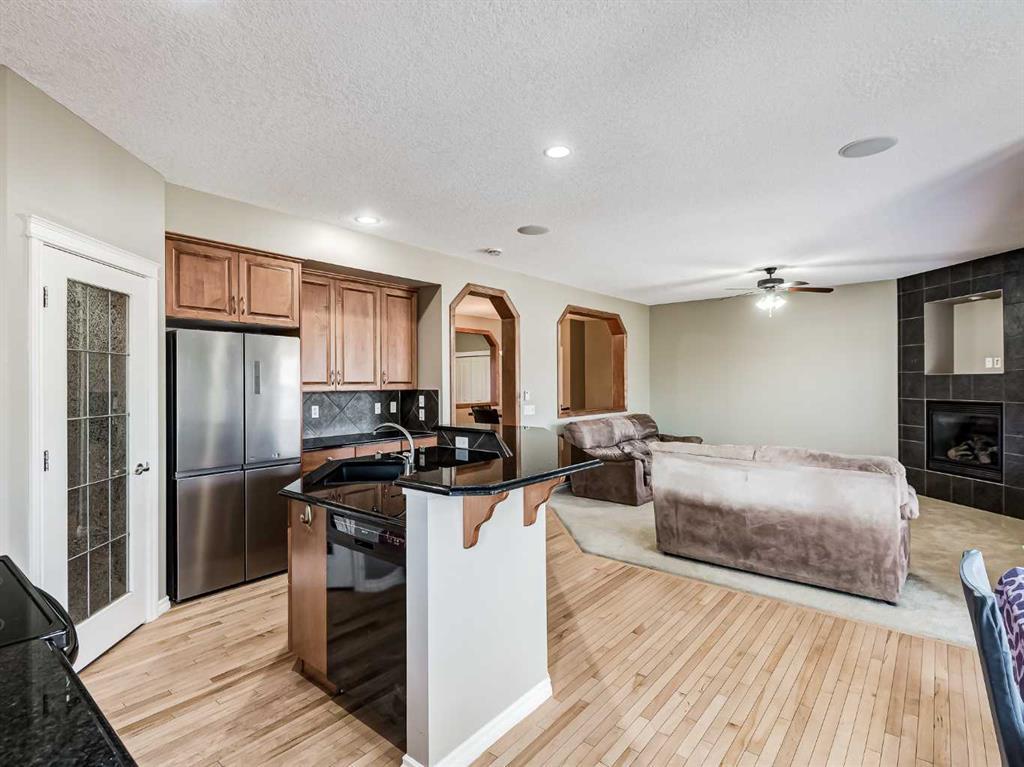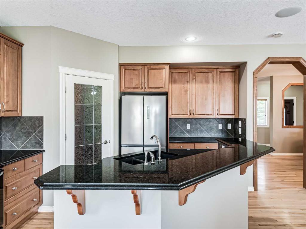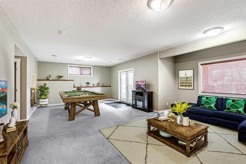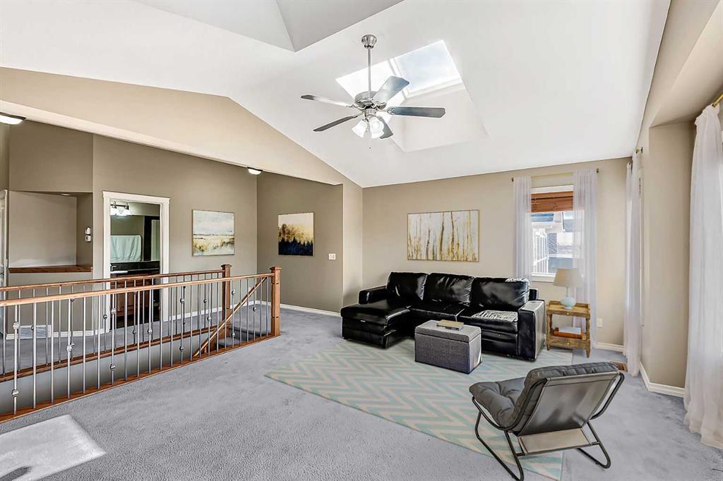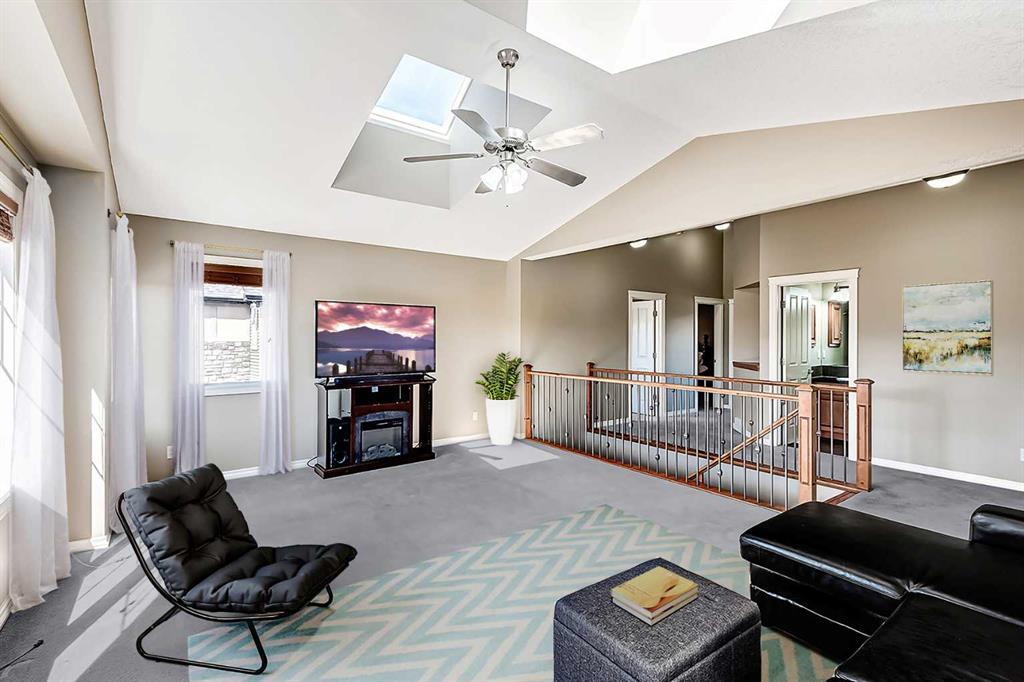 Welcome to this stunning 4-bedroom, 3.5-bathroom home located in the sought-after community of Cooper's Crossing. Situated on a peaceful cul-de-sac, this property offers a serene living environment. With over 3200 sq. ft. of developed living space, there's plenty of room for the whole family. Step into the open concept living area, where you'll find exquisite finishes and customizations throughout. The kitchen is a chef’s dream, with black granite countertops, ample counter space, and an abundance of cupboards. The raised breakfast bar provides additional seating, and the large walkthrough pantry offers convenience. From the kitchen, step out onto the balcony, which features a gas hook-up for your BBQ and connected outdoor speakers, creating a perfect setting for summer evenings. Upstairs, prepare to be impressed by the generous space and exquisite double vaulted ceilings in the bright bonus room which is flooded with natural light from two large skylights. Two generous bedrooms accompany the large primary bedroom. The primary bedroom includes a walk-in closet and a beautiful 5-piece ensuite. The ensuite features double sinks, granite countertops, a deep soaker tub, and a spacious glass shower. The fully finished walkout basement offers even more living space, with a generous bedroom, a full 4-piece bathroom, a large recreation room, and 9-foot ceilings. French doors lead outside to the lower patio, overlooking the beautifully landscaped, low-maintenance backyard. Enjoy a garden area, mature trees, a shed (equipped with electricity), and a low maintenance turf lawn. This home is packed with upgrades, including a built-in speaker system, 2 furnaces, air-conditioning, zoned climate controls for each floor and custom built-in shelves. It truly offers everything you need for comfortable and luxurious living. Recent upgrades include brand new (45 ounce) carpet, new washer and dryer and new dishwasher. Don't miss out on the opportunity to own this beautiful home in Cooper's Crossing. Book a showing today and experience its charm and elegance for yourself. *Property is currently vacant and may not appear exactly as some photos with furniture.* (id:22211)