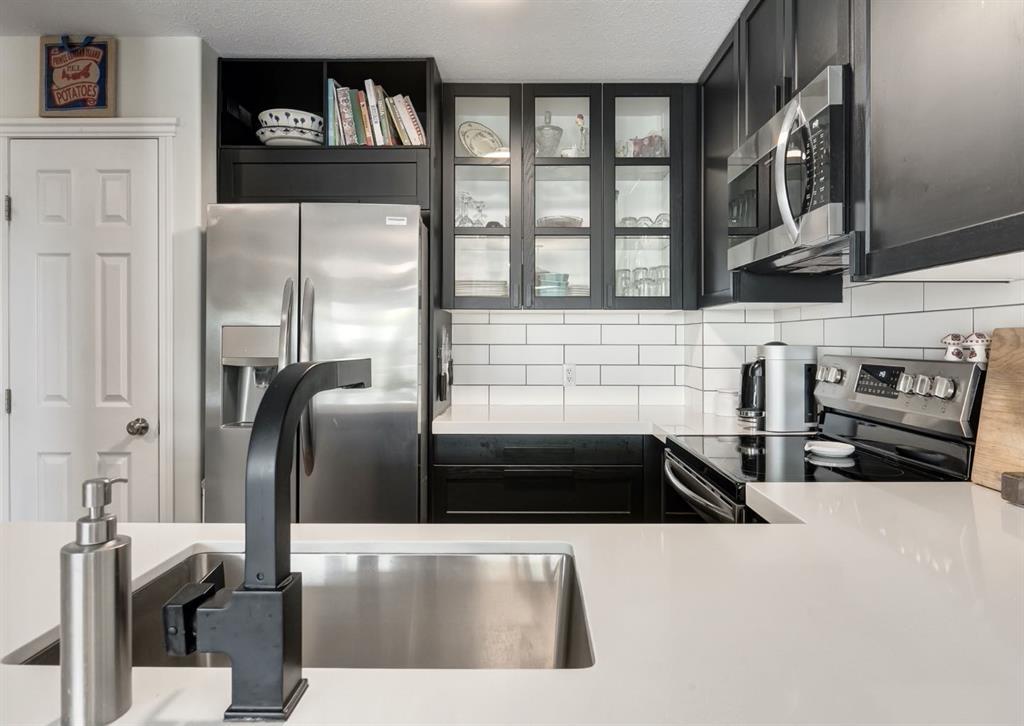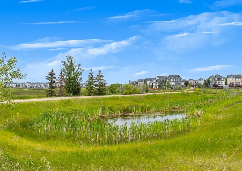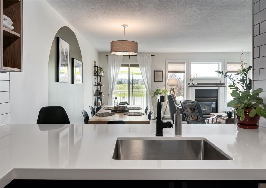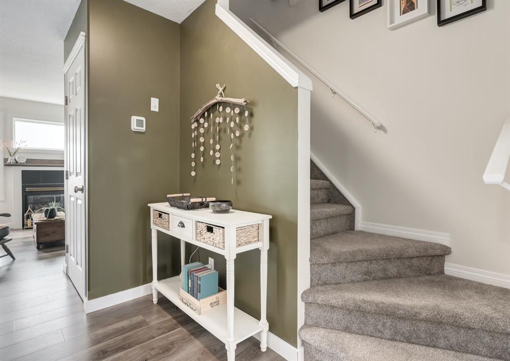Have you been searching for a totally turnkey townhouse in an incredible location with no neighbours behind you in a mature and desirable neighbourhood? Look no further because you found it! This recently renovated, fully finished, naturally bright and move in ready townhome offers 3 bedrooms, 1.5 baths and a fantastic open main floor layout. You can’t beat the location of this seriously charming and well curated home, it backs onto the Williamstown Nose Creek Preserve in sought after community of Silver Creek. You can enjoy bbq’ing and sitting out on your sunny West facing balcony during the day and watching the sunset over the preserve at night as the stars come out. Everything you could need is all short walk or drive away including the pathways along Nose Creek, shopping centres, parks, playgrounds, schools and restaurants. Commuters will love the quick access to Veterans Blvd taking you to Main Street, the QE2 Highway, Airport & Calgary. You’ll fall in love from the moment you step inside this welcoming home, with features like the newer luxury vinyl plank flooring on the main floor, rounded walls and the many thoughtful touches throughout. The front entrance has plenty of room for your shoes and coats and has access to the single attached garage with rafter storage and tire rack. You can say goodbye to scraping your windshield in the Winter and hello to storage and more! Back inside you'll find a gorgeous galley style kitchen which over looks the living room/dining area. It's complete with quartz countertops, subway tile back splash, a stainless steel Frigidaire Gallery appliance package, glass feature cabinets, upper wine rack, pantry and breakfast bar. This home is filled with light and is great for entertaining. There's plenty of space for your large dining table for when you want to host dinner parties or family for the holidays. Arches are in, evidences by the quaint painted arch wall feature in the dining area. The focal point of the living room is a c ozy gas fireplace with a distressed mantle and windows all around it. A convenient 1/2 bath with wooden wall feature finishes the floor. Upstairs you’ll find two great sized bedrooms, a bonus/flex space on the landing great for a yoga practice area or home office space as well as an upgraded 4 piece bath with deep soaker tub with subway tile surround, tile floor, dual flush toilet and access to both the hallway and the large primary bedroom. The primary bedroom has a spacious walk in closet, a rustic feature wall and space for your king size bed. The fully finished basement offers a laundry area, large storage area at the bottom of the stairs as well as under the stairs and is the perfect place for your sports/hobby ‘cave’, movie/media room or for whatever you’d like to use it for. Major upgrades in 2021 include a new high efficiency furnace, hot water tank and tinted triple pane windows throughout. Come check it out and make this house your home! (id:22211)