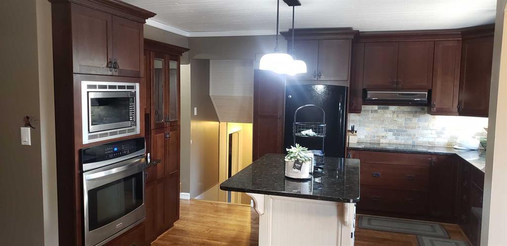 Welcome to well cared 4 level home, over 2000sqft of living space on massive lot in quiet cul-de-sac with back lane access. Once you enter, you will find a decent sized living area, dinning area and kitchen with very nice cabinets and island with seating capacity. On upper level there are 2 Bedrooms, 4pc bathroom and a master bedroom with 2 double closets and 2 pc en-suite. On lower level there is rec room with 4 pc bath. In basment, there is another bedroom, den and laundry. There is huge backyard with over sized double car garage, storage and plenty of parking for RV as well. Wonderfull property with schools and shoping nearby. (id:22211)