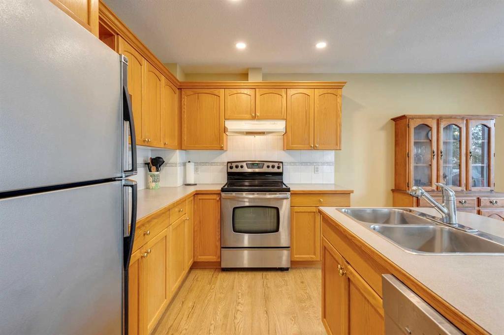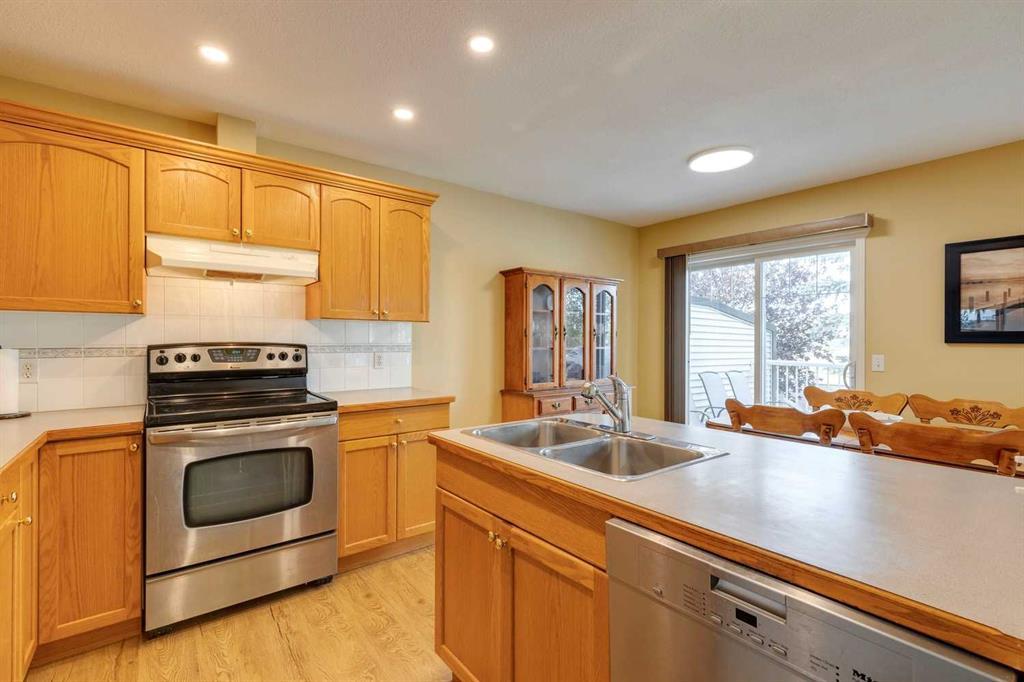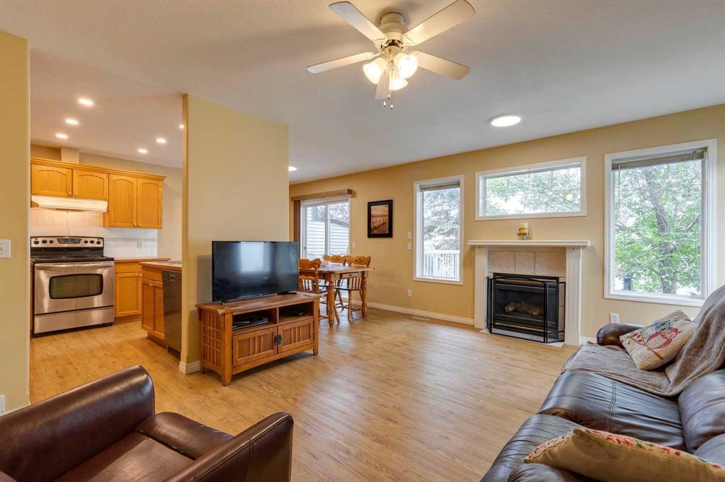 Welcome to this stunning WEST rear-facing townhome nestled in a highly sought-after location, offering serene views of the environmental reserve and an abundance of scenic walking paths. Perfectly suited for retirees, first-time home buyers or property investors. As you step inside, you'll immediately notice the luxurious and durable LVP flooring that spans the entire main floor. The spacious foyer welcomes you with a convenient coat closet, providing ample storage for your outerwear. The open-concept main floor floods with natural light, creating a warm and inviting atmosphere. The main floor also features a well-appointed half bath for your guests' convenience. The living room is a cozy retreat, complete with a gas fireplace, perfect for chilly evenings. The functional kitchen is a chef's dream, offering plenty of counter and cupboard space to meet all your culinary needs. The breakfast eating bar is ideal for casual dining, and the stainless steel appliances add a touch of sophistication. Access to the PRIVATE rear WEST yard and composite deck, with its captivating views of the environmental reserve, makes this space perfect for outdoor entertaining. Heading upstairs, you'll find a central BONUS ROOM, providing additional living space for your family's enjoyment. A linen closet offers practical storage solutions. In addition the upper level includes three generously sized bedrooms, with the primary suite featuring his-and-hers closets. The 4-piece main bath is well-appointed, boasting a large vanity and a relaxing soaker tub. In the lower level, you'll discover the laundry area with newer washer/dryer in the unfinished basement, offering the potential for customizing the space to suit your needs. This home is equipped with NEW air conditioning for your year-round comfort, NEW HWH and NEW High Efficient Furnace! Parking is a breeze with the DOUBLE ATTACHED GARAGE, complete with a 240V outlet. Situated in a quiet complex, this end unit townhome is perfectly positio ned to enjoy the peaceful surroundings of the environmental reserve while still being close to all amenities. Don't miss the opportunity to make this exceptional property your new home, where comfort, style, and convenience come together in perfect harmony. (id:22211)