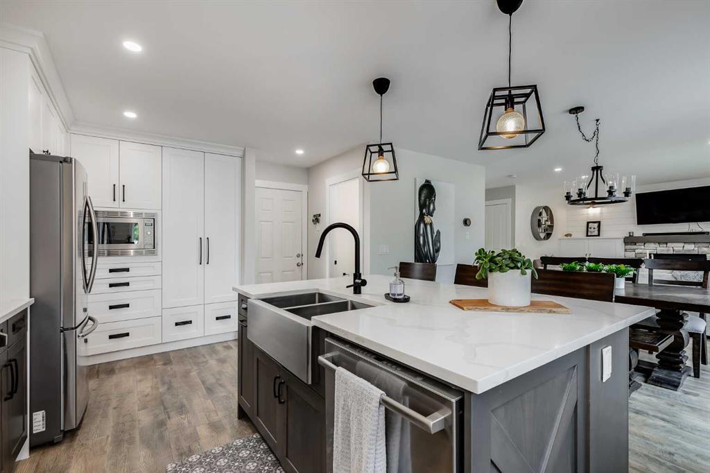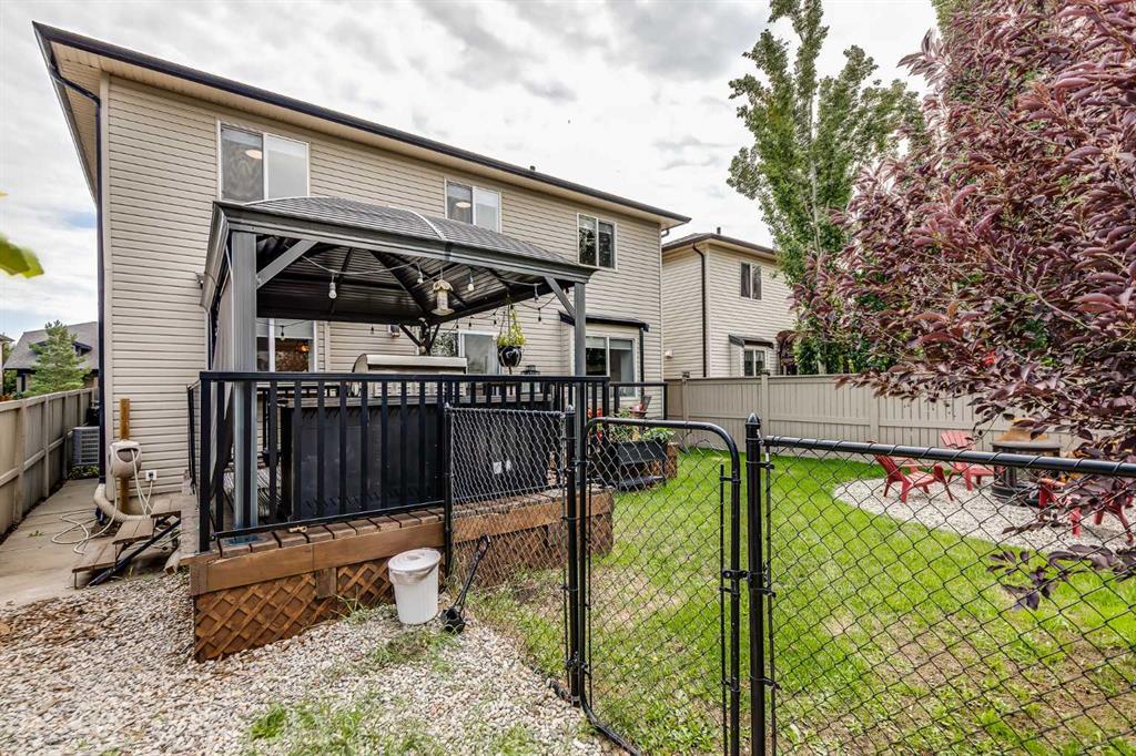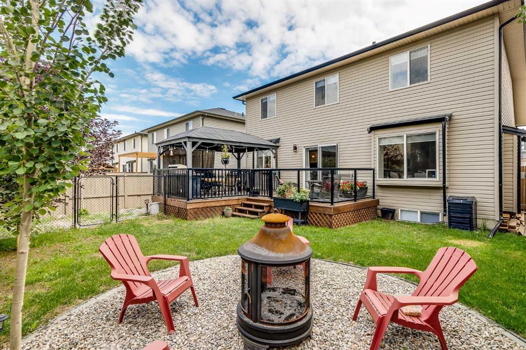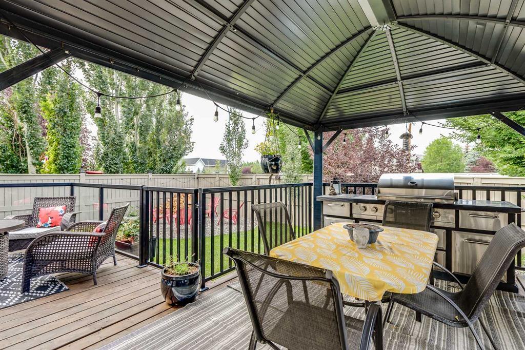 Welcome home to this FULLY RENOVATED, EXECUTIVE STYLE 4 BEDROOM HOME with DOUBLE ATTACHED GARAGE in the family friendly community of Luxstone in SW Airdrie. Pride of ownership is evident from the moment you arrive! Notice the attractive curb appeal: from the freshly painted entryway to the beautiful perennial garden that welcomes you & invites you inside. As you enter you will find a spacious entry that flows into a front sitting room with stunning ceilings open to above. Notice the beautiful wide plank luxury laminate flooring throughout the main floor as well as the fresh paint and designer lighting fixtures. Down the hall you will find a WIDE OPEN main floor living space that looks as though it has been taken right from the pages of Home and Garden Magazine! The designer KITCHEN has so many beautiful details, such as the white full-height upper cabinets with glass accent cabinets, the lower cabinets and the island are finished in a rich yet modern grey tone. Notice the thoughtfully designed cabinets which include plenty of pot drawers, a pantry cabinet, a drawer for garbage & recycling, extra cabinets in the kitchen island, a broom closet & so much more. From the custom hood fan, to the stunning quartz countertops & designer lighting - every detail has been carefully chosen to create an absolutely one of a kind kitchen and dining space! Next you will notice the bright & welcoming main living room that features stunning built-in cabinets, a feature wall and cozy fireplace. A fully renovated half bath completes the main floor layout. Head outside to the WEST FACING BACKYARD OASIS & find a huge deck (freshly stained) with a large portion covered by a gorgeous gazebo. There is a convenient dog run, space for gardening beautiful landscaping & a gorgeous fire pit area. Even though your backyard is warm & sunny year round - the house will stay cool in the summer thanks to central AC! Head upstairs & find a family friendly layout complete with a BONUS ROOM, upper laund ry, a beautiful recently renovated main bathroom & 3 large bedrooms including the KING SIZED master bedroom with a RENOVATED 5 piece ensuite & large walk in closet. Downstairs the FULLY FINISHED basement boasts a spacious 4th bedroom, another full bathroom, a stunning WET BAR with accent LED lighting, a spacious den that is perfect for a work out room or hobby room & finally the pièce de ré·sis·tance - an absolutely perfect HOME THEATRE / family room! Family movie nights just got way more fun!This home is located next to a walking path that provides convenient access to the many pathways and parks that Luxstone has to offer. Walk to the Bayside shopping area and enjoy the many restaurants and shops as well as the nearby community basketball court in the summer and ice rink in the winter. Close to schools and centrally located in Airdrie making getting anywhere easy. This is an absolutely one of a kind home and it won't last long. (id:22211)