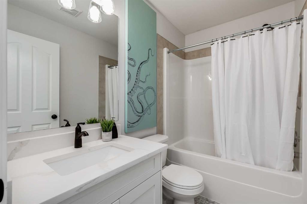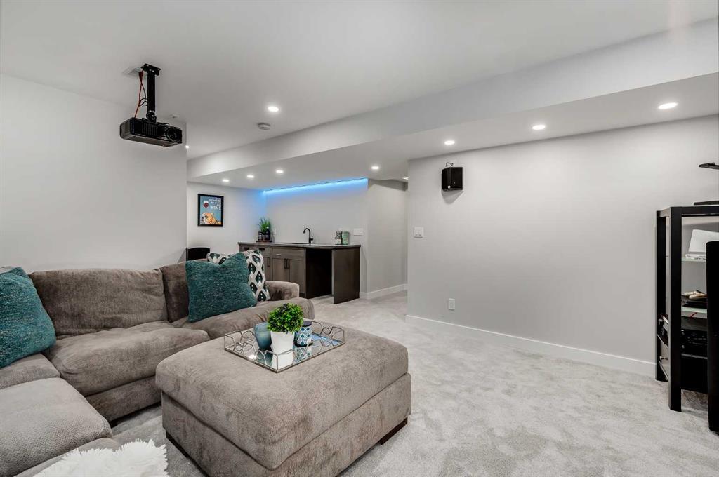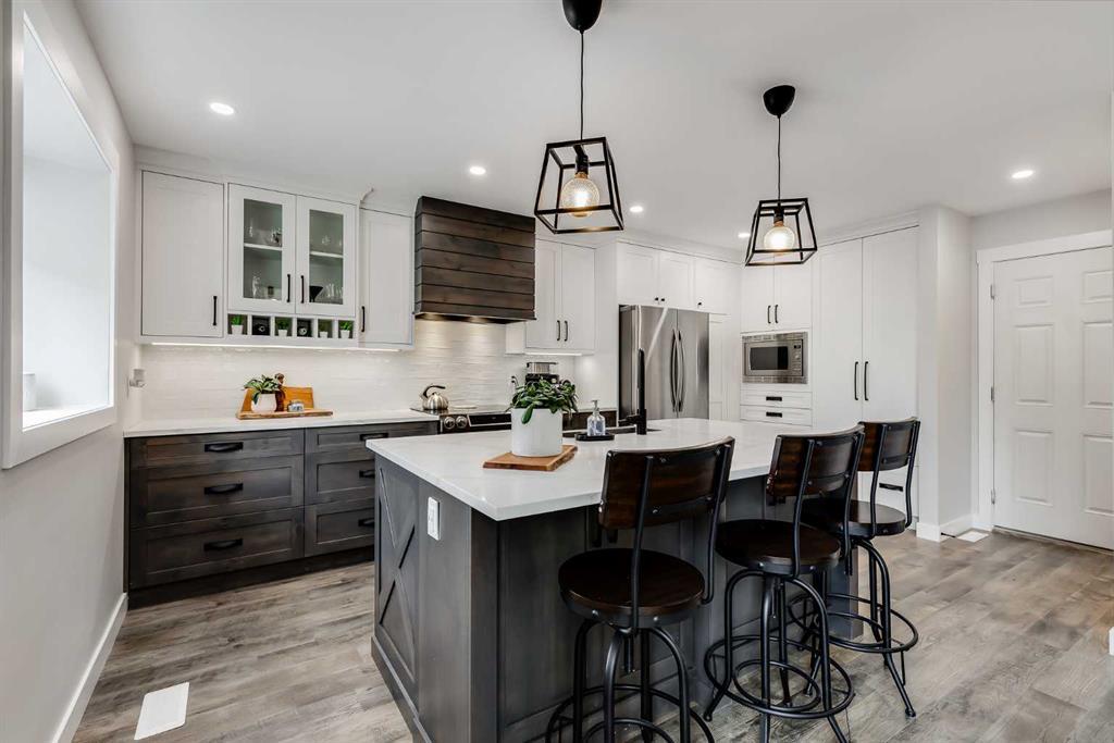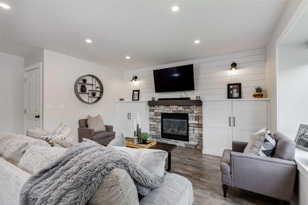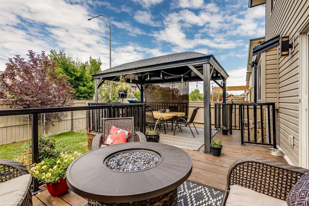 Welcome home to this FULLY RENOVATED, EXECUTIVE STYLE 4 BEDROOM HOME with DOUBLE ATTACHED GARAGE in the family friendly community of Luxstone in SW Airdrie. Pride of ownership is evident from the moment you arrive! Notice the attractive curb appeal: from the freshly painted entryway to the beautiful perennial garden that welcomes you & invites you inside. As you enter you will find a spacious entry that flows into a front sitting room with stunning ceilings open to above. Notice the beautiful wide plank luxury laminate flooring throughout the main floor as well as the fresh paint and designer lighting fixtures. Down the hall you will find a WIDE OPEN main floor living space that looks as though it has been taken right from the pages of Home and Garden Magazine! The designer KITCHEN has so many beautiful details, such as the white full-height upper cabinets with glass accent cabinets, the lower cabinets and the island are finished in a rich yet modern grey tone. Notice the thoughtfully designed cabinets which include plenty of pot drawers, a pantry cabinet, a drawer for garbage & recycling, extra cabinets in the kitchen island, a broom closet & so much more. From the custom hood fan, to the stunning quartz countertops & designer lighting - every detail has been carefully chosen to create an absolutely one of a kind kitchen and dining space! Next you will notice the bright & welcoming main living room that features stunning built-in cabinets, a feature wall and cozy fireplace. A fully renovated half bath completes the main floor layout. Head outside to the WEST FACING BACKYARD OASIS & find a huge deck (freshly stained) with a large portion covered by a gorgeous gazebo. There is a convenient dog run, space for gardening beautiful landscaping & a gorgeous fire pit area. Even though your backyard is warm & sunny year round - the house will stay cool in the summer thanks to central AC! Head upstairs & find a family friendly layout complete with a BONUS ROOM, upper laund ry, a beautiful recently renovated main bathroom & 3 large bedrooms including the KING SIZED master bedroom with a RENOVATED 5 piece ensuite & large walk in closet. Downstairs the FULLY FINISHED basement boasts a spacious 4th bedroom, another full bathroom, a stunning WET BAR with accent LED lighting, a spacious den that is perfect for a work out room or hobby room & finally the pièce de ré·sis·tance - an absolutely perfect HOME THEATRE / family room! Family movie nights just got way more fun!This home is located next to a walking path that provides convenient access to the many pathways and parks that Luxstone has to offer. Walk to the Bayside shopping area and enjoy the many restaurants and shops as well as the nearby community basketball court in the summer and ice rink in the winter. Close to schools and centrally located in Airdrie making getting anywhere easy. This is an absolutely one of a kind home and it won't last long. (id:22211)
