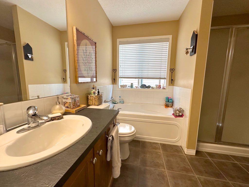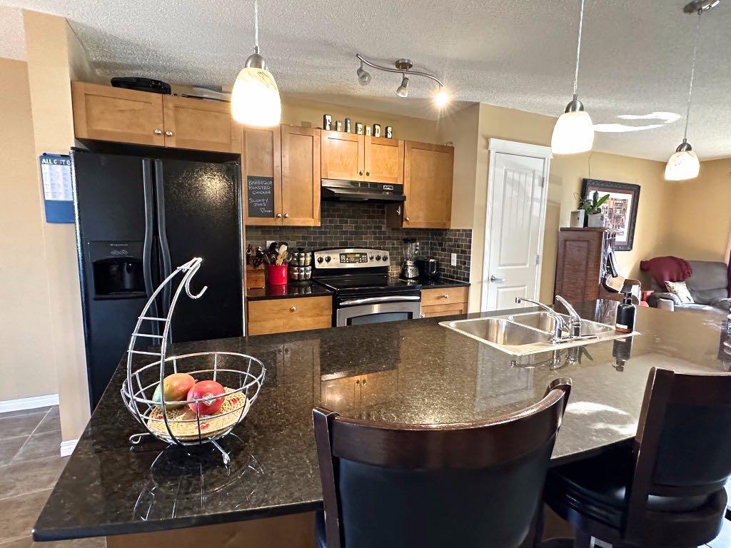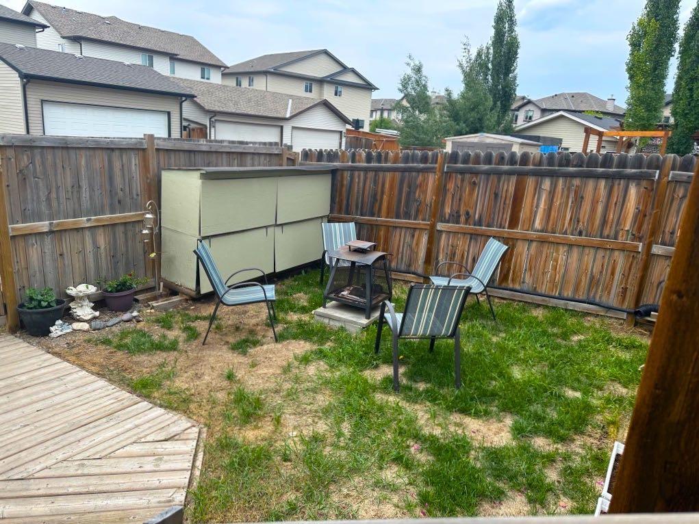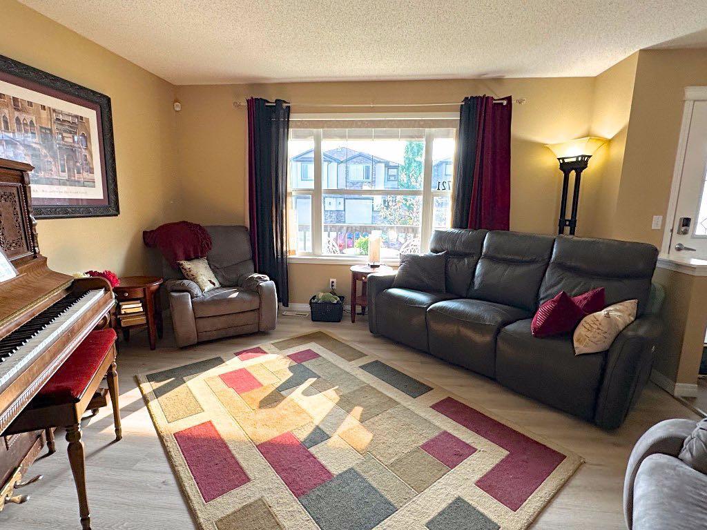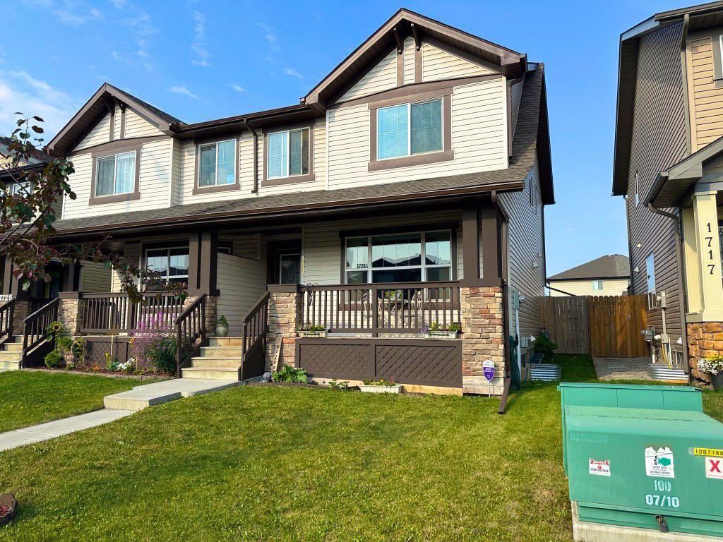 Welcome to this AFFORDABLE semi-detached home in Luxstone - (NO CONDO FEES)! Your new home is nestled away off a quiet side street in the heart of AIRDRIE and offers schools within walking distance, playgrounds, all shopping amenities and the quick access to the highway makes for an easy commute! Start with enjoying the morning sun on your porch. Enter to main level and you will see how large and wide open this space is. The kitchen features QUARTZ COUNTERTOPS with huge, oversized island, and a coffee centre. Dining area is on the way out to the back deck/yard where family can enjoy evening sun. Main floor also features 2-piece powder room and newer laminate flooring in Living Room. Make your way upstairs where there are 3 bedrooms, main 4-piece bathroom, main bedroom is spacious with 4-piece ensuite. Upper floor and stairs also have new flooring. Continuing downstairs are two bedrooms (flooring not done), laundry room and 3-piece bathroom with shower. Moving into the backyard, you will find a great deck, grass space, TWO parking stalls and fenced for your kids or dogs. Furnace, Hot Water Tank, dishwasher and flooring all new in last couple of years. Possession is very flexible. Owners and neighbours love this location because of the great features of interconnecting pathways, canals nearby, shopping, parks and playgrounds. (id:22211)