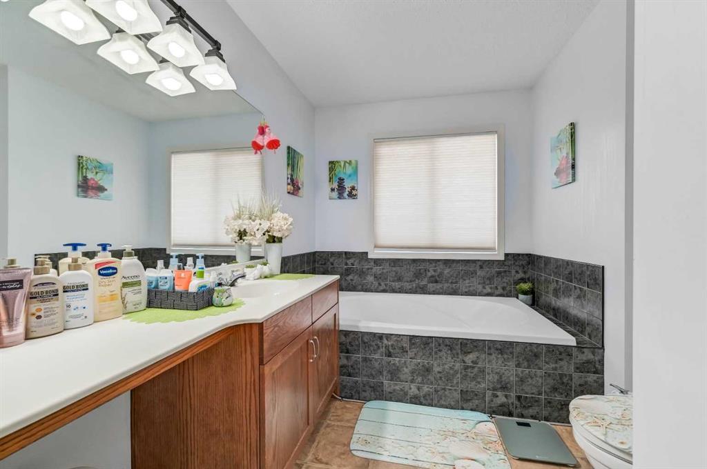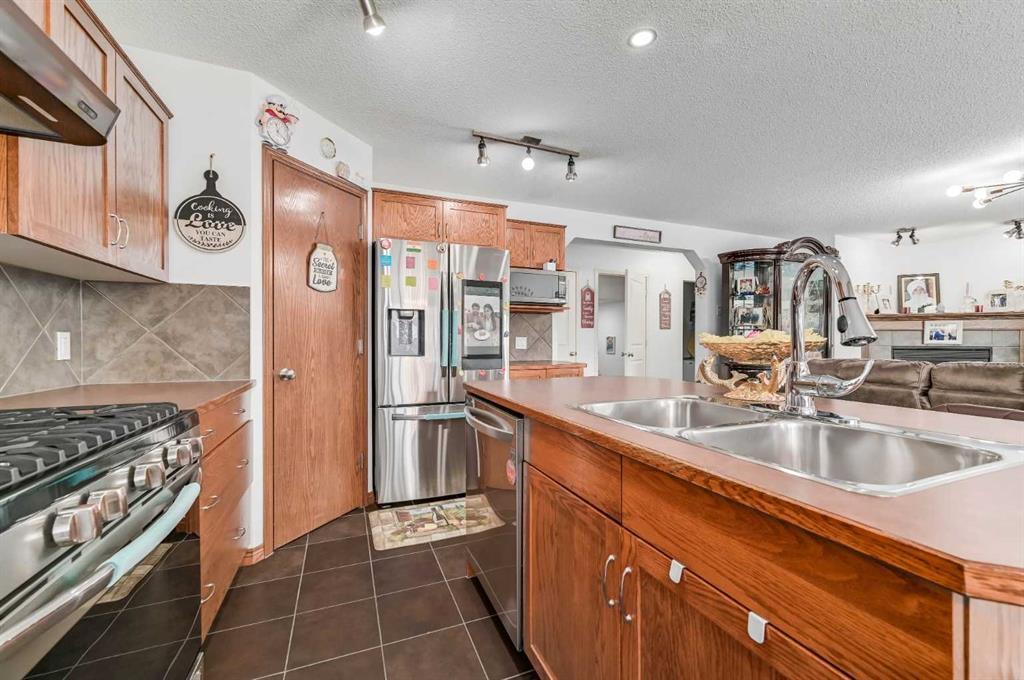 Welcome to this 2 storey air conditioned home boasting over 2600 sq.ft of developed living space. This fully developed home offers a total of 4 bedrooms, 3.5 bathrooms. Main floor includes a beautiful kitchen with island and stainless steel appliances along with bright and spacious living room with a corner gas fireplace. The laundry room completes this level. Upstairs you will be welcomed by a sprawling bonus room wired for sound, large owner's suite with ensuite , 2 good sized bedrooms and 4 piece bath. The lower level completes this home with an additional bedroom, 3 piece bath, and large rec room. The lot features a bright and sunny south facing back yard with a large deck and RV parking. Additional highlights include ample storage spaces, tankless hot water system and a double attached heated garage. (id:22211)