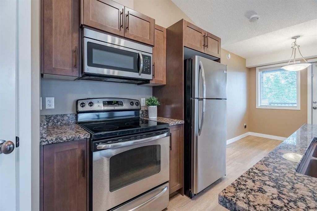 Get ready to have your socks knocked off by this absolute stunner – a 2-bedroom upper level, END unit, bungalow style townhome. And guess what? The price is as jaw-dropping. Calling all home buyers and investors – this is your golden ticket! Let's dive into the good stuff: not just one, but TWO FULL BATHROOMS. And not just one, but TWO PARKING SPOTS. You know that feeling when you step into a room and it's like the sun just winked at you? Well, that's the kind of brightness you can expect in the spacious living room with its vaulted ceiling!And hold on, because the kitchen is like a masterpiece waiting to be devoured. Granite countertops? Check. Island with an eating bar that's basically calling your name? Check. Plus, there's a corner pantry that's like your personal treasure trove. And the steel appliances? Oh yes, they're the definition of high-end fabulousness. Wait, there's more! This unit is here to make your life effortless. How about a hi-efficiency washer and dryer? In-floor heating? On-demand hot water? Yep, they're all here to make you feel like you're living in the lap of luxury.And here's the cherry on top – your condo fee has got you covered when it comes to water costs. No need to sweat the small stuff. Beautiful laminate, tile and freshly steam cleaned carpet flooring make every step feel like a joyous dance. Now, let's talk about the MASTER bedroom with a large walk-in closet and a spacious 3-piece ensuite, you'll feel like royalty. The 2nd bedroom and another full bathroom are here to complete the main floor awesomeness. Oh, and did we mention the balcony? It's like your private hideaway, perfect for sipping morning coffee or having a balcony dance party – we don't judge.This southeast-facing unit practically soaks in sunlight. Location? You're covered. Chinook Park, W.H Croxford High School, Superstore, Costco, and Safeway are all your cool neighbors. So, what are you waiting for? This beauty won't wait around forever – seize the opportunity be fore it says "bye-bye"! (id:22211)