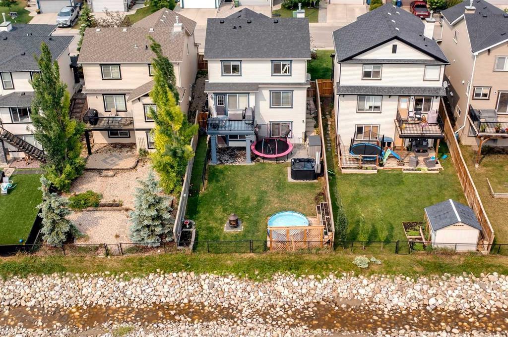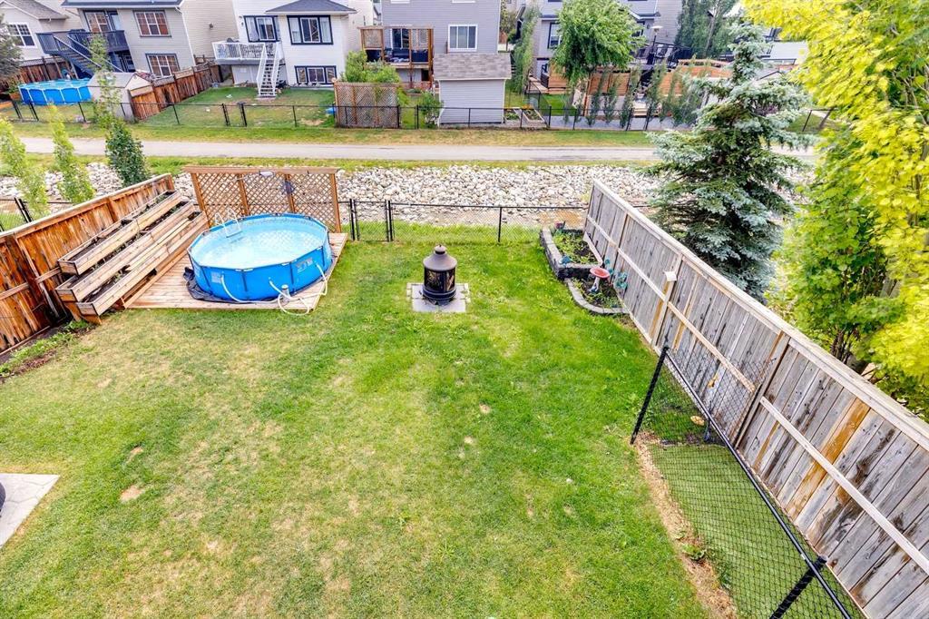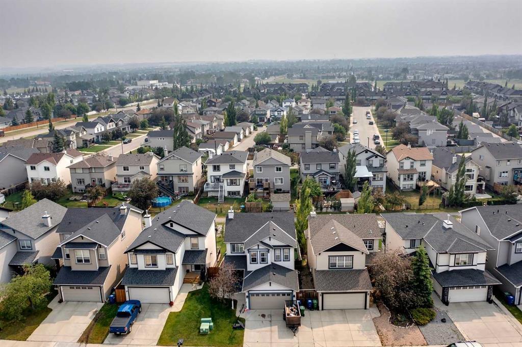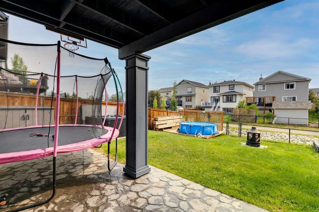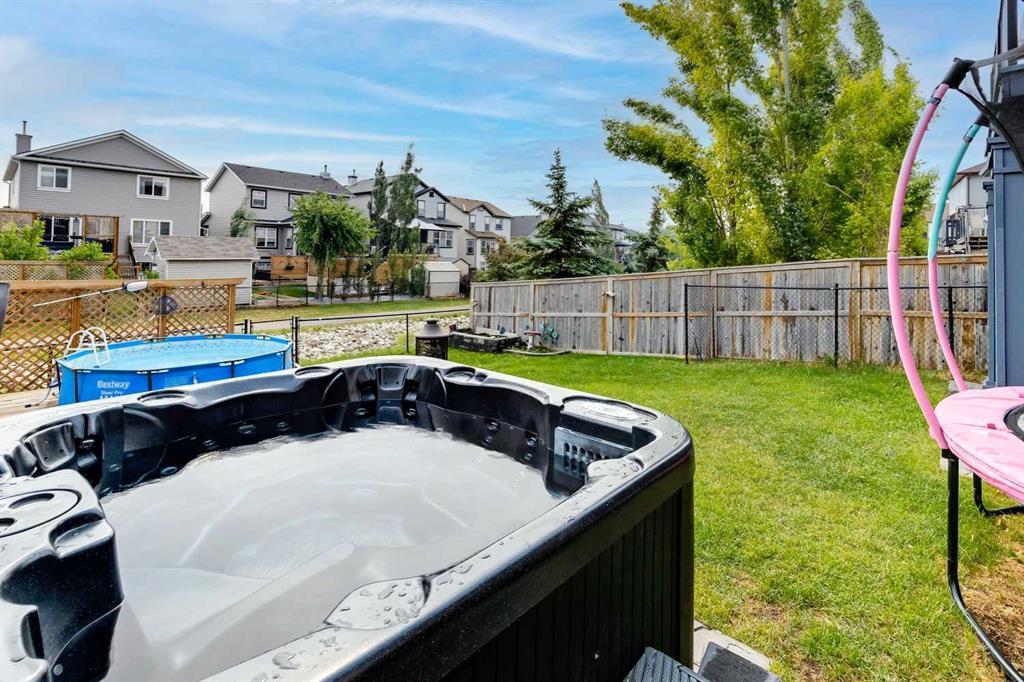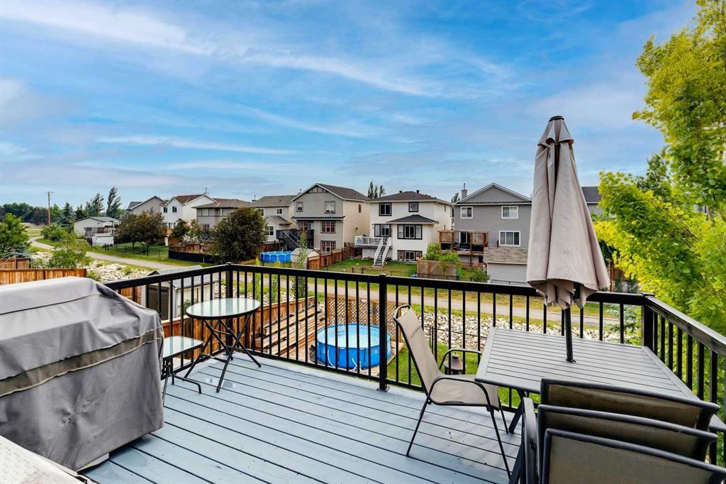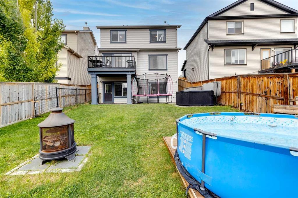 This classic family design and warm, bright aesthetic strike the perfect balance in this Sagewood of Airdrie beauty. The front door shares a spacious foyer with the entry from the heated double attached garage (which includes an anchored punching bag) and serves as a hub for the main floor. A half bathroom and laundry room sit to one side and have been updated with a new faucet and cabinetry. There is new flooring throughout the house and it is also freshly painted. In the kitchen, there are plenty of cabinets which include a full pantry, while tons of counter space is perfect for meal prep. The appliances are new, and an eating bar overlooking a sunny dining room makes it lovely to entertain. Easy access from your kitchen/dining makes it easy for evening bbq’s with your gas hook up on the back deck. A corner gas fireplace is the heart of the living room, where big windows let in natural light. Upstairs, the master suite is a peaceful retreat. A walk-in closet offers extensive organizers, and the ensuite includes a rainfall shower and separate soaker tub. This room also has a private office, which could also make a great nursery. Both secondary bedrooms are large and include blackout blinds. The well-appointed main bathroom finishes this level. The walkout basement is a fantastic feature where you will find a rec area centered around a stunning second fireplace, and it includes a built-in theater with a sound system and 46” 3D TV. Walkout access to the patio here is another great element. There is a fourth bedroom and another office/flex room. on this floor. A full bathroom has exquisite tiling, heated floors, heated towel racks, and a spa-like ambiance. Additional upgrades include A/C and a new furnace panel and controls. Outside, a sizeable lawn provides options for all your activities. There is a firepit, and the pool and hot tub have both been set up on their pads and are included. You will also love the artificial turf dog run, garden beds, and the shed. Perman ent Christmas lights were professionally installed, as were the exterior cameras, and the roof, which has been redone. Additional storage in the garage mezzanine is a bonus. This home backs directly onto the walking paths that connect tolocal ponds, parks, and schools. The kids can easily walk to school, and if they are into sports, this is a prime location! The golf course is also nearby, so you can enjoy your hobbies as well. It’s an easy drive that takes you to the dining and shopping of Creekside Crossing, in only a few minutes. This popular community in the southwest of Airdrie is in proximity to multiple routes, whether you’re hopping on Highway 2 to Calgary, or you want to skip the traffic and head west along Big Hill Springs Road to get out into the country. Book your showing today! (id:22211)