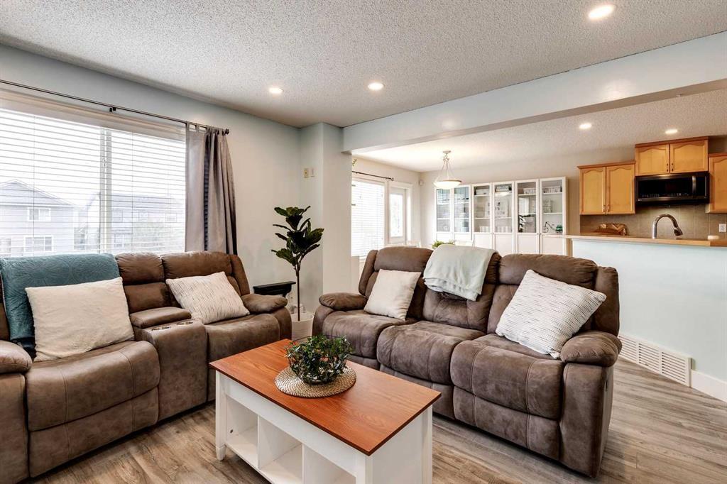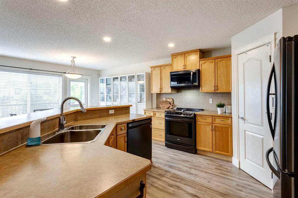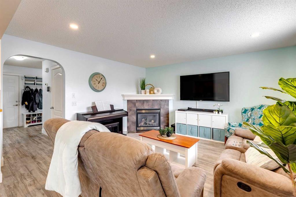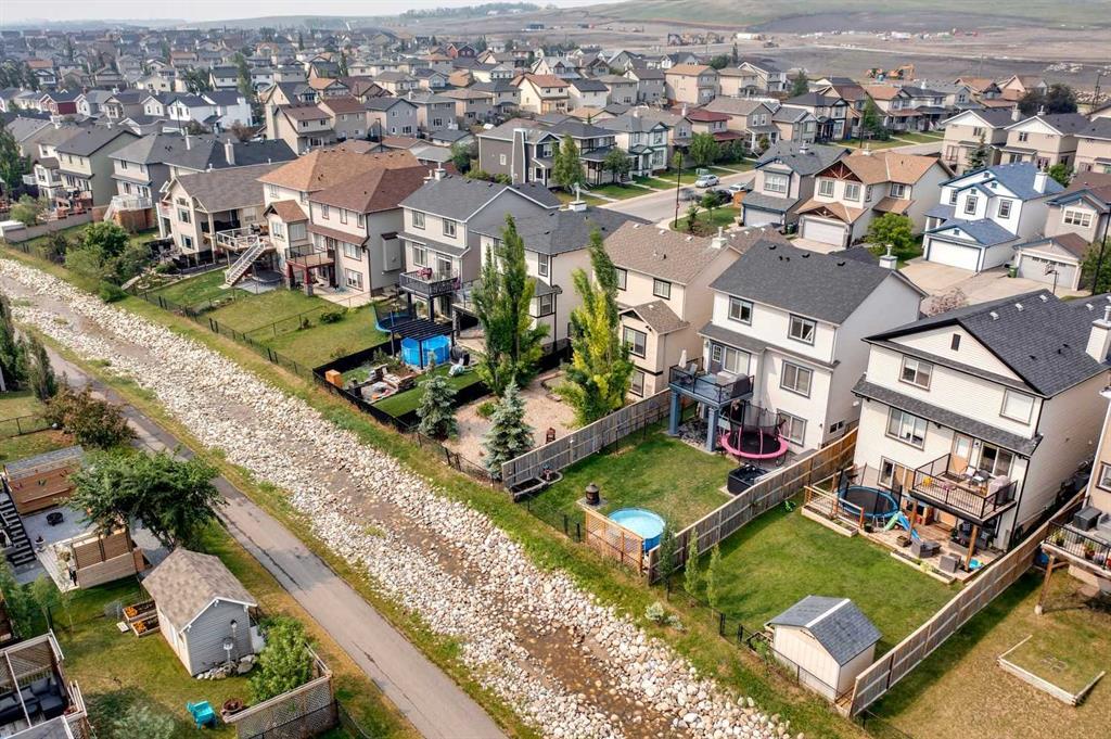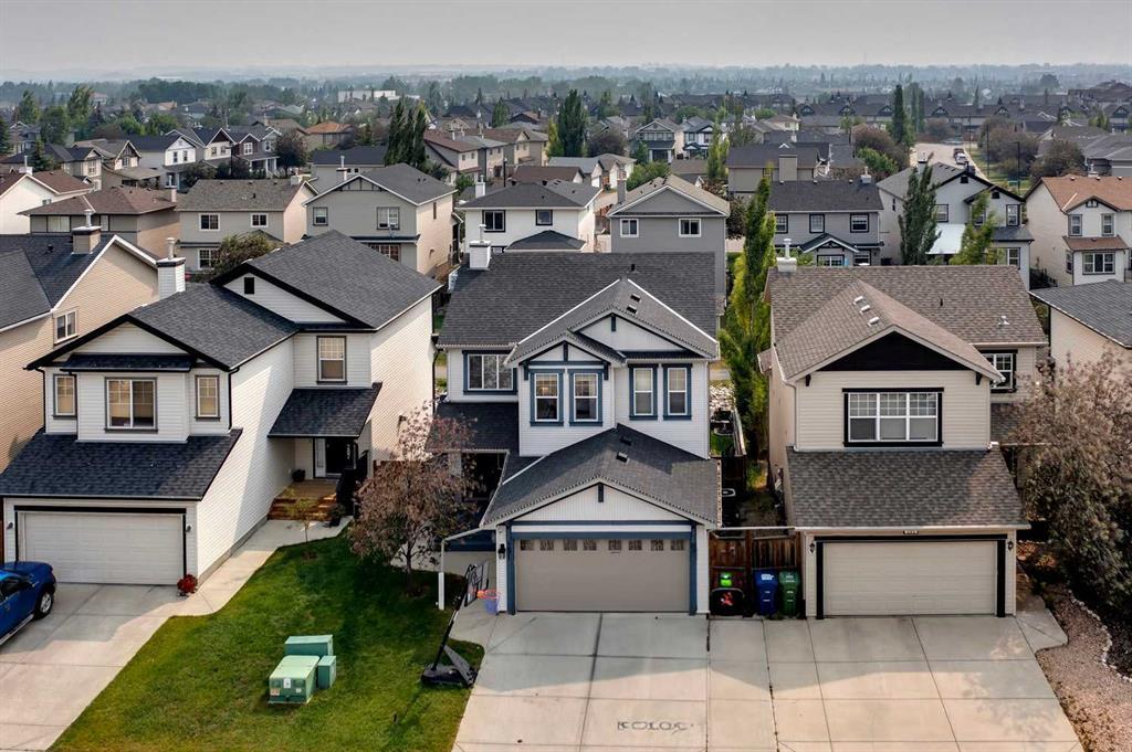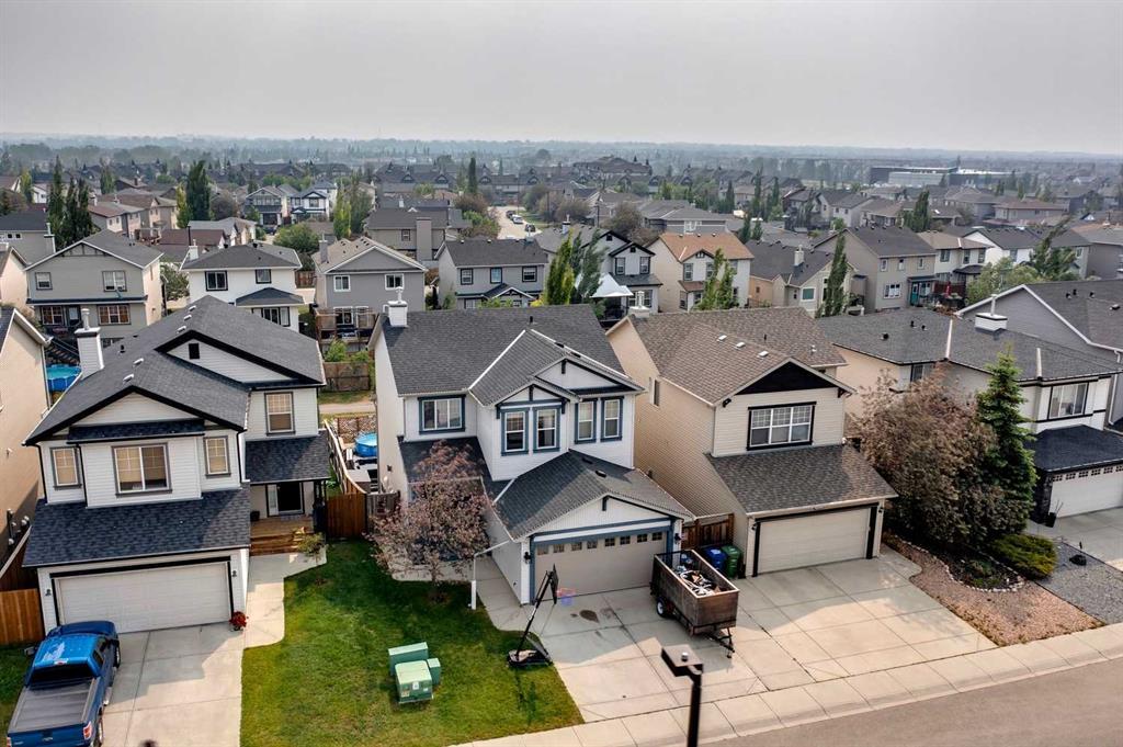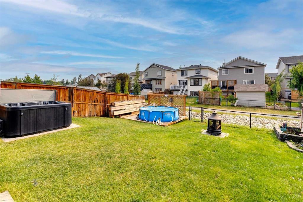 This classic family design and warm, bright aesthetic strike the perfect balance in this Sagewood of Airdrie beauty. The front door shares a spacious foyer with the entry from the heated double attached garage (which includes an anchored punching bag) and serves as a hub for the main floor. A half bathroom and laundry room sit to one side and have been updated with a new faucet and cabinetry. There is new flooring throughout the house and it is also freshly painted. In the kitchen, there are plenty of cabinets which include a full pantry, while tons of counter space is perfect for meal prep. The appliances are new, and an eating bar overlooking a sunny dining room makes it lovely to entertain. Easy access from your kitchen/dining makes it easy for evening bbq’s with your gas hook up on the back deck. A corner gas fireplace is the heart of the living room, where big windows let in natural light. Upstairs, the master suite is a peaceful retreat. A walk-in closet offers extensive organizers, and the ensuite includes a rainfall shower and separate soaker tub. This room also has a private office, which could also make a great nursery. Both secondary bedrooms are large and include blackout blinds. The well-appointed main bathroom finishes this level. The walkout basement is a fantastic feature where you will find a rec area centered around a stunning second fireplace, and it includes a built-in theater with a sound system and 46” 3D TV. Walkout access to the patio here is another great element. There is a fourth bedroom and another office/flex room. on this floor. A full bathroom has exquisite tiling, heated floors, heated towel racks, and a spa-like ambiance. Additional upgrades include A/C and a new furnace panel and controls. Outside, a sizeable lawn provides options for all your activities. There is a firepit, and the pool and hot tub have both been set up on their pads and are included. You will also love the artificial turf dog run, garden beds, and the shed. Perman ent Christmas lights were professionally installed, as were the exterior cameras, and the roof, which has been redone. Additional storage in the garage mezzanine is a bonus. This home backs directly onto the walking paths that connect tolocal ponds, parks, and schools. The kids can easily walk to school, and if they are into sports, this is a prime location! The golf course is also nearby, so you can enjoy your hobbies as well. It’s an easy drive that takes you to the dining and shopping of Creekside Crossing, in only a few minutes. This popular community in the southwest of Airdrie is in proximity to multiple routes, whether you’re hopping on Highway 2 to Calgary, or you want to skip the traffic and head west along Big Hill Springs Road to get out into the country. Book your showing today! (id:22211)