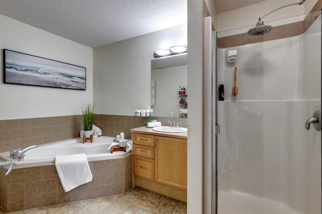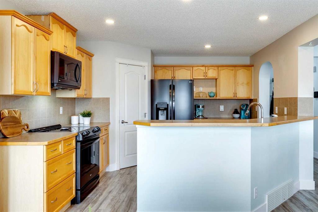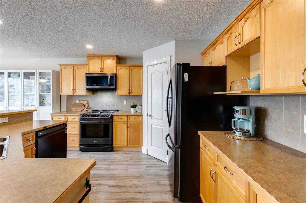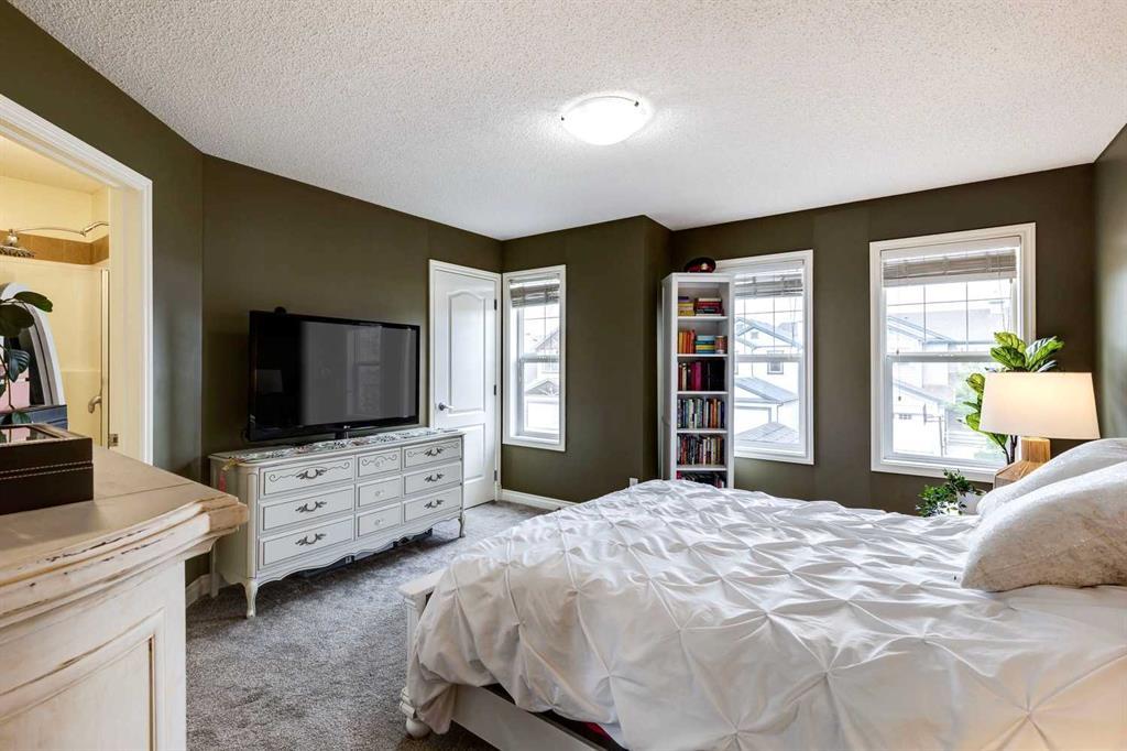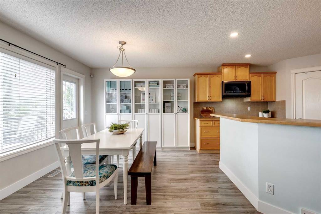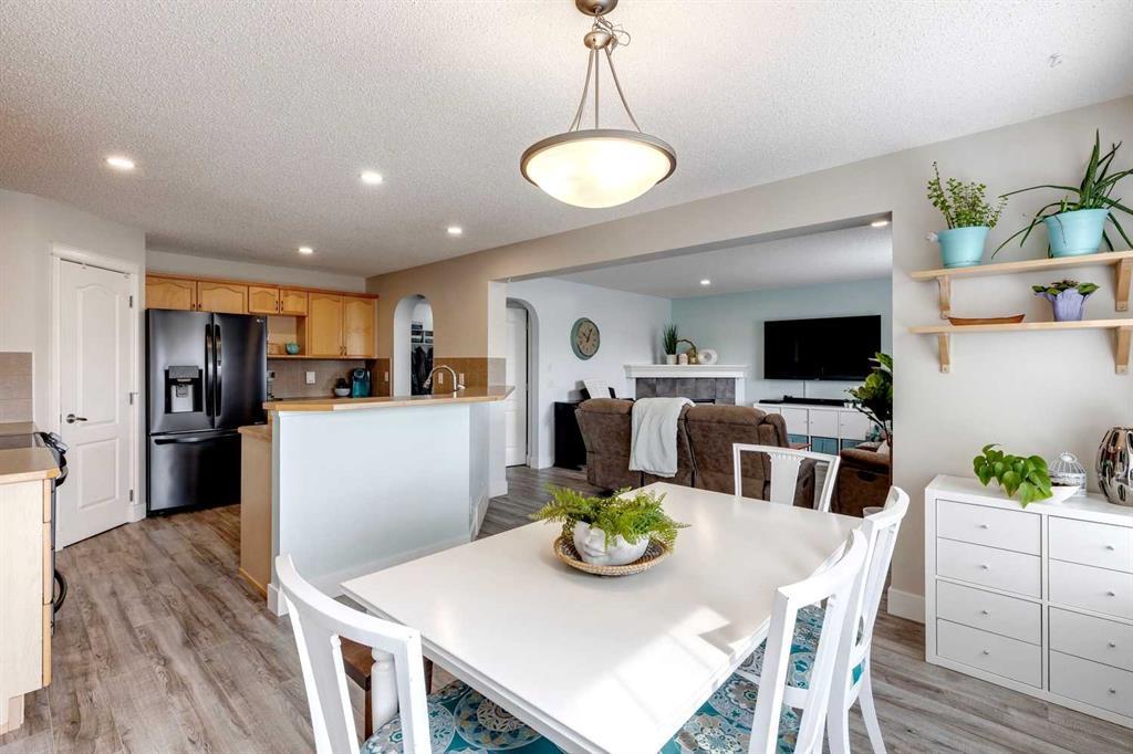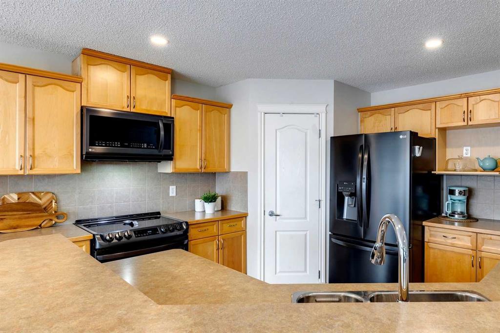 This classic family design and warm, bright aesthetic strike the perfect balance in this Sagewood of Airdrie beauty. The front door shares a spacious foyer with the entry from the heated double attached garage (which includes an anchored punching bag) and serves as a hub for the main floor. A half bathroom and laundry room sit to one side and have been updated with a new faucet and cabinetry. There is new flooring throughout the house and it is also freshly painted. In the kitchen, there are plenty of cabinets which include a full pantry, while tons of counter space is perfect for meal prep. The appliances are new, and an eating bar overlooking a sunny dining room makes it lovely to entertain. Easy access from your kitchen/dining makes it easy for evening bbq’s with your gas hook up on the back deck. A corner gas fireplace is the heart of the living room, where big windows let in natural light. Upstairs, the master suite is a peaceful retreat. A walk-in closet offers extensive organizers, and the ensuite includes a rainfall shower and separate soaker tub. This room also has a private office, which could also make a great nursery. Both secondary bedrooms are large and include blackout blinds. The well-appointed main bathroom finishes this level. The walkout basement is a fantastic feature where you will find a rec area centered around a stunning second fireplace, and it includes a built-in theater with a sound system and 46” 3D TV. Walkout access to the patio here is another great element. There is a fourth bedroom and another office/flex room. on this floor. A full bathroom has exquisite tiling, heated floors, heated towel racks, and a spa-like ambiance. Additional upgrades include A/C and a new furnace panel and controls. Outside, a sizeable lawn provides options for all your activities. There is a firepit, and the pool and hot tub have both been set up on their pads and are included. You will also love the artificial turf dog run, garden beds, and the shed. Perman ent Christmas lights were professionally installed, as were the exterior cameras, and the roof, which has been redone. Additional storage in the garage mezzanine is a bonus. This home backs directly onto the walking paths that connect tolocal ponds, parks, and schools. The kids can easily walk to school, and if they are into sports, this is a prime location! The golf course is also nearby, so you can enjoy your hobbies as well. It’s an easy drive that takes you to the dining and shopping of Creekside Crossing, in only a few minutes. This popular community in the southwest of Airdrie is in proximity to multiple routes, whether you’re hopping on Highway 2 to Calgary, or you want to skip the traffic and head west along Big Hill Springs Road to get out into the country. Book your showing today! (id:22211)