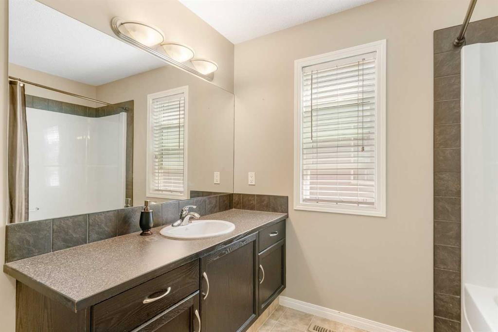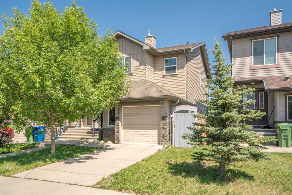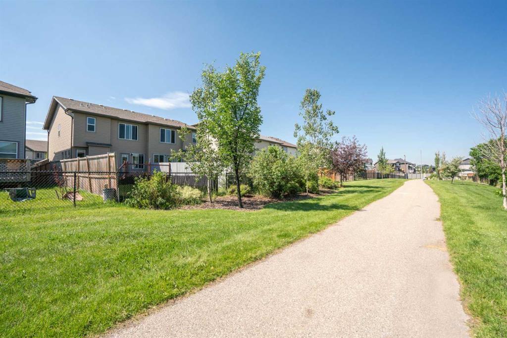 This beautiful Luxstone half-duplex is FRESH on the market and waiting for the right family to call it home. The location can’t be beaten - backing out onto the green belt, steps away from parks, ponds and canals, and absolutely ZERO condo fees. If you want to enjoy all Luxstone offers at an affordable price, you’re in luck. This home has it all - from the welcoming, south-facing entry and down the hall, you will appreciate the large and open kitchen layout. The kitchen has tons of counter space, featuring an eat-at bar and stainless steel appliances in an open-concept galley overlooking the living room. In the living room, the gas fireplace warms the home and complements the large windows overlooking the gigantic backyard. Upstairs are your three bedrooms and two full bathrooms. The primary bedroom features a large bathroom with a generous walk-in closet conveniently out of the way. The convenient upstairs laundry is in the hallway, also lined with additional storage. Downstairs the single garage has a convenient storage nook for all your yard gear, and the undeveloped basement is the perfect place to add more personal touches to the home, featuring a well-placed bathroom rough-in, additional storage spaces and large windows in case a fourth bedroom is added in the future. It’s hard not to appreciate how significant the backyard is, even with such a large patio. Better yet, you can easily access the walking paths and green space just beyond the fence to access the canals in Bayside, Luxstone Pond, Nose Creek, and even multiple playgrounds in the neighbourhood! As a cherry on top, multiple schools are nearby, including Nose Creek Elementary School, Myriel Clayton Middle School, W.H. Croxford High School, and St. Martin de Porres High School. Transit is easily accessible at less than a 2 min walk away, and this home is close to shopping, Yankee Valley Blvd and QEII. Come see why Luxstone is one of the best places to live in Airdrie. You’ll love living here! (id:22211)