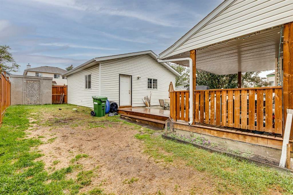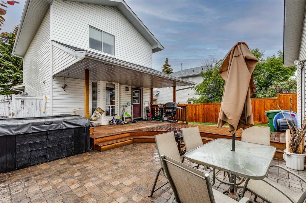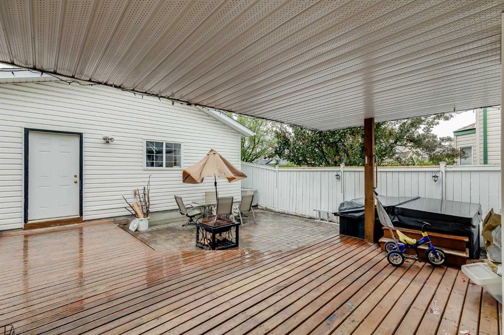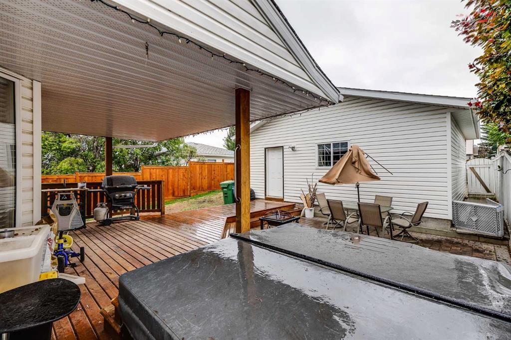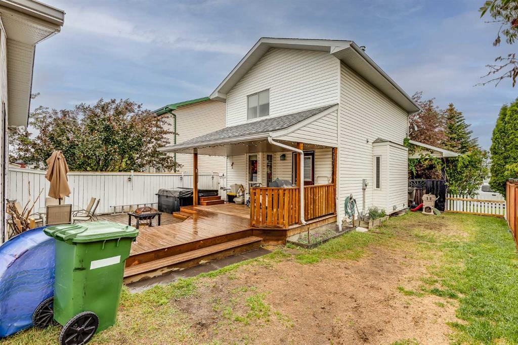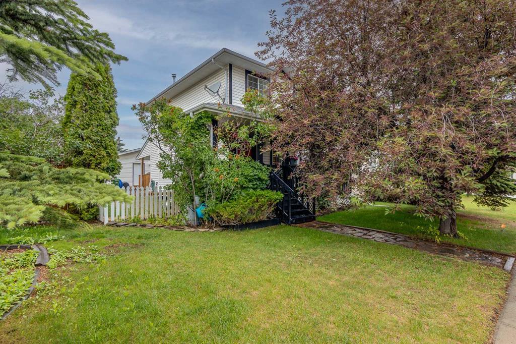Welcome to this charming 2-storey home nestled in the well-established community of Woodside. This home presents an excellent opportunity to personalize it to suit your unique taste and style at an affordable price! This home has a delightful curb appeal, adorned by majestic mature trees and a large yet cozy front VERANDA, it's the perfect spot to savor your morning coffee and listen to the birds sing! Step inside and be greeted by the inviting main floor, featuring a gas fireplace in the living room that connects to a large dining room. The EAT IN kitchen has a PANTRY, beautiful SLATE backsplash, under cabinet lighting, a garburator, and a cute bay window looking onto the backyard oasis. A 2-piece bathroom and main floor laundry make this floor complete! Head upstairs and bask in the natural light that the skylights bring in. Upstairs there are two decent sized bedrooms, a 4-piece bathroom also featuring a stunning skylight, and a primary bedroom that can easily fit a KING sized bed, a 2-piece ENSUITE and a WALK IN closet! The basement has a large rec room, a 4-piece bathroom and a 4th bedroom (please note that the window does not meet egress standards) and features New Vinyl flooring and a newer Hot water tank! The backyard can be your own oasis, a thought out COVERED patio that you can enjoy in any weather, plus a HOT TUB and shed for that extra storage. This yard is big enough for the animals and kids to run, and to entertain and make many future memories! The OVERSIZED DOUBLE DETACHED garage is fully INSULATED with 240 VOLT panel. This is a fantastic opportunity that you do not want to miss! (id:22211)