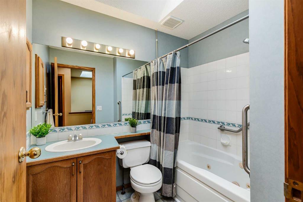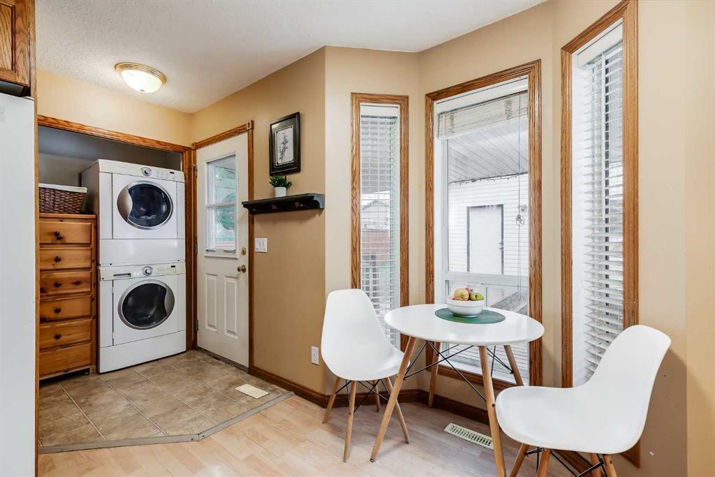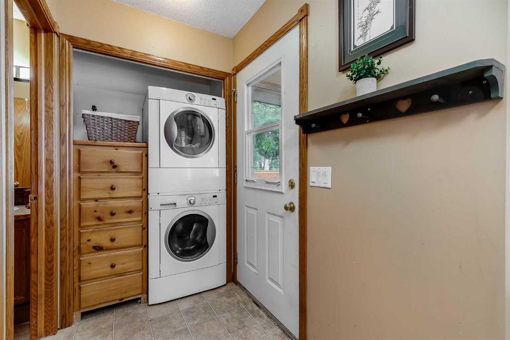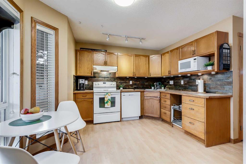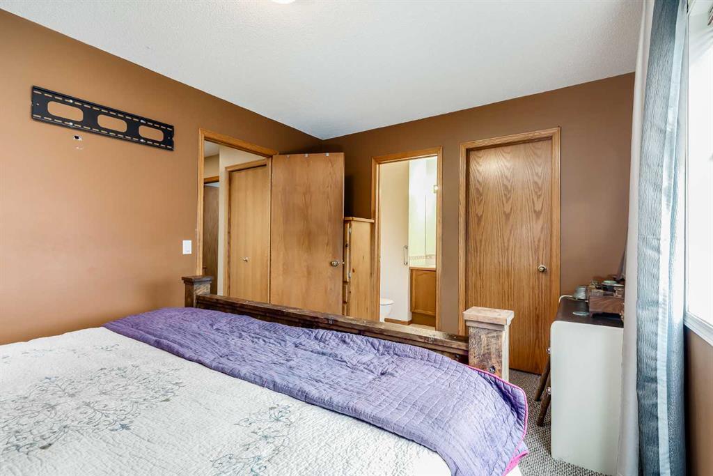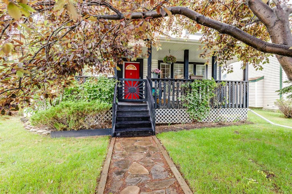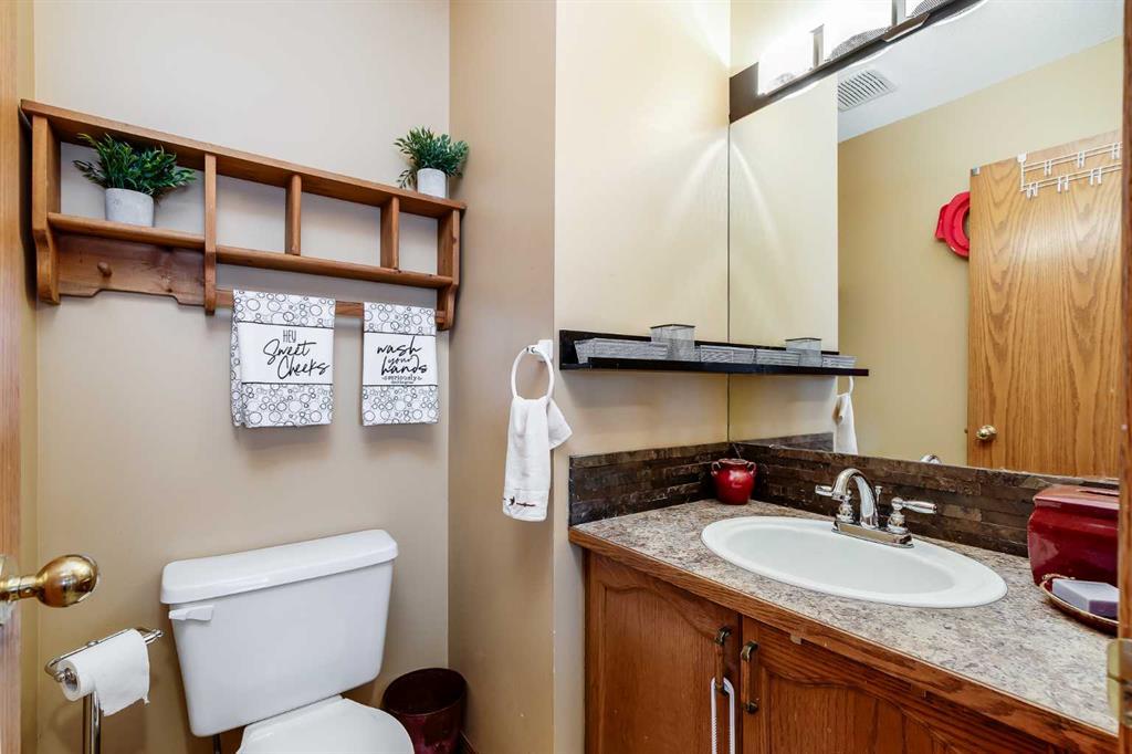 Welcome to this charming 2-storey home nestled in the well-established community of Woodside. This home presents an excellent opportunity to personalize it to suit your unique taste and style at an affordable price! This home has a delightful curb appeal, adorned by majestic mature trees and a large yet cozy front VERANDA, it's the perfect spot to savor your morning coffee and listen to the birds sing! Step inside and be greeted by the inviting main floor, featuring a gas fireplace in the living room that connects to a large dining room. The EAT IN kitchen has a PANTRY, beautiful SLATE backsplash, under cabinet lighting, a garburator, and a cute bay window looking onto the backyard oasis. A 2-piece bathroom and main floor laundry make this floor complete! Head upstairs and bask in the natural light that the skylights bring in. Upstairs there are two decent sized bedrooms, a 4-piece bathroom also featuring a stunning skylight, and a primary bedroom that can easily fit a KING sized bed, a 2-piece ENSUITE and a WALK IN closet! The basement has a large rec room, a 4-piece bathroom and a 4th bedroom (please note that the window does not meet egress standards) and features New Vinyl flooring and a newer Hot water tank! The backyard can be your own oasis, a thought out COVERED patio that you can enjoy in any weather, plus a HOT TUB and shed for that extra storage. This yard is big enough for the animals and kids to run, and to entertain and make many future memories! The OVERSIZED DOUBLE DETACHED garage is fully INSULATED with 240 VOLT panel. This is a fantastic opportunity that you do not want to miss! (id:22211)
