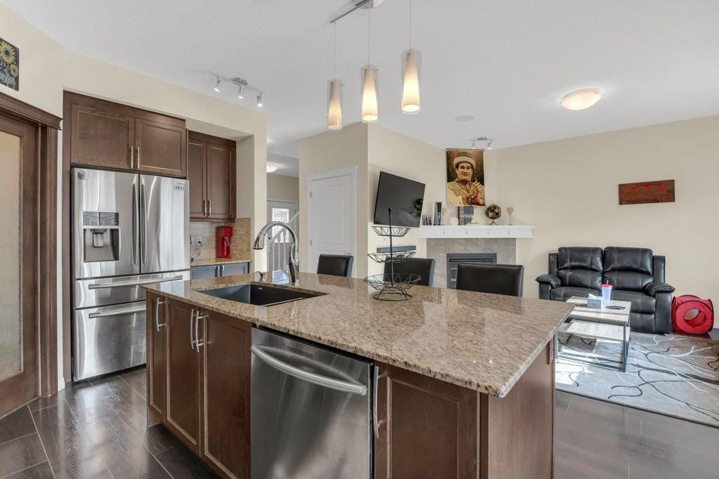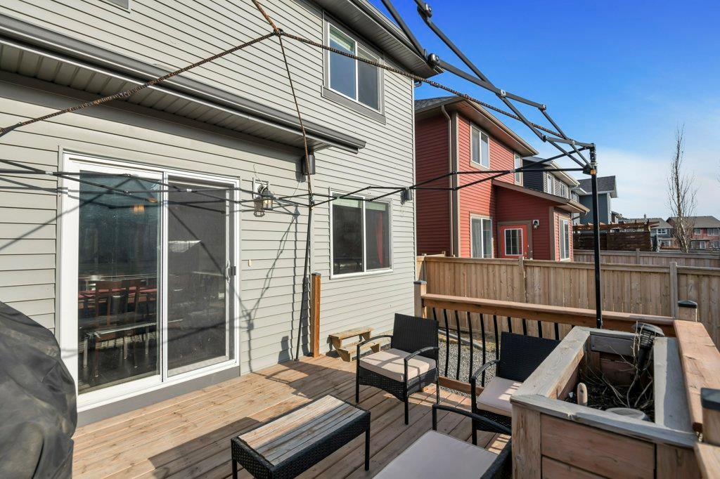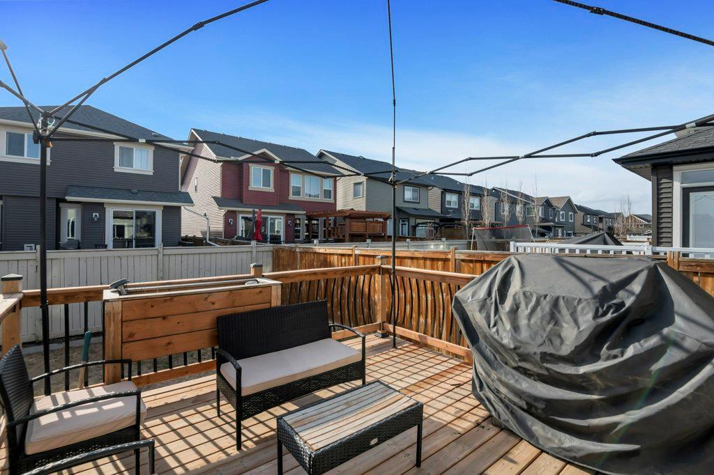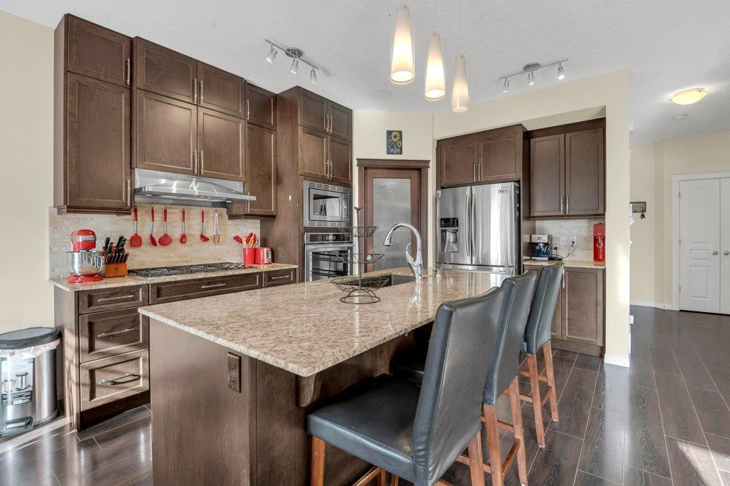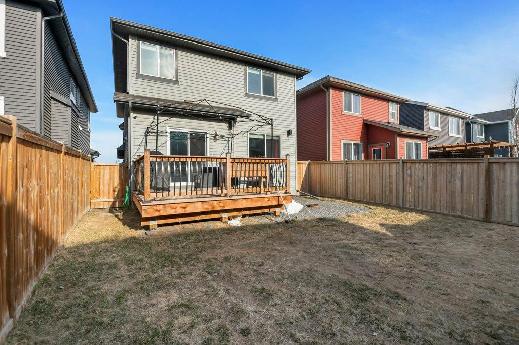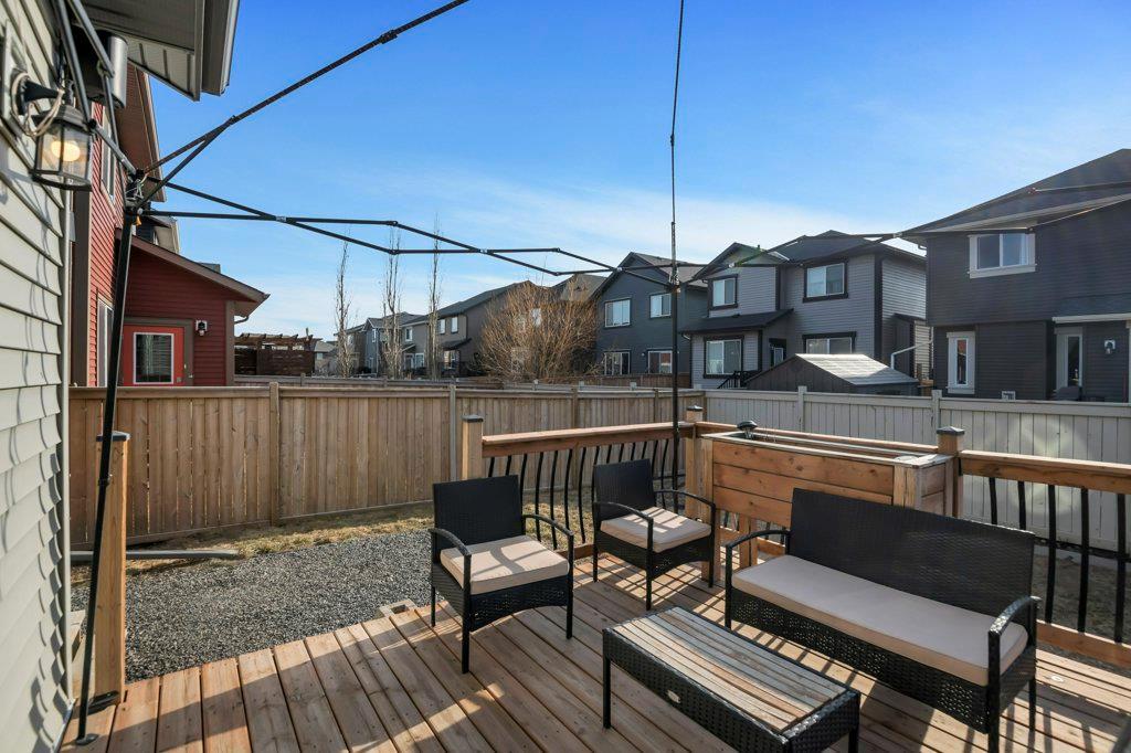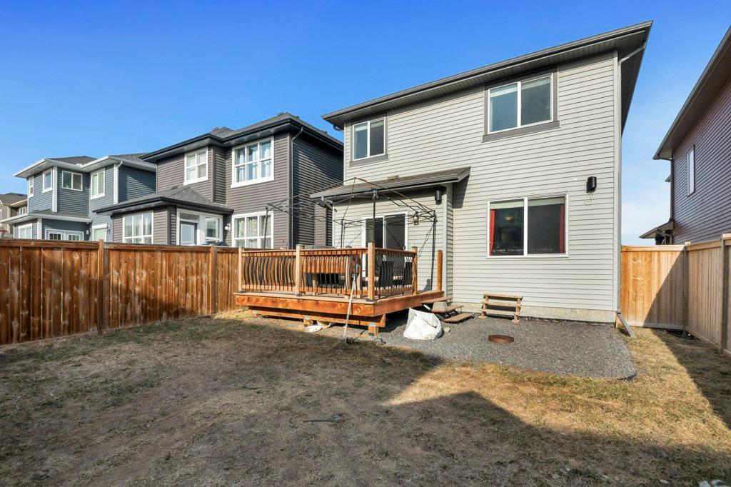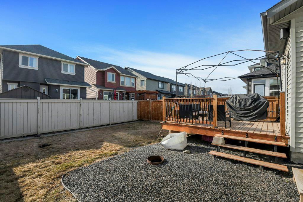 Welcome to this STUNNING home built by Shane Homes in the beautiful community of King's Heights! The main floor consists of a bright and airy living room featuring a cozy fireplace with mantle that includes a floor muffle with superior sound insulation properties and 4 built-in speakers to enjoy music. The living room is also open to the very spacious gourmet kitchen featuring the stainless steel appliances with built-in microwave, built-in high end gas stove, built-in Kitchenaid oven and an upgraded Samsung fridge. The kitchen offers plenty of storage in the full height maple soft close cabinets and also features a walk-through pantry room that takes you to the mudroom and then to the insulated double attached garage plus a man door access. Granite counter-tops through out the house, a large sink in the kitchen with a high end Garburator. The generous sized dining room is large enough to seat your big family with patio door access to the gorgeous wooden deck with a pergola to enjoy BBQ during all seasons including a gas line for the BBQ. A half bath is also included to complete the main floor. Make your way up the stairs and you will find a perfect bonus room with 2 built-in speakers, a perfect place to retreat. The primary bedroom includes 2 more built-in speakers and a 4 piece ensuite with a walk-in closet and a jetted tub with 1 more built-in speaker for a perfect end to a beautiful evening . Also, on this level are 2 additional generous size bedrooms with walk-in closets, a spacious laundry room plus a full bathroom. The well-manicured yard is large and easy access from the patio. The unfinished basement is large and bright and awaits your design! Some of the other features include Central AC, Water Softener, Humidifier and hot and cold water outdoors(front and back). Fantastic location for this family home in Airdrie's South East Community of King's Heights, for easy access to major roads, proximity to Calgary and Cross Iron Mills. Shor t walk to schools, playgrounds, Ice Rink and plenty of shopping nearby. Call for you private tour today! (id:22211)