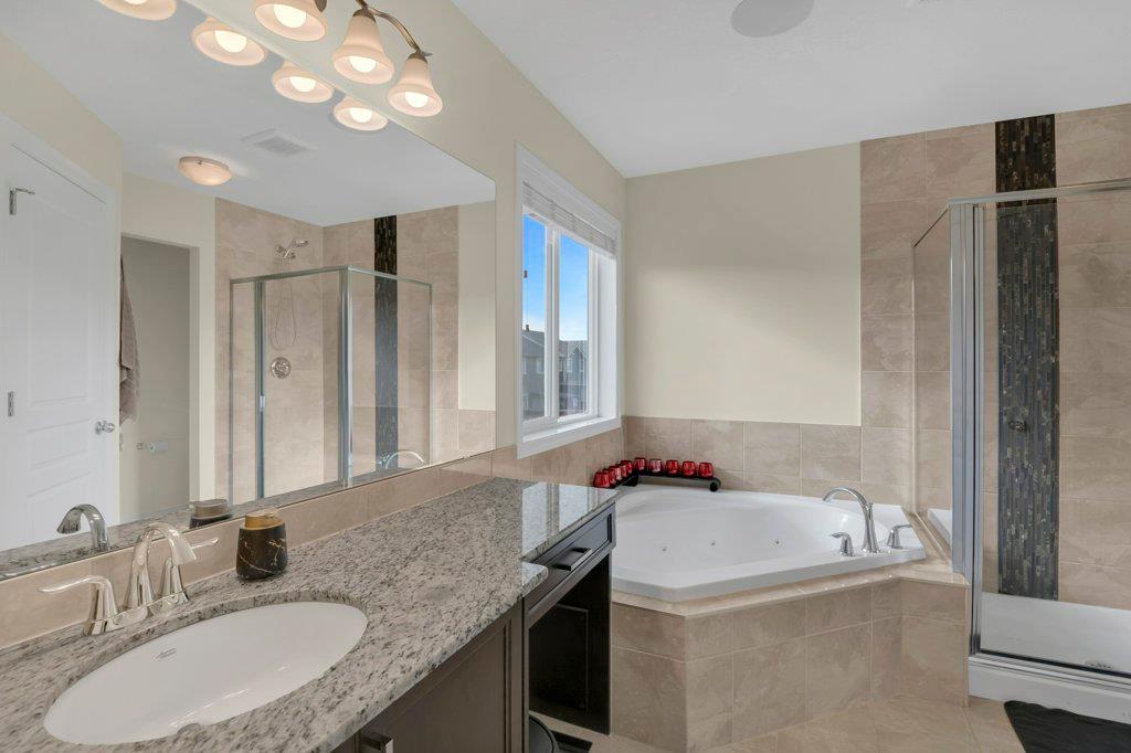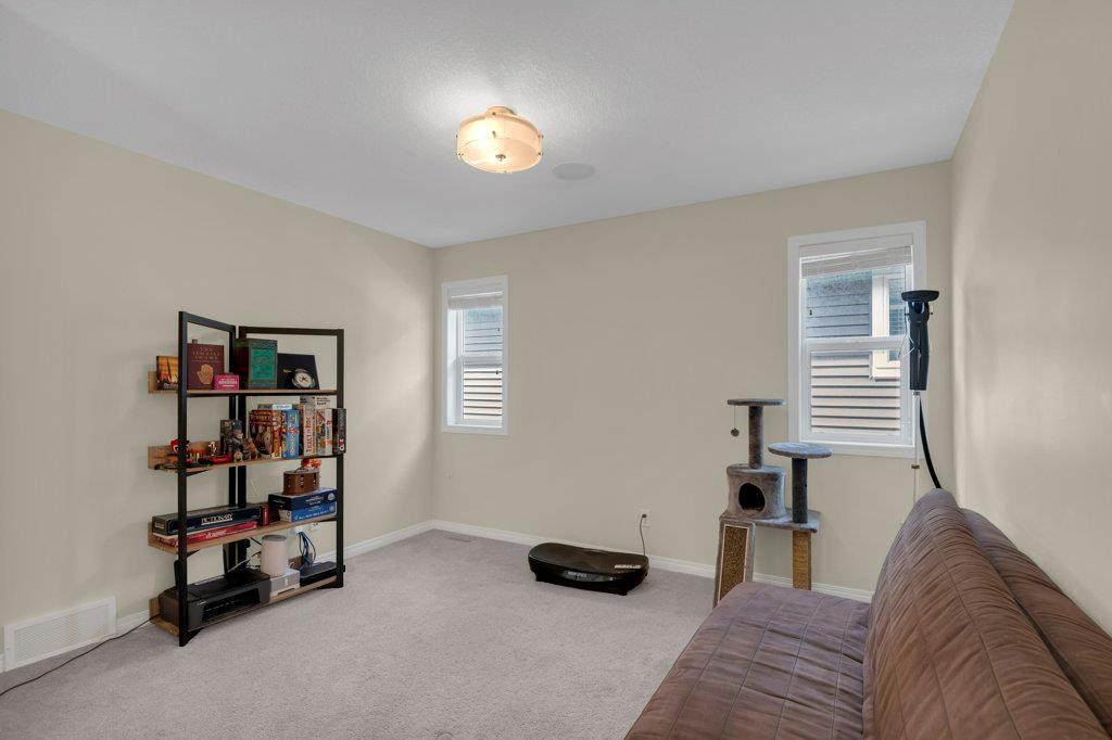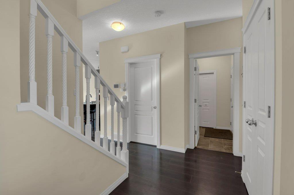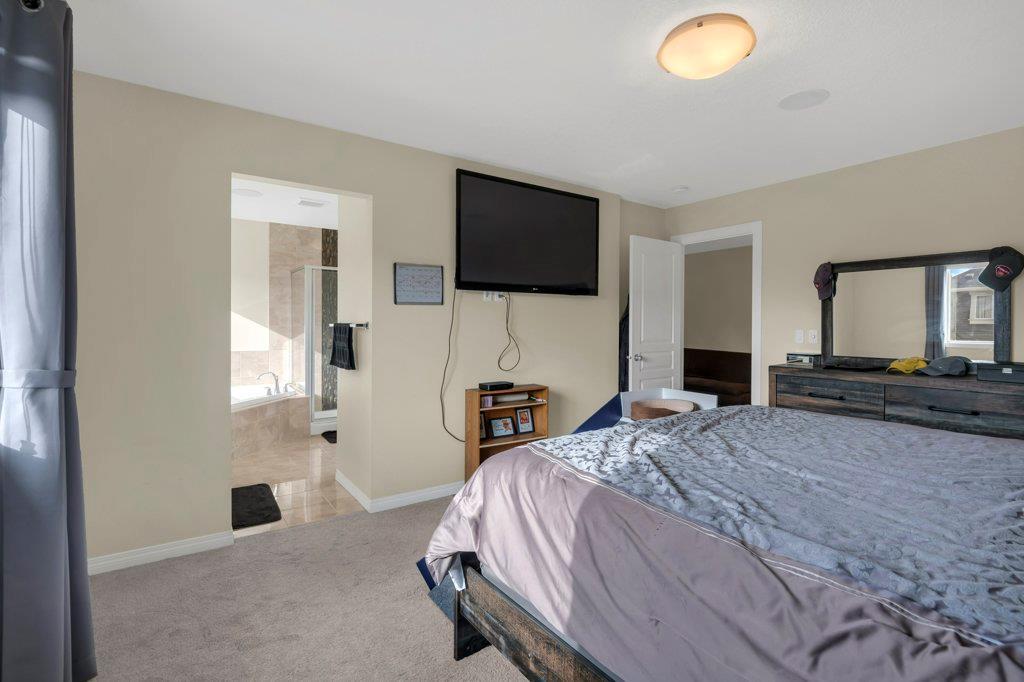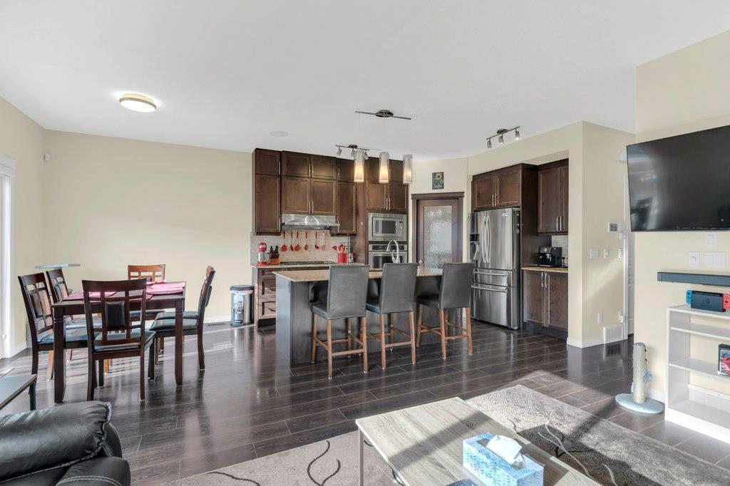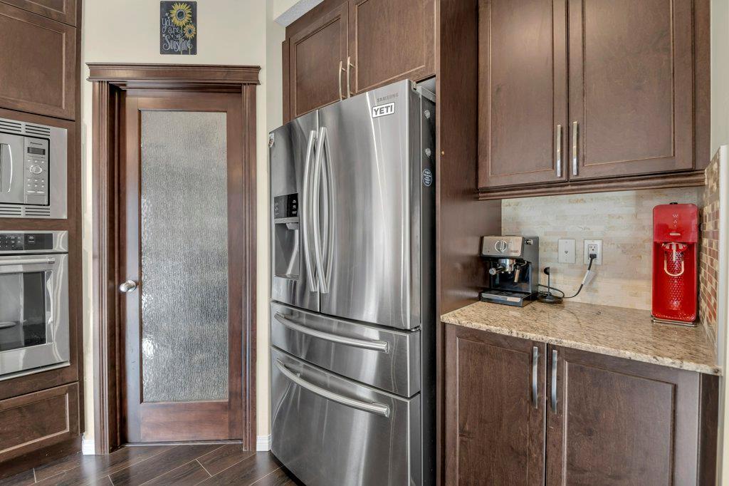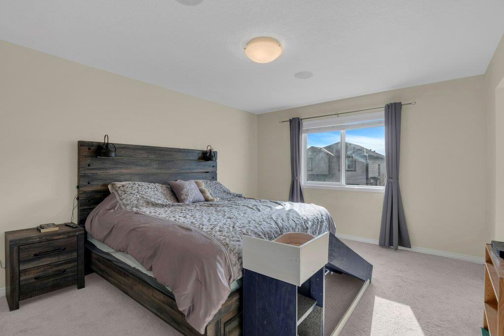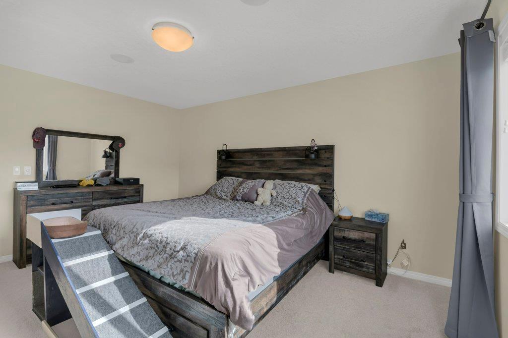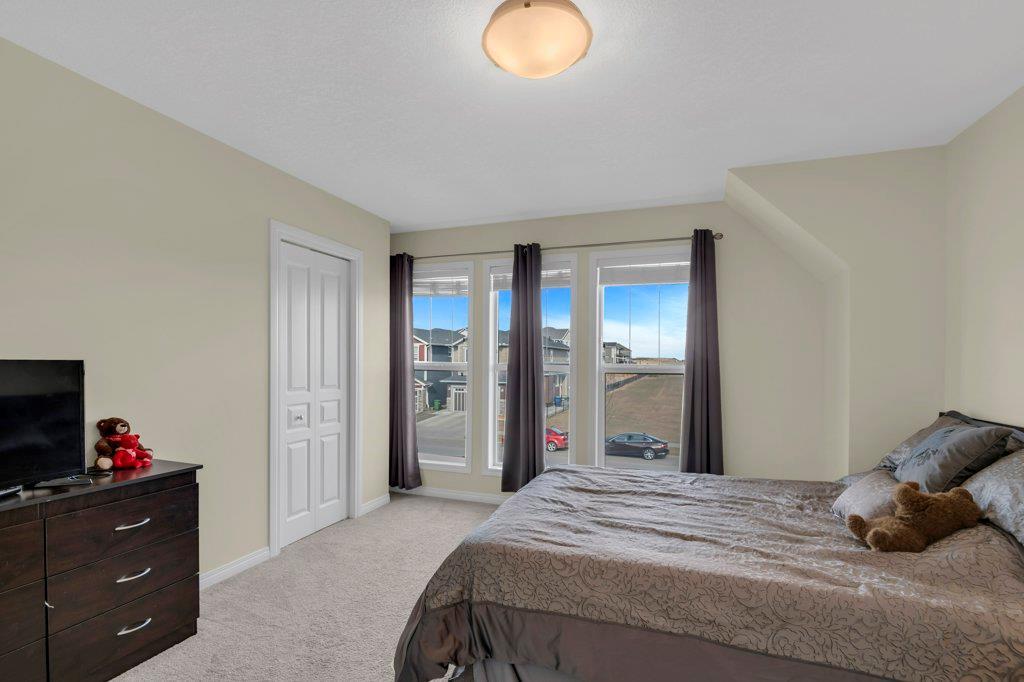 Welcome to this STUNNING home built by Shane Homes in the beautiful community of King's Heights! The main floor consists of a bright and airy living room featuring a cozy fireplace with mantle that includes a floor muffle with superior sound insulation properties and 4 built-in speakers to enjoy music. The living room is also open to the very spacious gourmet kitchen featuring the stainless steel appliances with built-in microwave, built-in high end gas stove, built-in Kitchenaid oven and an upgraded Samsung fridge. The kitchen offers plenty of storage in the full height maple soft close cabinets and also features a walk-through pantry room that takes you to the mudroom and then to the insulated double attached garage plus a man door access. Granite counter-tops through out the house, a large sink in the kitchen with a high end Garburator. The generous sized dining room is large enough to seat your big family with patio door access to the gorgeous wooden deck with a pergola to enjoy BBQ during all seasons including a gas line for the BBQ. A half bath is also included to complete the main floor. Make your way up the stairs and you will find a perfect bonus room with 2 built-in speakers, a perfect place to retreat. The primary bedroom includes 2 more built-in speakers and a 4 piece ensuite with a walk-in closet and a jetted tub with 1 more built-in speaker for a perfect end to a beautiful evening . Also, on this level are 2 additional generous size bedrooms with walk-in closets, a spacious laundry room plus a full bathroom. The well-manicured yard is large and easy access from the patio. The unfinished basement is large and bright and awaits your design! Some of the other features include Central AC, Water Softener, Humidifier and hot and cold water outdoors(front and back). Fantastic location for this family home in Airdrie's South East Community of King's Heights, for easy access to major roads, proximity to Calgary and Cross Iron Mills. Shor t walk to schools, playgrounds, Ice Rink and plenty of shopping nearby. Call for you private tour today! (id:22211)