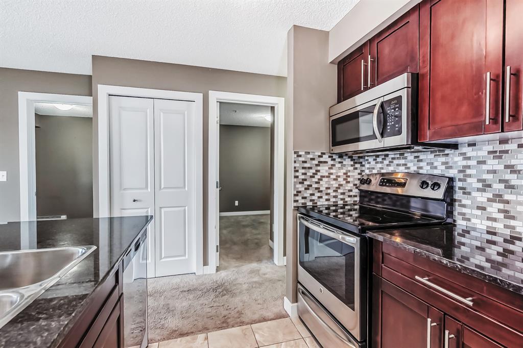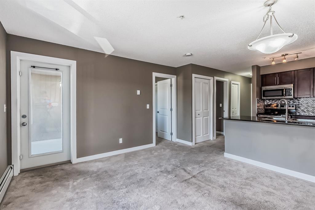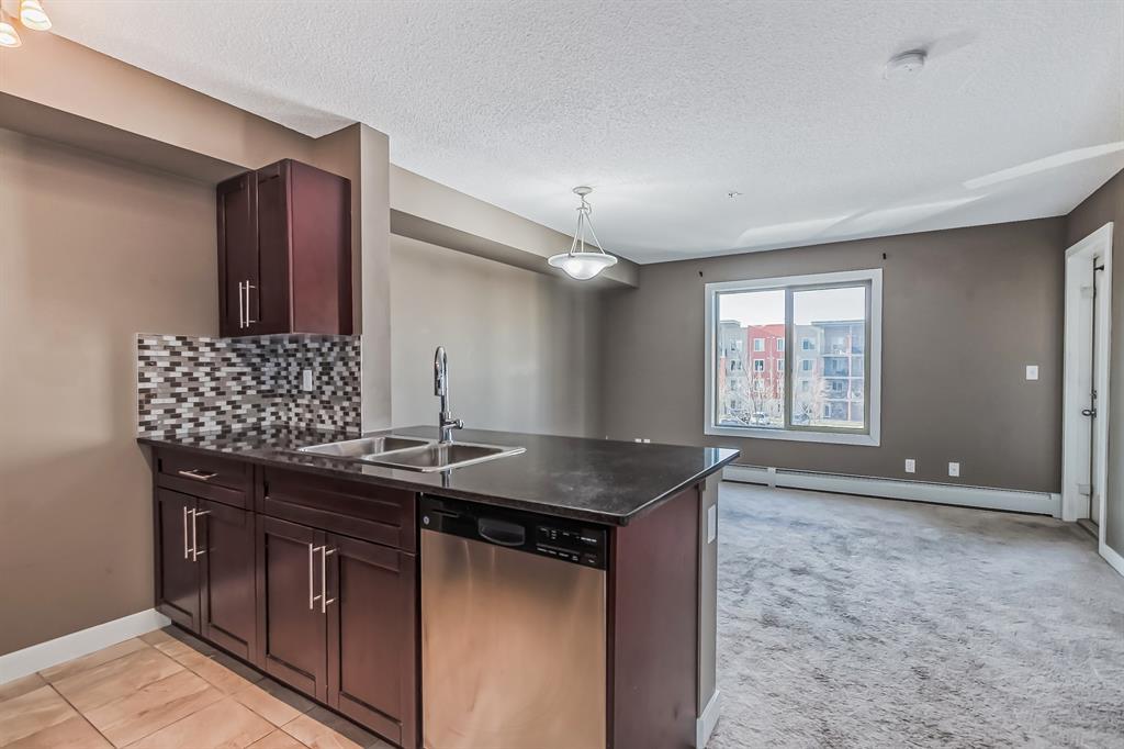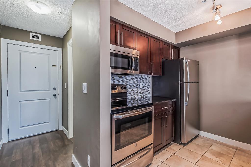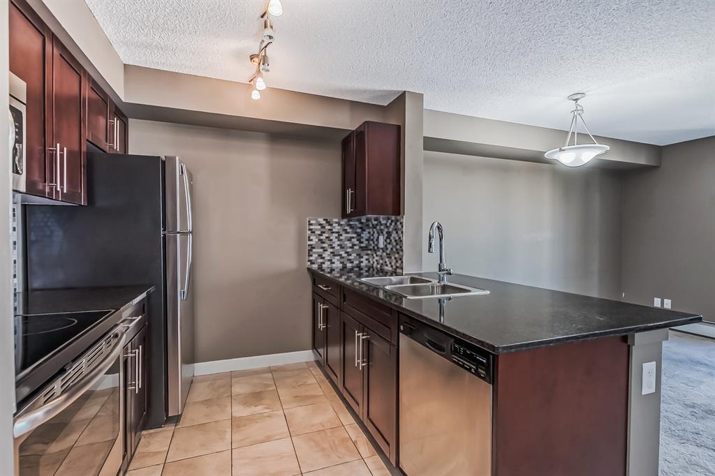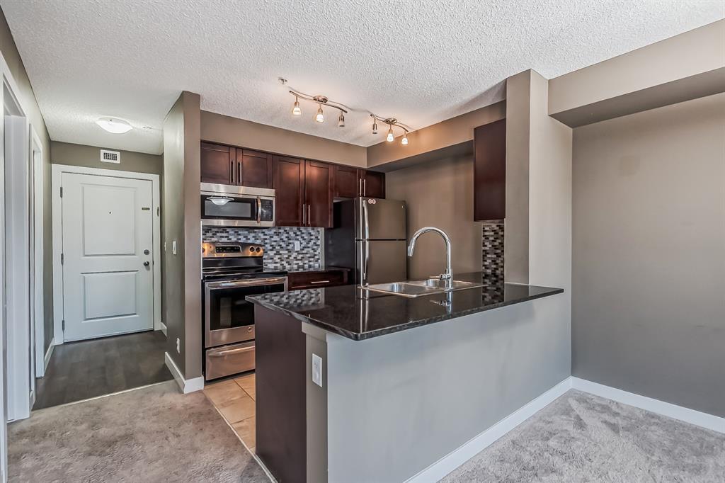 Welcome to 403 Mackenzie Way located in downtown Airdrie! This stunning 1 Bedroom, 1 Bathroom plus den apartment offers LOW CONDO FEES and is the perfect place for a single professional, couple, or investor looking to create an extra source of income. As you step inside, you'll immediately notice the spacious and open floor plan, with plenty of natural light pouring in through the large windows. The living area is perfect for relaxing or entertaining, with enough space for a comfortable sofa, chairs, and a dining area for enjoying meals with friends or loved ones. The kitchen is beautifully designed and fully equipped with stainless steel appliances, granite countertops, and ample storage space for all of your cooking essentials. The bedroom is cozy and comfortable, with plush carpeting and a large closet for all of your belongings. The den is a versatile space that can be used as a home office, study, or even a guest room for visitors. The bathroom is sleek and modern, with a spacious shower and high-quality fixtures and finishes. Outside, you'll have access to a range of amenities, including a fitness center, daycares, schools, etc. With this unit being in the downtown subdivision of Airdrie, you'll be just steps away from a variety of shops, restaurants, and entertainment options, and even have easy access from the highway, and 15 minutes to Crossiron Mills and Costco. Call your favorite realtor and come check out this home TODAY!! (id:22211)