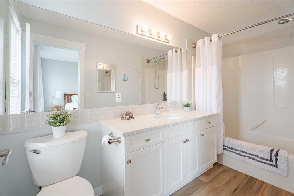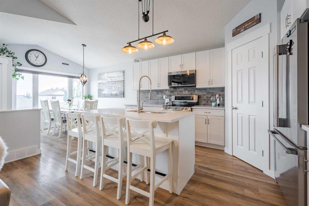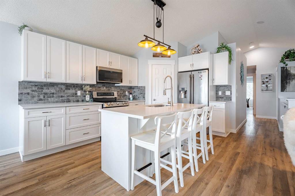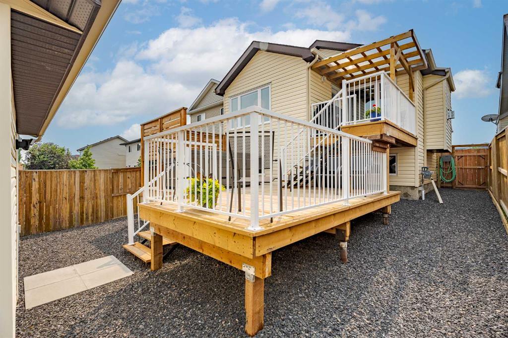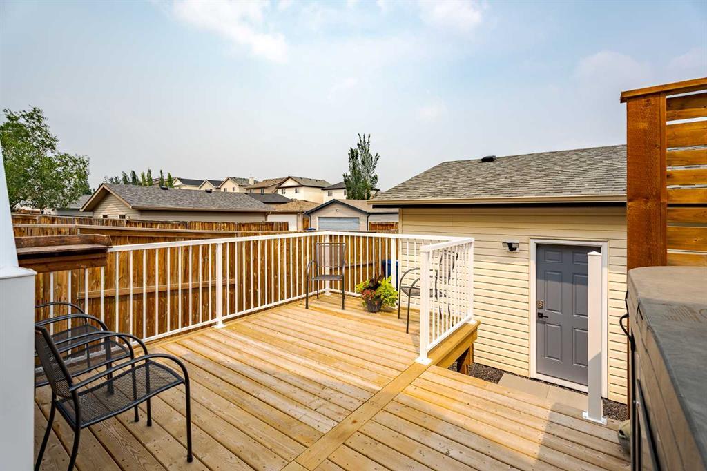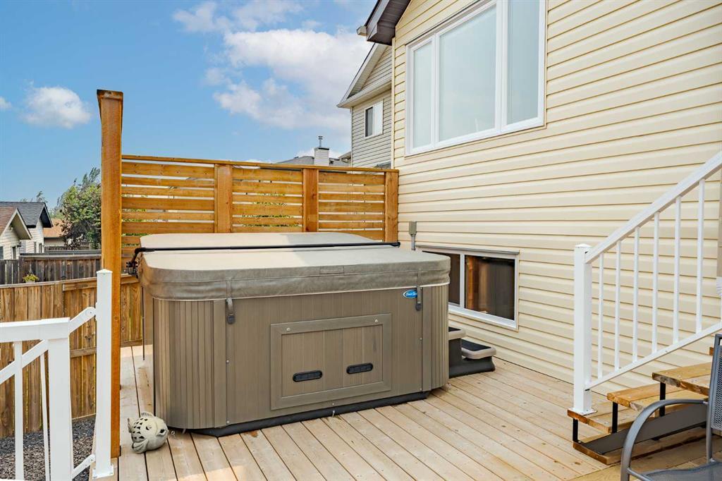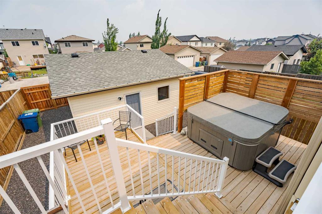 Welcome to your dream home in Stunning Sagewood! This beautiful bilevel boasts modern updates and incredible features that you will love. A newly installed solar system will help with the monthly cost of living and even allows you to sell your unused solar energy back to the grid adding money to your pocket. Your low maintenance yard has underground sprinklers in the front and elegant rock in the back. The tiered rear deck is the perfect place to hang out and enjoy the sunshine and even features a top-of-the-line hot tub for you to help soak your daily worries away. The back yard is fully fenced and new gates at the front and rear of the back yard have recently been installed. The double detached garage is insulated, has 220 power and an independent electric panel. A great space to work and park! As you enter the home, you'll be impressed by the vaulted ceilings and stunning vinyl plank flooring running through the main floor. The living room is anchored by a beautiful gas fireplace, perfect for warming up on chilly evenings. A new motor, fan, and battery back up means that even if the power goes out the fireplace can help keep you warm. The updated kitchen is a chef's delight with ample quartz counters and cabinet space, making meal prep a breeze. The primary bedroom is generously sized and features a spacious ensuite, perfect for relaxing after a long day. The primary suite has lots of space, a walk-in closet, and a lovely 4-piece ensuite. All of the windows in this room were recently replaced and upgraded to triple pane. A second bedroom and full bathroom are conveniently located upstairs, great for a (grand)kids room or office space. The lower level of the home is fully developed and offers even more living space for your family. With a roomy 3rd bedroom and 3-piece bathroom it is an ideal area for guests to teenagers. The massive family room has endless possibilities from a home gym to a home theatre, you have the space to make it your own. This home is an energy-efficient dream with solar panels tied into the grid allowing you to not only save on your monthly costs but the ability to sell back your unused electricity. This system comes with a transferable 25-year warranty. The majority of the windows and doors have been replaced and upgraded to triple pane for added insulation. The hot water tank was recently replaced along with the microwave, ceiling fans, kitchen faucet and so much more. This is one of those homes where you walk in and feel instantly at ease. Take a deep breath and enjoy all this home has to offer. (id:22211)