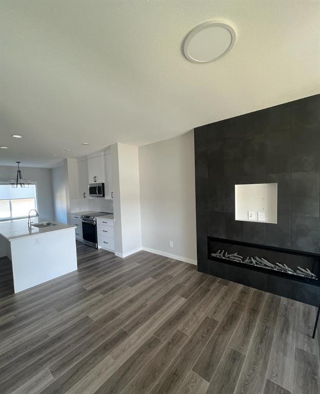 Another spectacular SEMI DETACHED, 3 Bedroom and 2.5 Bathroom by Emerald New Homes in a highly sought-after Community in SW Airdrie, COOPERS CROSSING. This home features over 1400 square feet of living space with an open-concept layout that will surely impress you. As soon you enter this gorgeous home you will be greeted by VINYL Flooring, ELECTRIC FIREPLACE in the living room and a spacious kitchen that offers stainless steel appliances, Quartz Countertops and ample cabinets. The dining area is adjacent to the kitchen, overlooking the backyard. The upper level is complete with 1 MASTER bedroom, full ensuites & walk-in closets, convenient upper-floor laundry and 2 additional rooms. To top it off this home comes with DOUBLE DETACHED GARAGE. The basement is unfinished however, the builder is available to complete the basement development at an additional cost if that is something of interest to you. (id:22211)