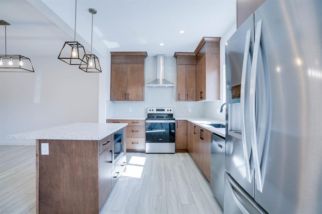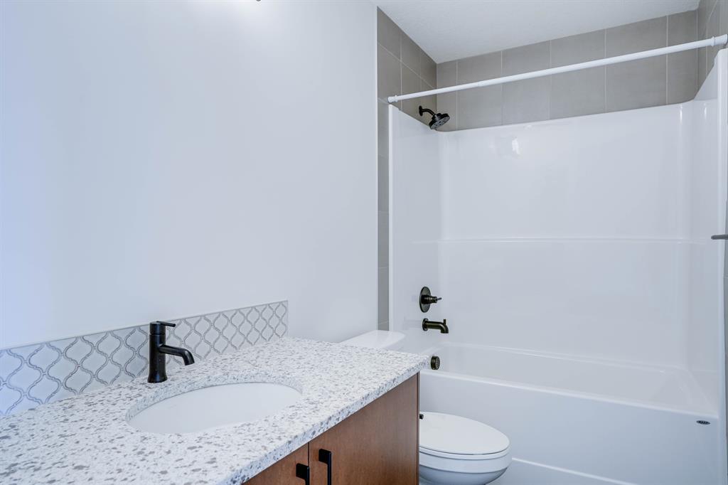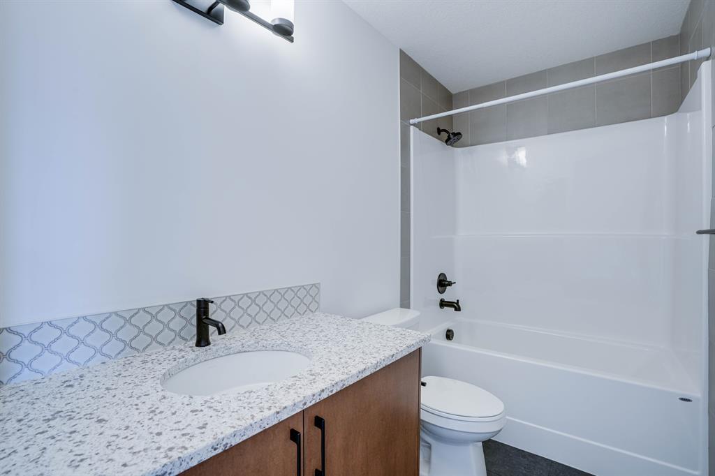 Live in Airdrie’s most desirable & sought-after neighborhood – Bayview! …RIGHT NEXT TO THE PARK/PLAY GROUND! A BRAND NEW, never lived home with plenty of room for the whole family. Enjoy the bright main floor with a spacious den, living room, kitchen and dining! The kitchen has sophisticated finishings with quartz counters, stainless-steel appliances, and slow close cabinets that reach to the ceiling. Off the kitchen is the sunny dining room and large mudroom with direct access to the backyard. Upstairs you will find 2 large bedrooms, convenient second floor laundry room, and a 4-pc bath. At the front of the house is the generous sized Master bedroom, its own ensuite and walk in closet. This home has QUARTZ COUNTERS everywhere, 9’ knockdown ceilings, designer lights, including pot lights, upgraded backsplash and the craftsmanship. Undeveloped basement with SEPERATE ENTRANCE awaits your creative ideas for future development and potential for secondary suite upon city approval. Book your showing today with your favorite Realtor!! (id:22211)