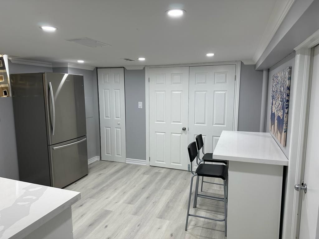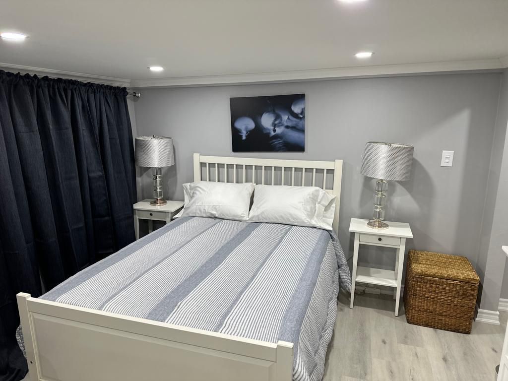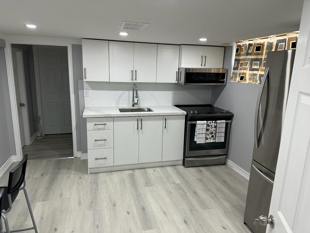 Welcome to your new home! Simply bring your personal belongings and move right in! Neutral decor throughout. Enjoy the privacy provided by the separate entrance. This recently modernized and renovated basement unit is fully equipped with almost everything you need for comfort. In addition to the provided dishes and cookware, the kitchen also includes some small appliances for your convenience. The modern eat-in kitchen, complete with an island, features elegant marble countertops and stainless steel appliances, making cooking a delight. The two spacious bedrooms come fully furnished, and one of them can easily be transformed into a family or TV room to suit your preferences (owner will remove the furniture). You'll have the added benefit of two parking spaces in the driveway. Additionally, make the most of your exclusive use of the side patio area to relax and unwind.Stainless Steel Fridge,, Stove, Vent Hood/Microwave, Washer & Dryer (shared with Owner).
