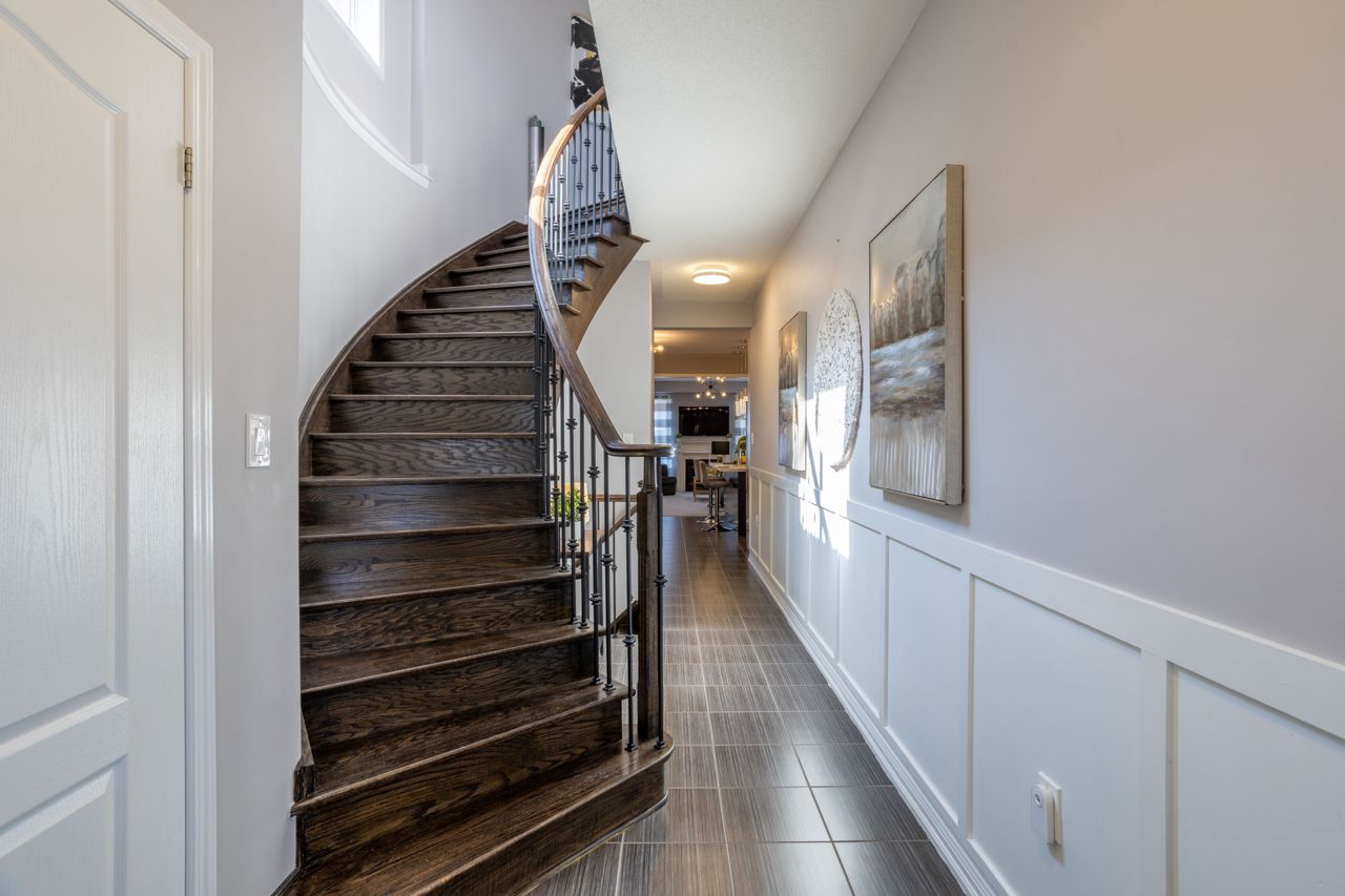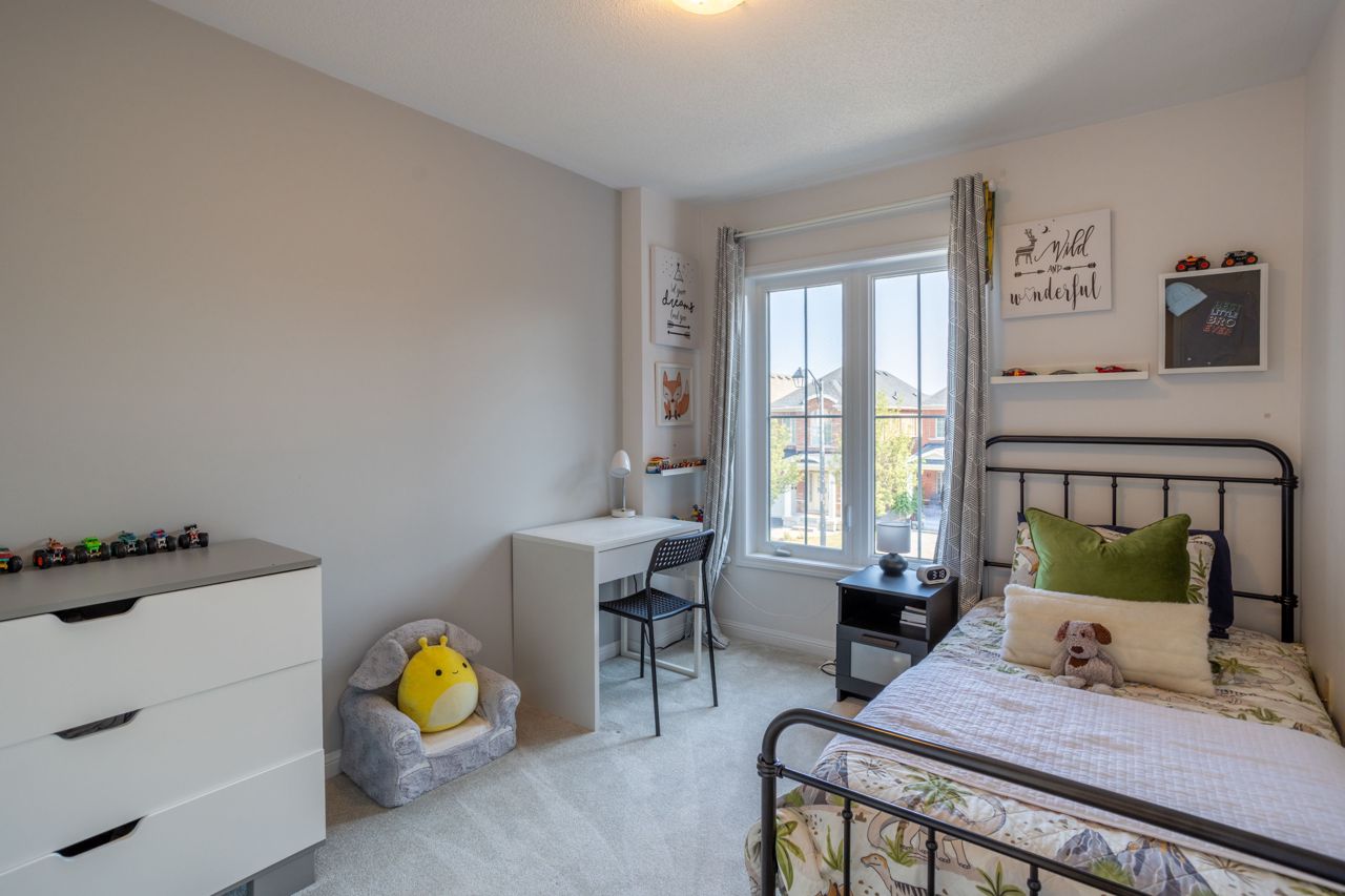 **We are still accepting showings during Conditional Period**Welcome to the Bluebird Model by renowned Marshall Homes, located in the desirable Meadow Ridge enclave of Northwest Ajax. Offered for the first time by the original owner, this beautifully maintained home showcases true pride of ownership from top to bottom.The main floor features 9-foot ceilings, a modern kitchen with stainless steel appliances, large centre island, smooth ceilings, and a bright, open layout. The oversized family room, complete with a cozy gas fireplace, overlooks the partially interlocked backyard with plenty of green space ideal for entertaining or a safe play area for children. Upstairs, the spacious primary bedroom offers a private 4-piece ensuite and walk-in closet with backyard views. A versatile upper-level nook provides the perfect space for a home office or reading area.Situated close to top-rated schools, greenbelt, walking trails, parks, highways, public transit, and more this is the perfect blend of comfort, style, and convenience.This is more than just a property its a home your family will cherish for years to come. **Link Home Only By Garage** Hot Water Tank (2018)