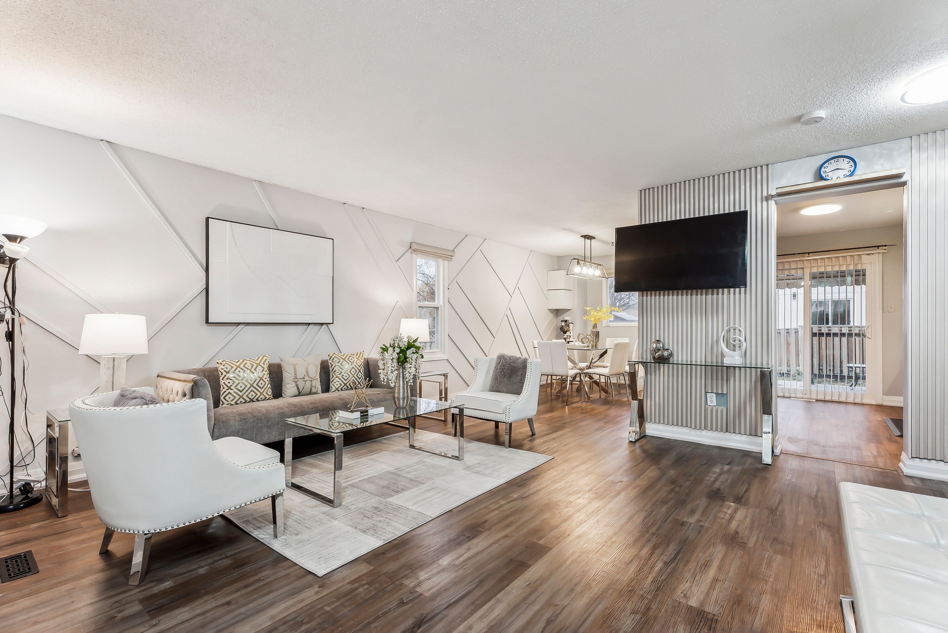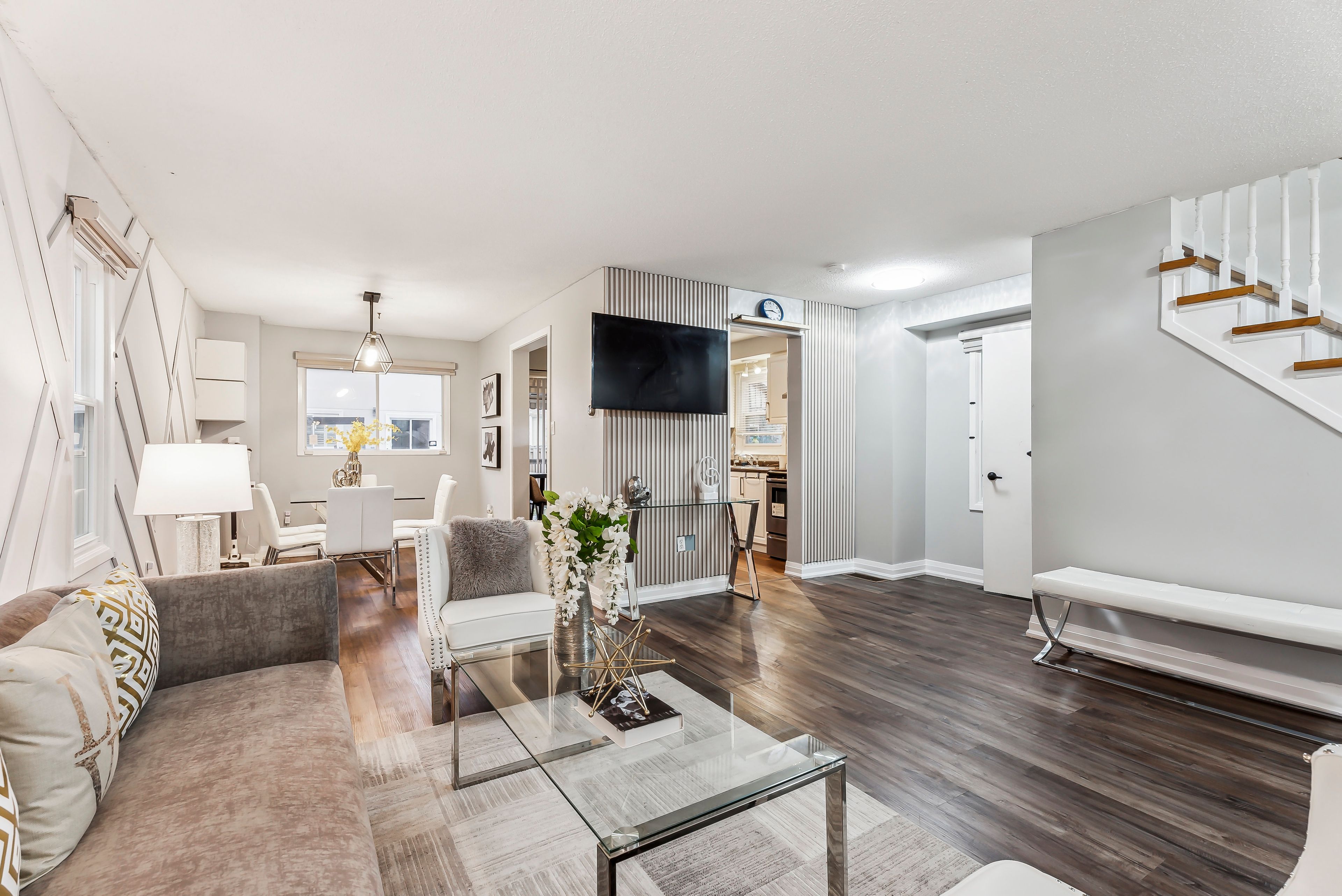 AWESOME 3 BEDROOM WITH ADDITIONAL OFFICE/4TH BDRM HOME FOR SALE IN A DESIRABLE AND SOUGHT-AFTER NEIGHBOURHOOD IN AJAX. This newly painted home boasts of a renovated open concept living and dining area with modern LED light chandelier. The sun-filled kitchen has a window above the double sink and glass sliding door which walks out to the open deck in the backyard. This Property Features Hardwood Stairs, Vinyl Floors throughout the Main Level And Laminate Floors On the Second Level. Primary Bedroom Includes 2-Piece Ensuite and a mirrored closet. Finished Basement has a Recreation Area Featuring a Brick Fireplace, And Flexible Room that can be used As Office Or Bedroom. Spacious Backyard is Perfect For Summer BBQs Or just Relaxing With family & Friends on the patio deck. The entire area is surrounded by mature trees and is conveniently located near Schools, Parks, Shopping Centres and other Amenities. Also walking distance to Durham Region Transit which connects To G.O. Train Station And U.O.I.T./Durham College. Minutes To 401/Westney Exit. This Home Is Move-In Ready and Perfect for First Time Home Buyers. Don't miss this wonderful opportunity to Own a Home in a Great Location!