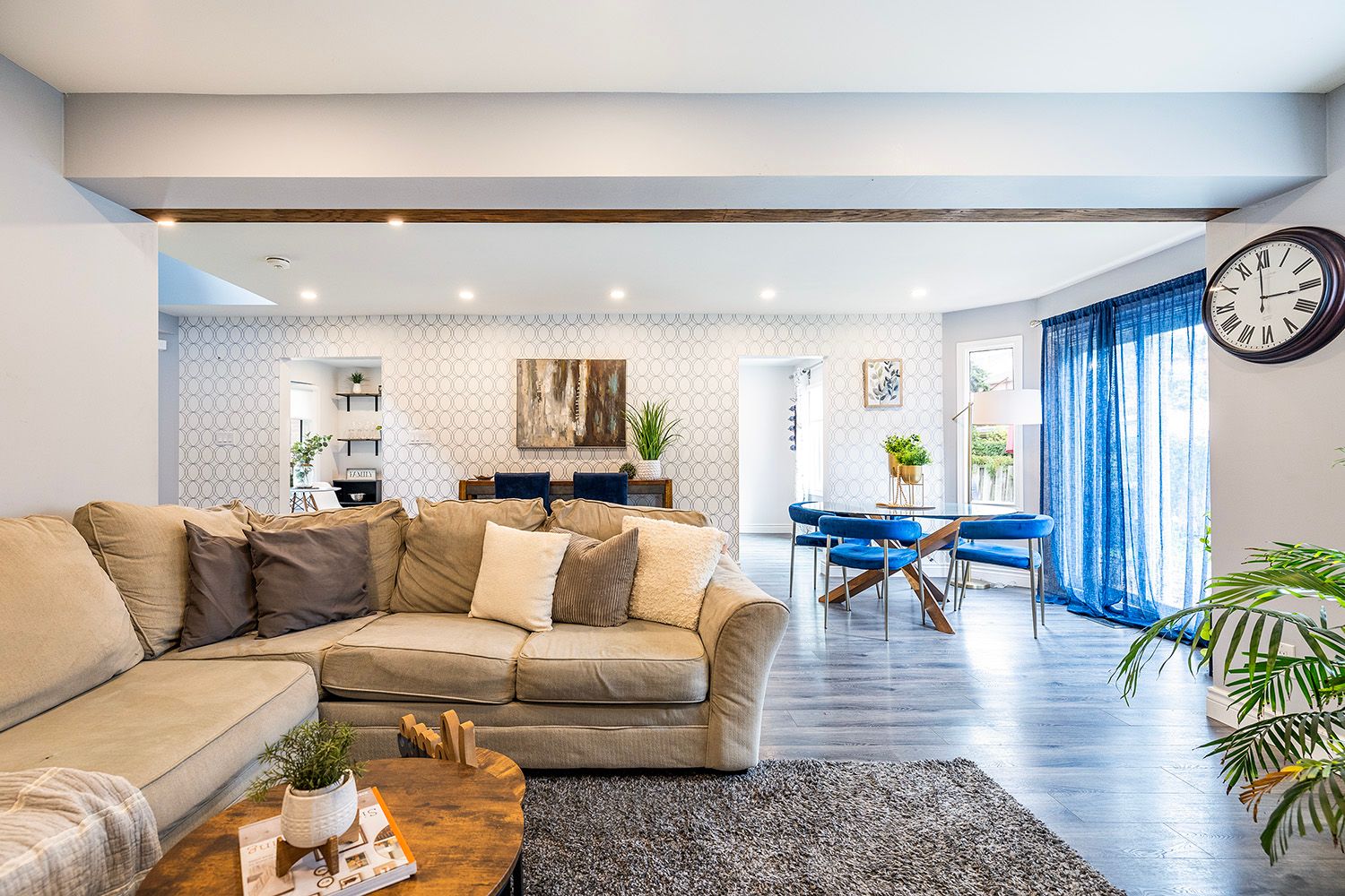 Relish the Modern Touches of this Newly Renovated Home with a Brilliant Open Concept. Completely New Interior Renovated in 2019 back to the studs & boasts New Drywall, Updated Insulation, New Electrical & Panel, New Plumbing, New Pot Lights & ELFs. Newly Installed Kitchen, Bathrooms, Flooring, Appliances & Stair Railing. Mostly Newer Windows & Doors. New Enlarged Front Entrance & Potential for Inside Garage Door. Large primary Bedroom with 4-Pc Ensuite, including a Large Custom Glass Shower, double Sink Vanity & Built-In Storage Shelving. Magnificent Natural Light, Large Deck & Fenced South Facing Backyard. An Ideal location for any Family with walking distance to 2 Elementary Schools, High Schools, Parks, McLean Comm Ctr, Transit & Several Shopping Plazas. End Summer off Right in Your New Home!Quick Closing Preferred, be in for the new school year.