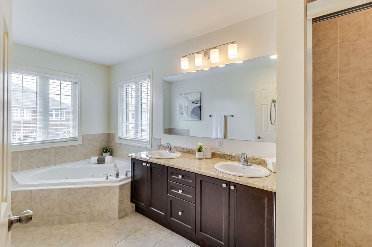 Gorgeous Beautifully Maintained Freehold Townhouse Minutes From The Lake. Located In The South Ajax Community. Bright , open concept on main floor. Walk out to large fenced off back yard. Great for summer entertaining, and a fireplace inside for the colder months in the living room. Large bright primary bedroom With 5-Pc. Ensuite & Walk-In Closet. Unfinished basement with tons of potential! Access To Home Thru Garage. Ideally Located Close To Lake, Trails, Public Transit & 401/412Open house this Sunday July 9th from 2-4 pm