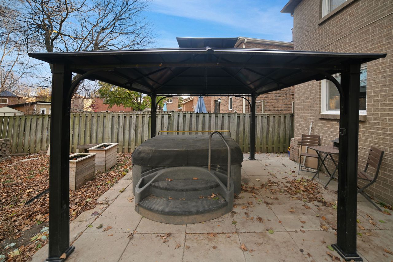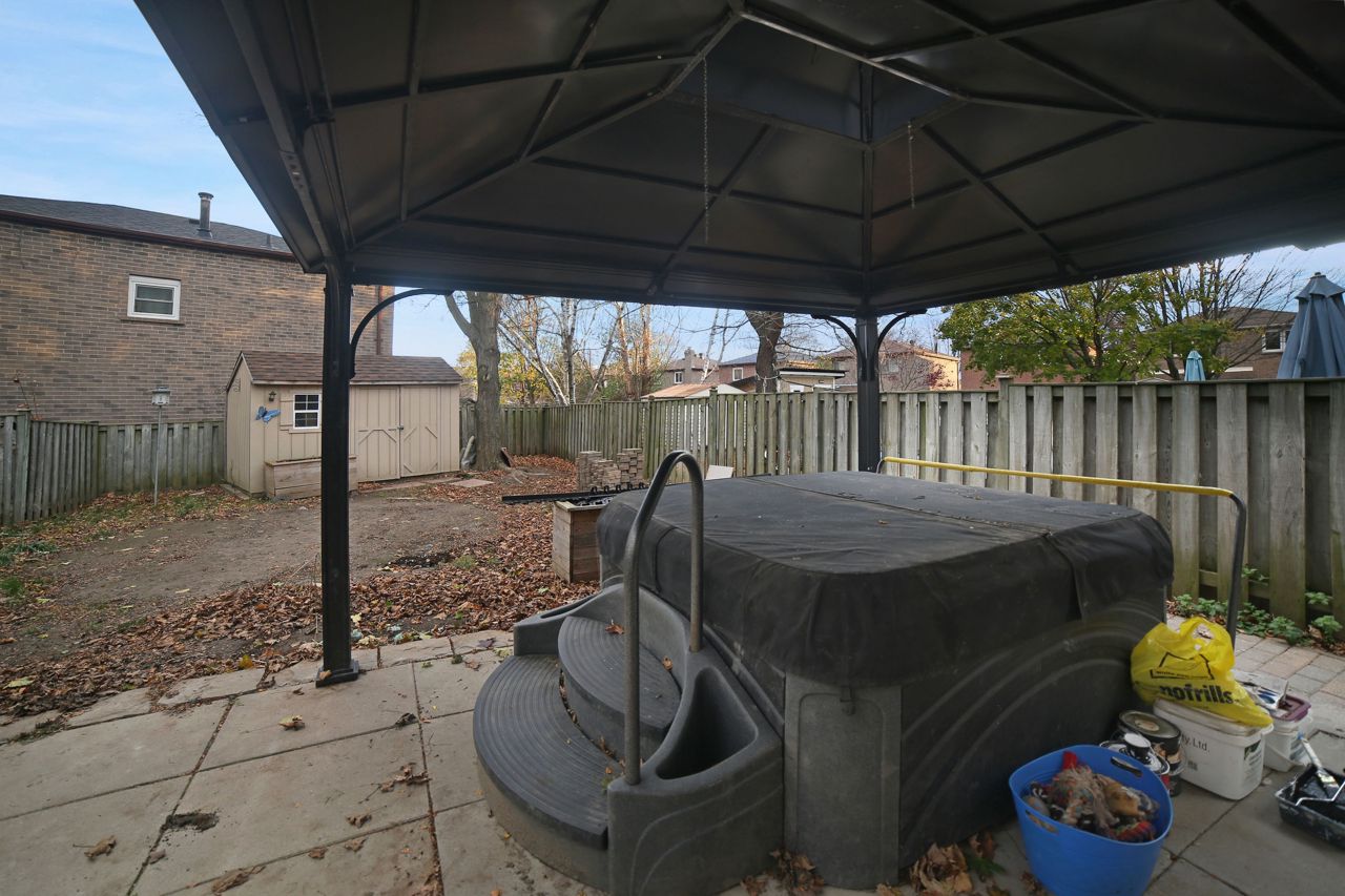Beautiful home located near schools, parks, the GO Station, and with easy access to the 401. Inside, a freshly painted interior compliments the updated kitchen and dining area featuring quartz counter-tops. The upper level has three bedrooms, including a primary bedroom with a walk-in closet. Finished basement with a two-piece bathroom. The fully fenced private yard features a hot tub, gazebo, garden shed, and two gates. This home has a water filtration system that is assumable by the buyer at $39.90 + hst per month.Hot tub & accessories, Gazebo, Garage opener & Remote