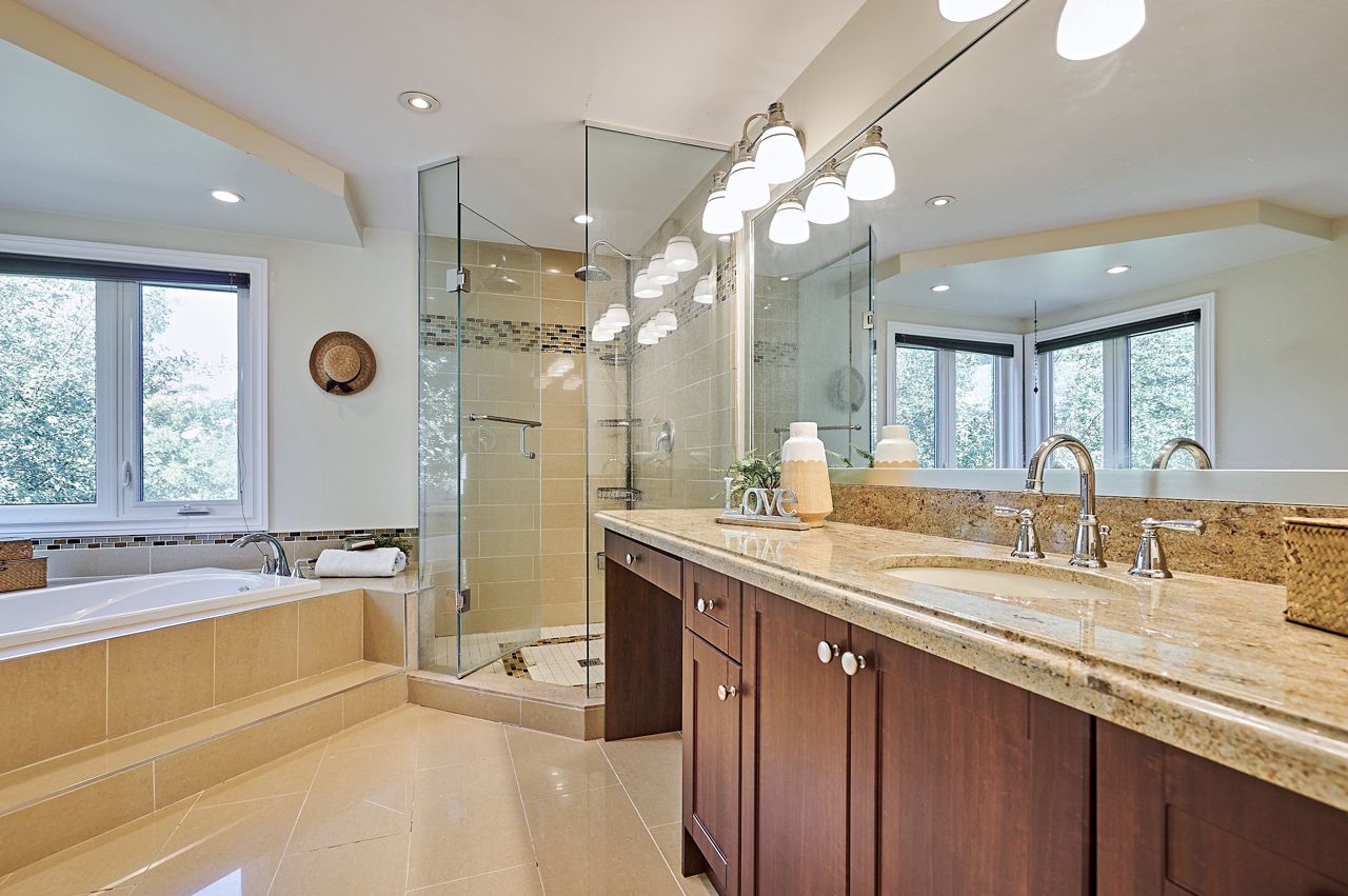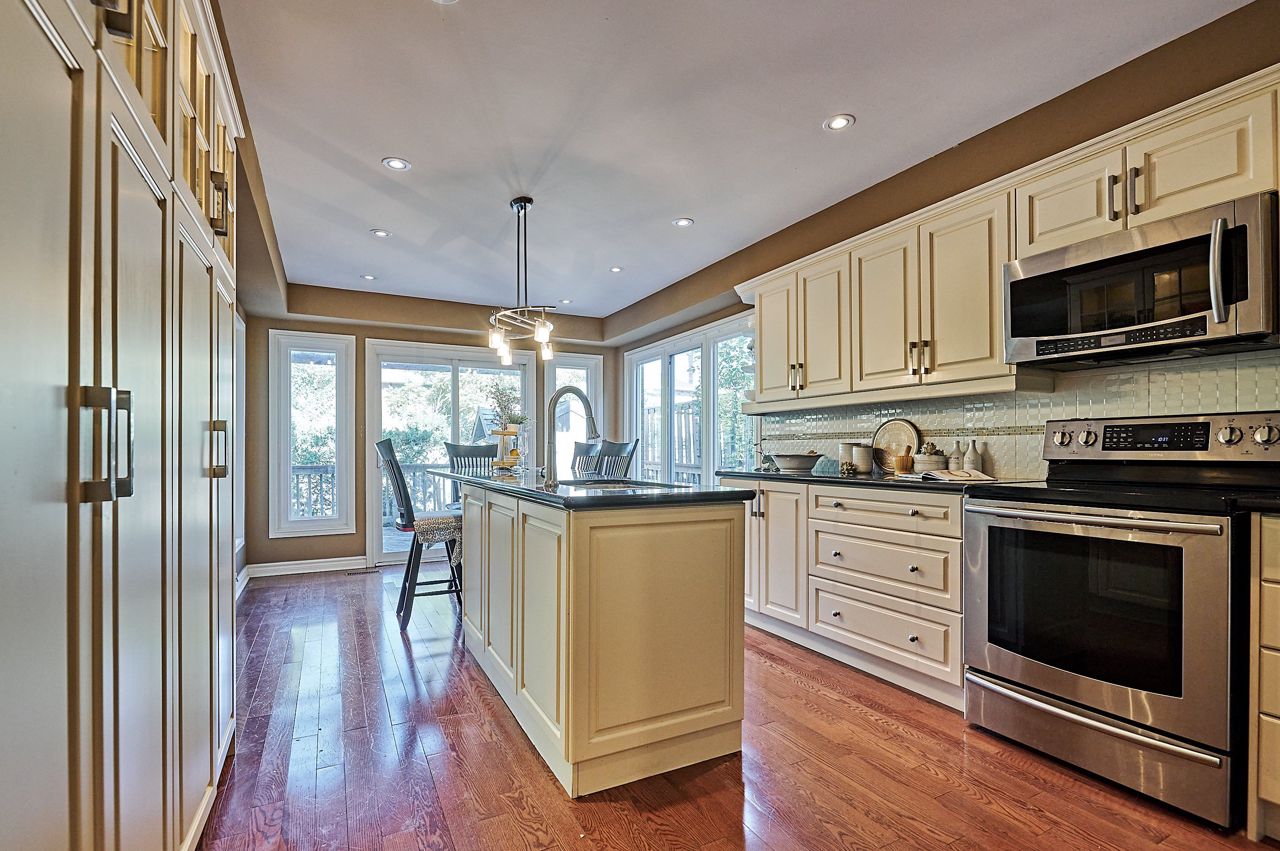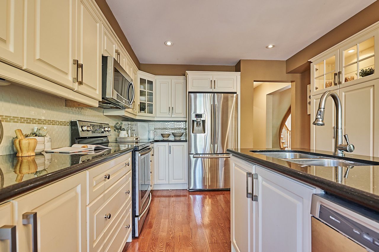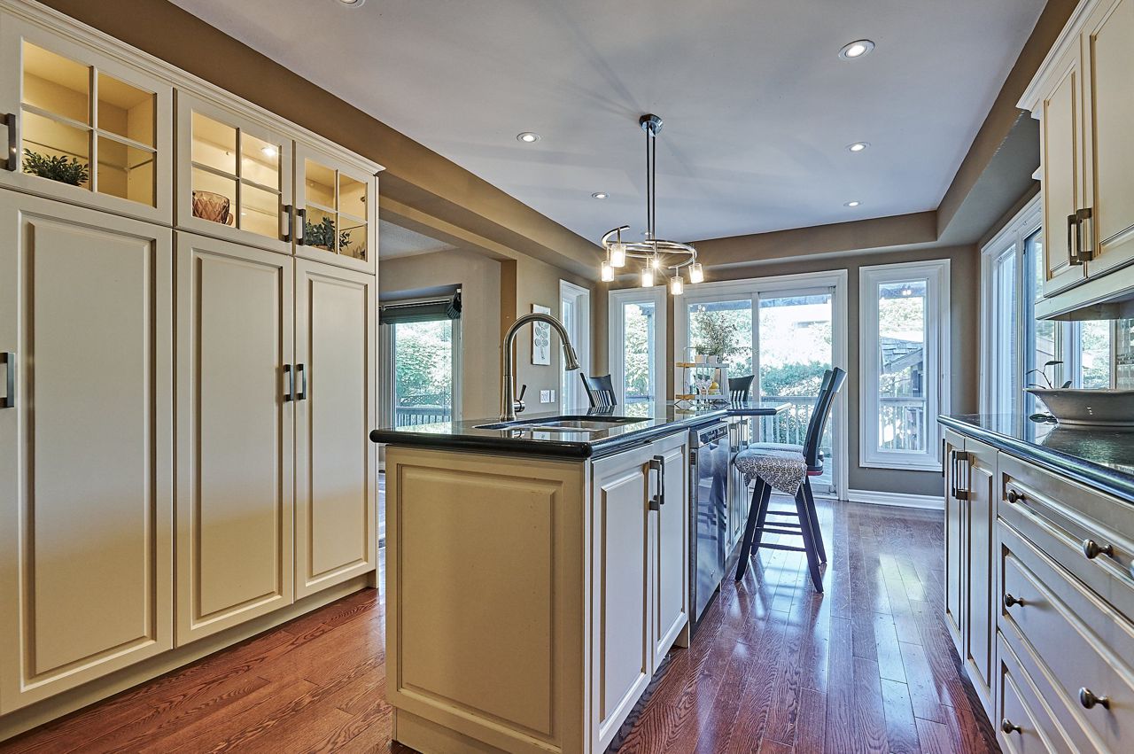 steps away from the shores of Lake Ontario. Beautifully updated kitchen featuring a large island