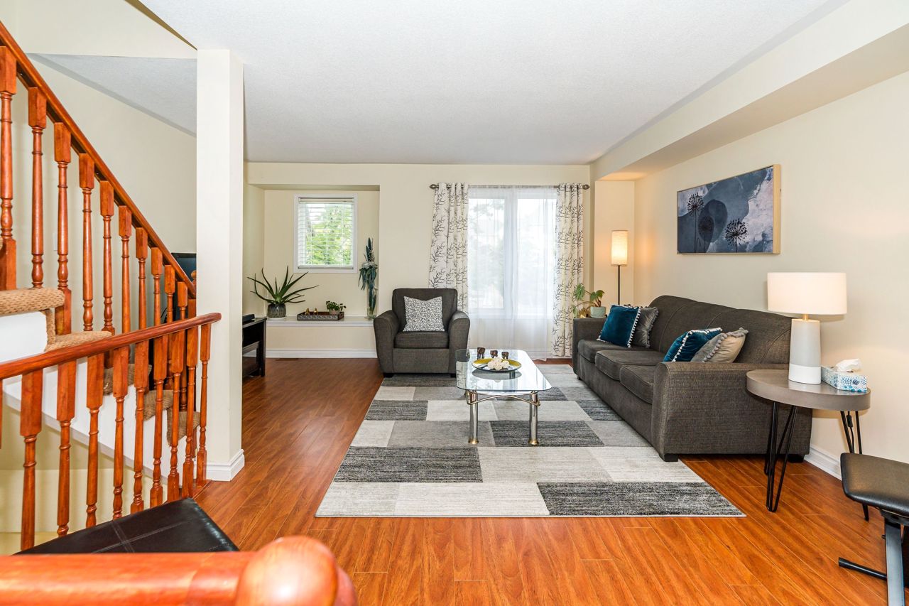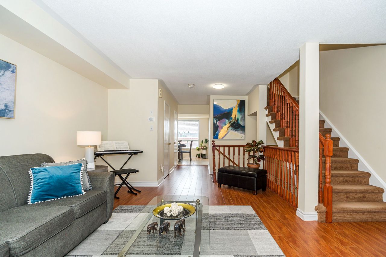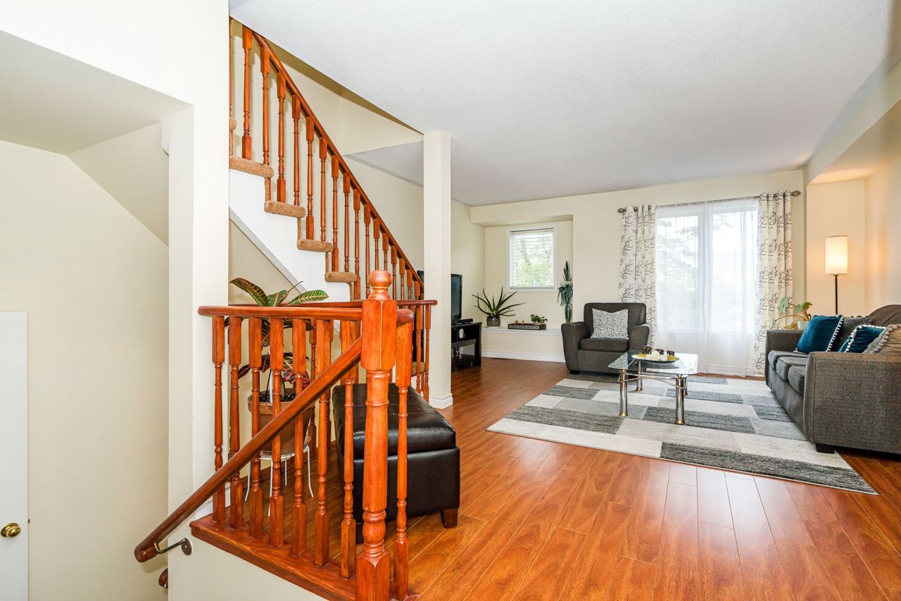 Welcome to this beautiful Family Home located in high demand central Ajax. Conveniently located with tons of amenities, entertainment, shopping, parks and trails close by including 401 access east/west. Walking distance To shopping, transit and great schools. Just move in and enjoy! Large foyer with ceramic floors leads to a bright open living area with large windows and plenty of natural light flowing through. Beautiful laminate floors throughout. Bright eat in kitchen with ceramic floors, ample cupboard space, quartz counters and under mount double sink. Upstairs features 3 good sized bedrooms. Lower level features finished walkout basement with rec room, access to garage and backyard patio perfect for entertaining. Perfect family home with playground and lots of kids in the area. Home is clean and move in ready.Includes fridge, stove, dishwasher and hood range. Washer (23) and dryer. All elfs. Central Vac sold as is - owner has never used it.