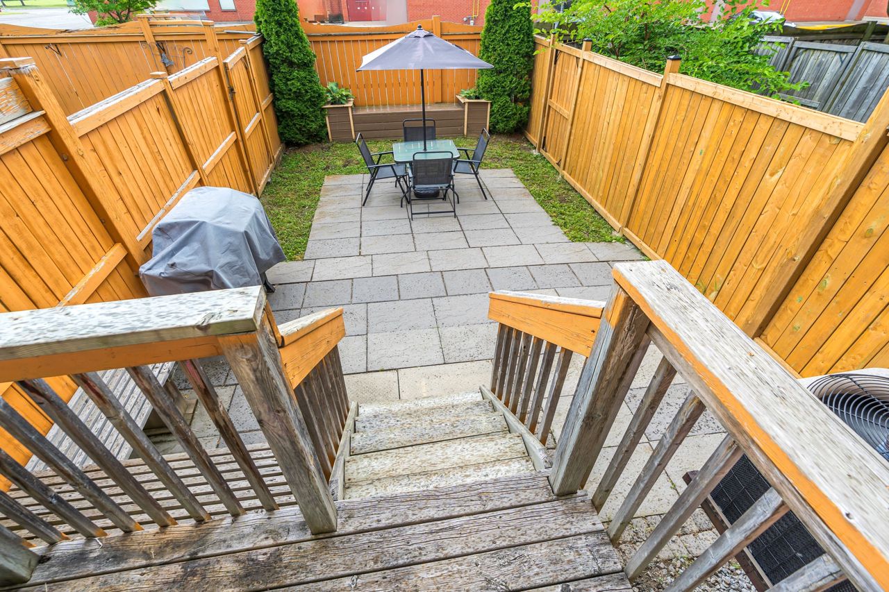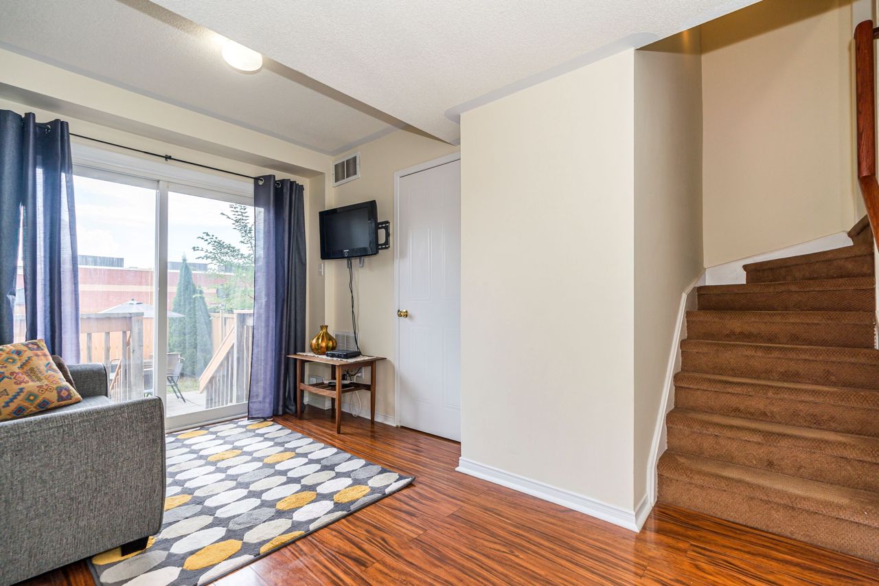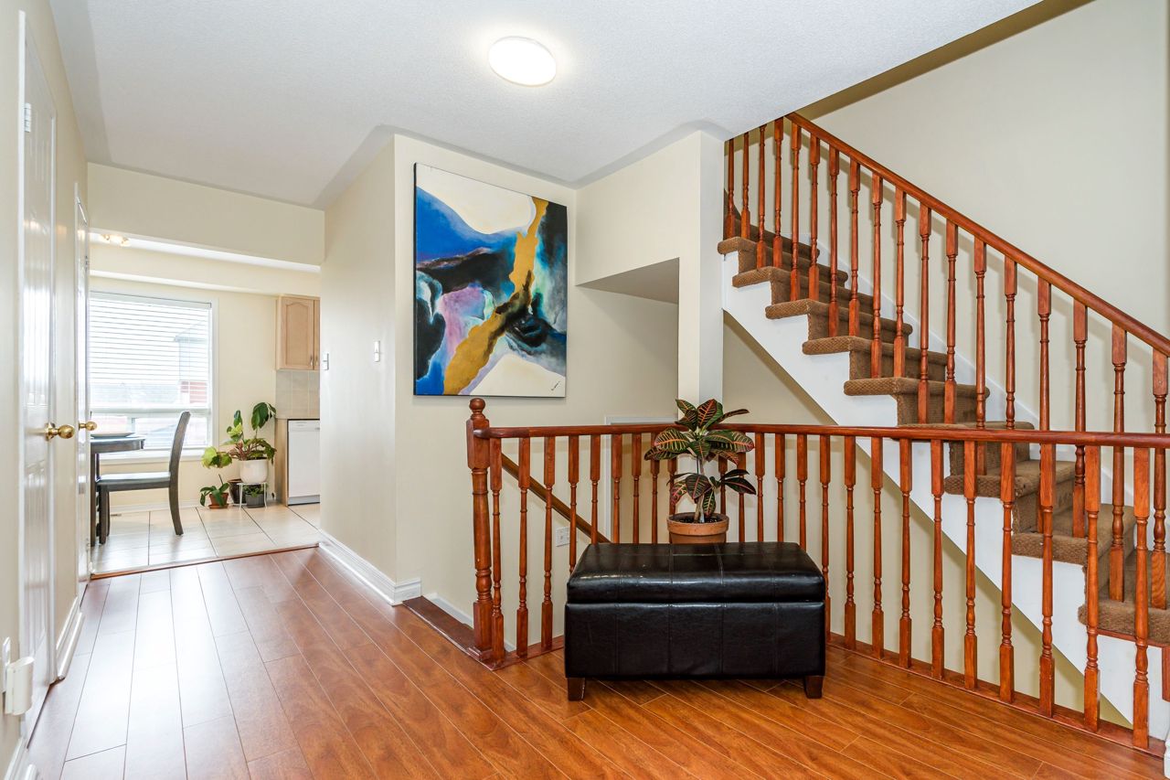 Welcome to this beautiful Family Home located in high demand central Ajax. Conveniently located with tons of amenities, entertainment, shopping, parks and trails close by including 401 access east/west. Walking distance To shopping, transit and great schools. Just move in and enjoy! Large foyer with ceramic floors leads to a bright open living area with large windows and plenty of natural light flowing through. Beautiful laminate floors throughout. Bright eat in kitchen with ceramic floors, ample cupboard space, quartz counters and under mount double sink. Upstairs features 3 good sized bedrooms. Lower level features finished walkout basement with rec room, access to garage and backyard patio perfect for entertaining. Perfect family home with playground and lots of kids in the area. Home is clean and move in ready.Includes fridge, stove, dishwasher and hood range. Washer (23) and dryer. All elfs. Central Vac sold as is - owner has never used it.
