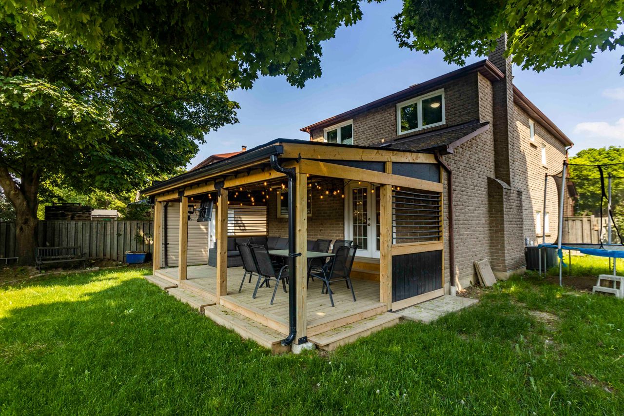 *** No Neighbours Behind! Pie-shaped Lot with Private Backyard *** Fully renovated kitchen (2020) features large quartz countertop, ample cabinetry * Finished Basement with Den (2020) perfect for Bedroom/Office/Exercise Rm * Custom-built Shed w/ Electrical (2020) * Large Custom-Built Covered Deck with Skylights & Privacy Screens (2020) * Stone Walkway (2023) * Furnace (2018) * Roof Shingles (2018) * Primary Bedroom has 3 Closets w/ Potential for 4pc Ensuite * Secluded, Quiet, Family-Oriented Cres flanked by Greenspace & Westney Heights Plaza w/ Neighbourhood Watch & No Thru-Traffic * Walking distance to Everything incl Shopping, Restaurants, Schools, GO Transit, & Miller Creek Park & Trails *All existing ELFs, Appliances incl Fridge, Stove, B/I Microwave-Rangehood, B/I dishwasher, washer, & dryer, Window Coverings