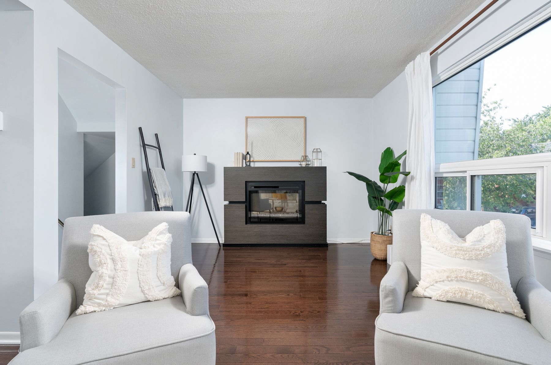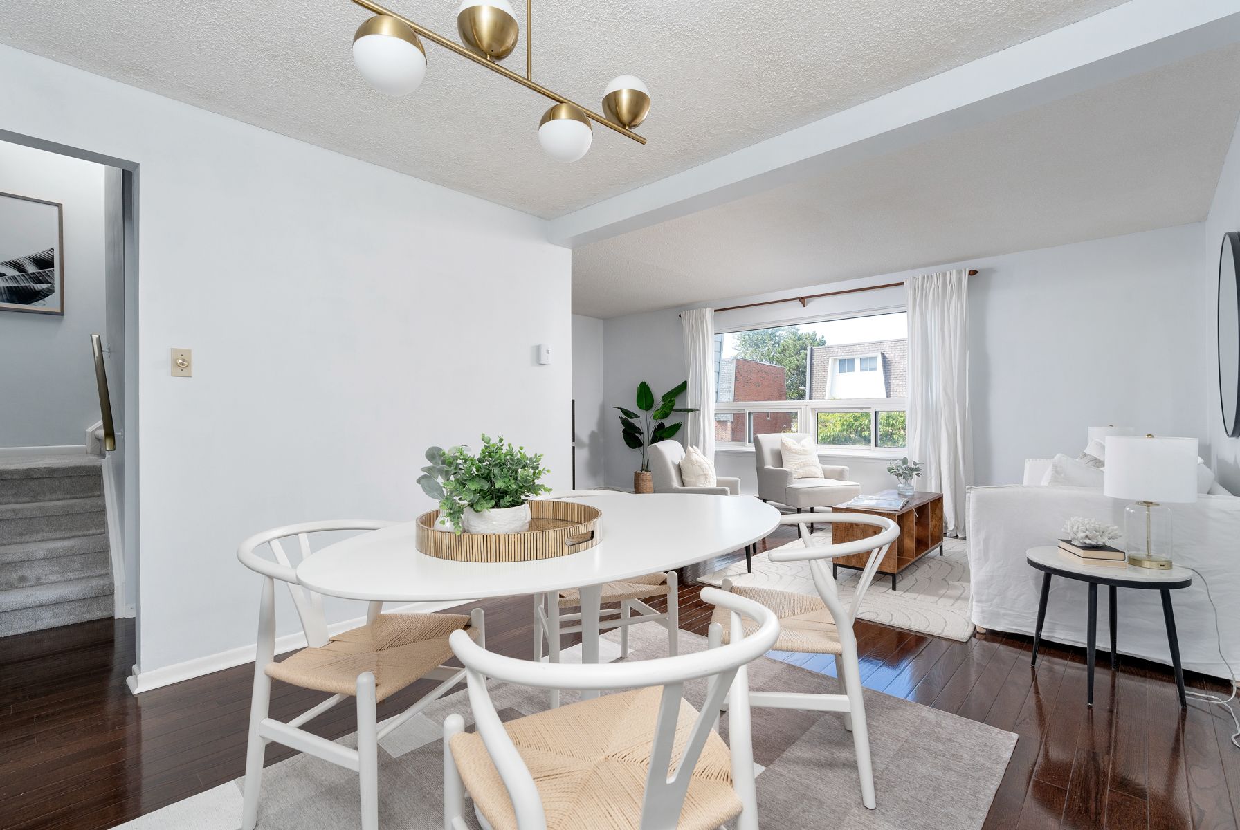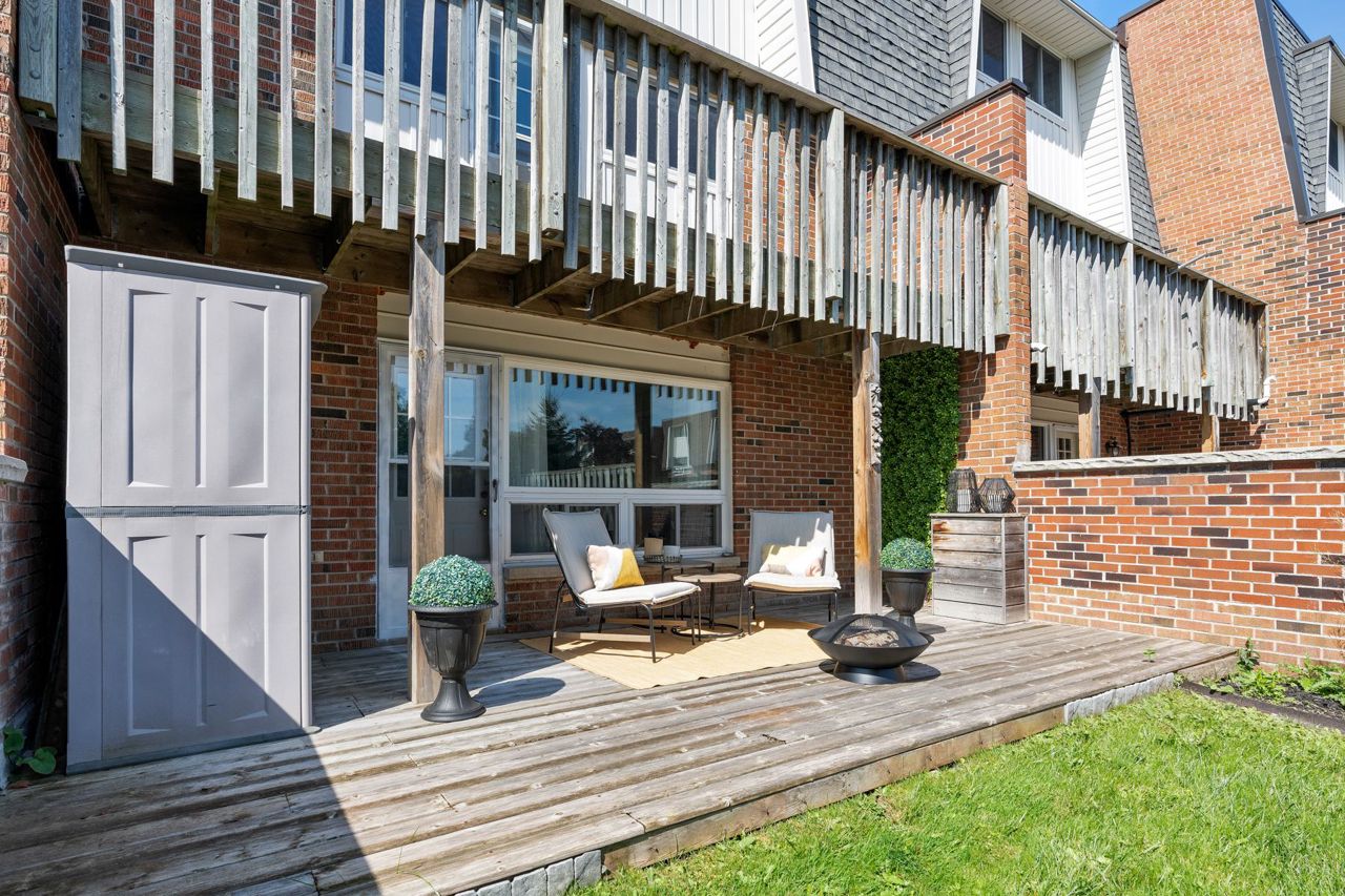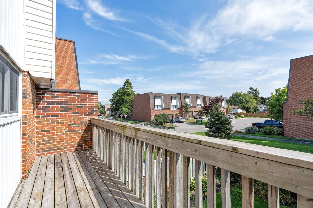 Stylish and move in ready 3 bed 1.5 bath condo townhome located in beautiful South Ajax! Steps from Lake Ontario and The Ajax Waterfront Trail. Walking distance to grocery stores, shops, restaurants, schools, healthcare, public transport, and minutes from the 401. Open main floor features hardwood flooring throughout, 9Ft ceilings, and large windows for lots of natural light. Large dining room area can comfortably fit a 6-8 seat table. Sizable kitchen w/ new stainless steel appliances, lots of cupboard space, breakfast nook, and walk out to a large east facing balcony. Living room happily fits a large sectional and features accent mantle w/ electric fireplace. Upper level features 3 spacious bedrooms, beautifully updated washroom and so much storage throughout. Walk-in level features a flex room that makes for a perfect office and gym w/ walkout to a fully fenced backyard and large wooden deck to enjoy your morning coffee or al fresco dining. 1,292 sqft of very well utilized space!Offers anytime! Condo fees include water, cable TV, Internet, landscaping of common grounds, snow removal of private road, roof and windows, visitor parking.