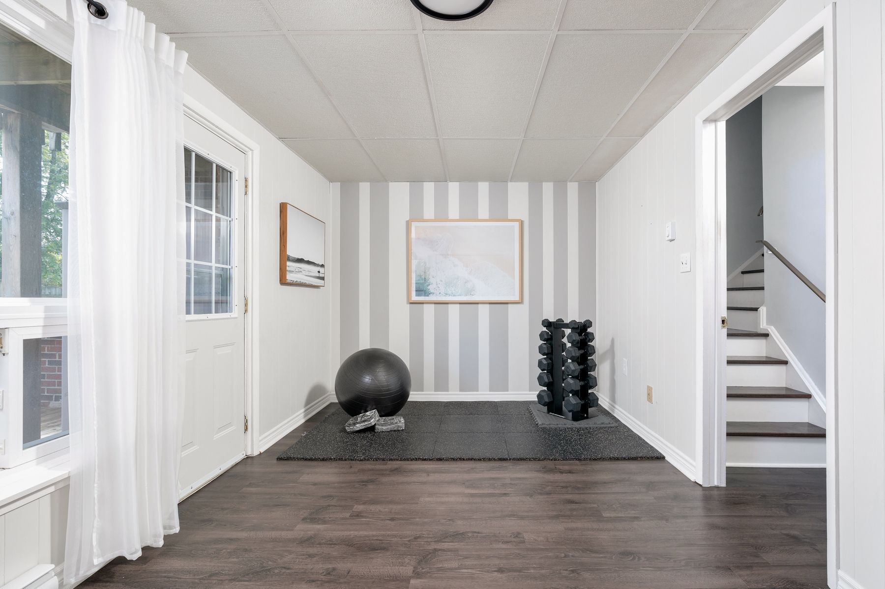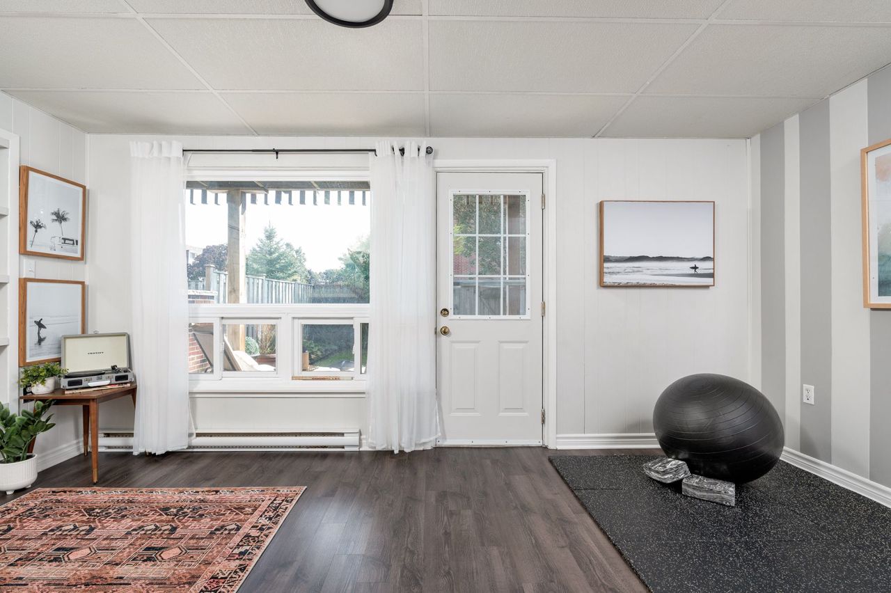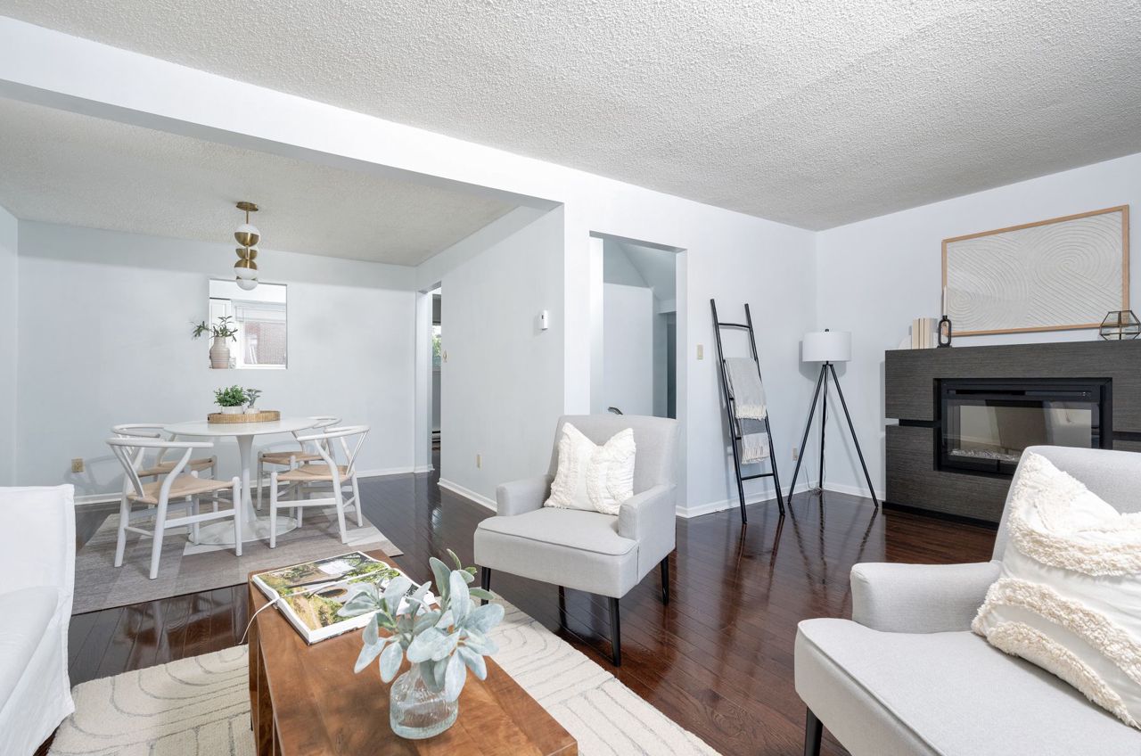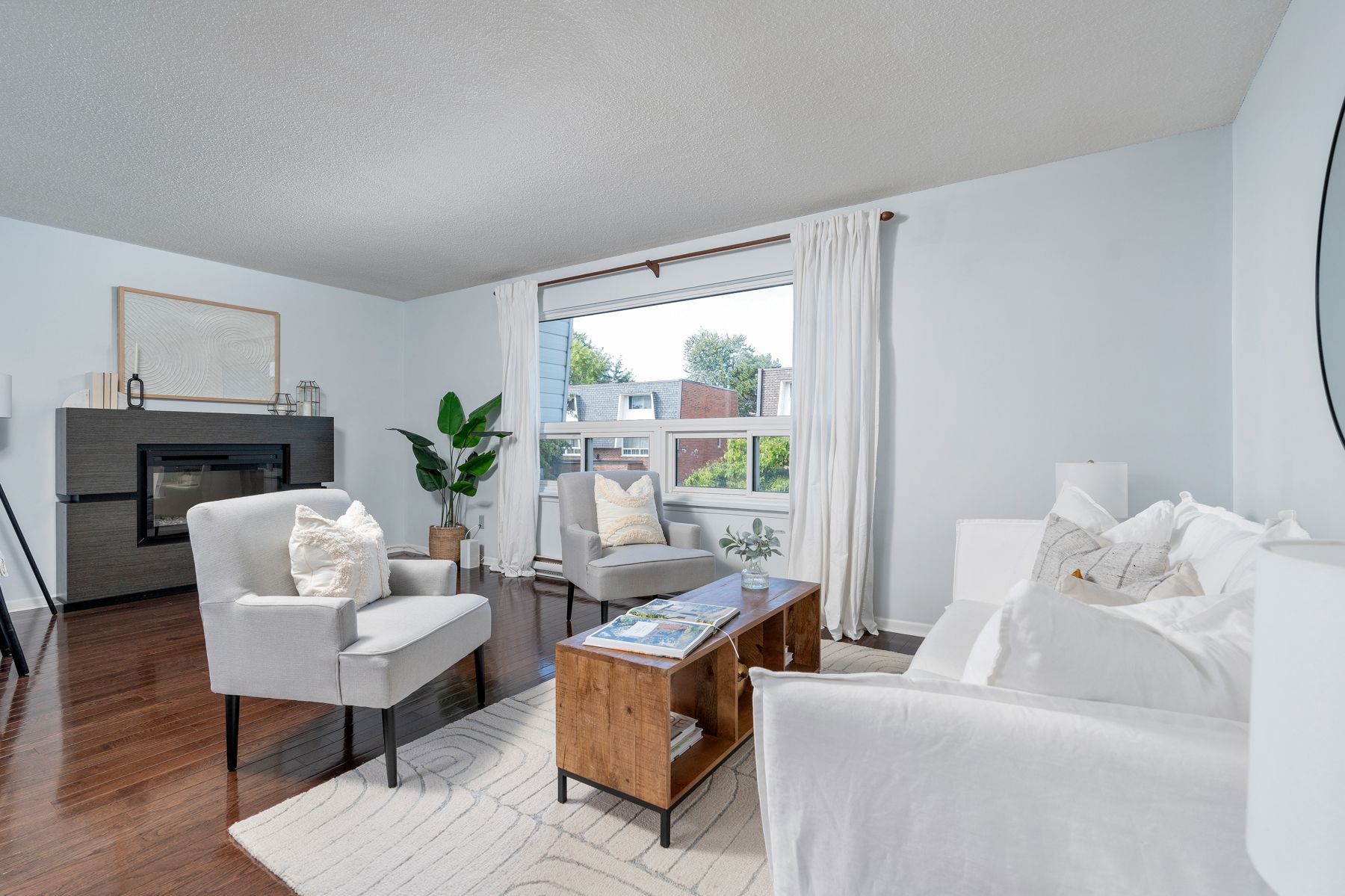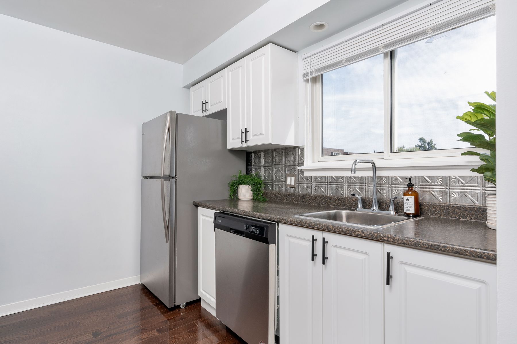 Stylish and move in ready 3 bed 1.5 bath condo townhome located in beautiful South Ajax! Steps from Lake Ontario and The Ajax Waterfront Trail. Walking distance to grocery stores, shops, restaurants, schools, healthcare, public transport, and minutes from the 401. Open main floor features hardwood flooring throughout, 9Ft ceilings, and large windows for lots of natural light. Large dining room area can comfortably fit a 6-8 seat table. Sizable kitchen w/ new stainless steel appliances, lots of cupboard space, breakfast nook, and walk out to a large east facing balcony. Living room happily fits a large sectional and features accent mantle w/ electric fireplace. Upper level features 3 spacious bedrooms, beautifully updated washroom and so much storage throughout. Walk-in level features a flex room that makes for a perfect office and gym w/ walkout to a fully fenced backyard and large wooden deck to enjoy your morning coffee or al fresco dining. 1,292 sqft of very well utilized space!Offers anytime! Condo fees include water, cable TV, Internet, landscaping of common grounds, snow removal of private road, roof and windows, visitor parking.