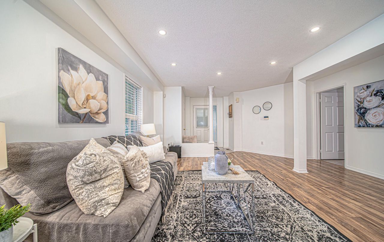 Remarkable 5 bedroom executive home in highly coveted, family oriented neighborhood at the heart of Ajax. Conveniently near to several schools, parks, public transit and all amenities. This 2 storey brick home features an inviting open concept main floor flooded with natural light from numerous windows and pot lights throughout, seamless blend of the living room and family room with gas fireplace. The family sized kitchen features ceramic floors, back splash, breakfast bar and a breakfast area with walk-out to a deck. The upper level showcases 5 bedrooms highlighting the extra large primary bedroom with spa like 4 pc ensuite bath and walk-in closet. Huge unfinished basement offers endless potential to create the perfect space for your needs complete with a separate access at the back. Attached double car garage and a private fenced yard.New pot lights throughout the main floor