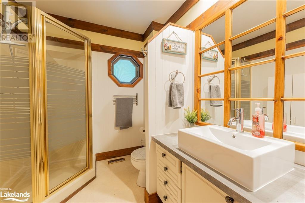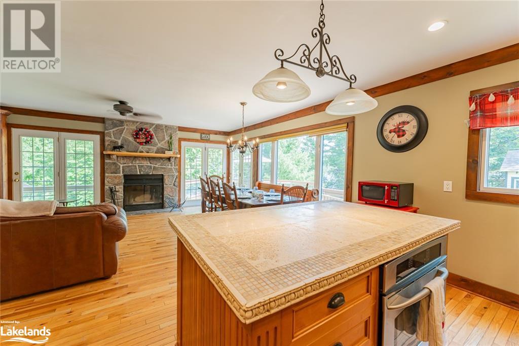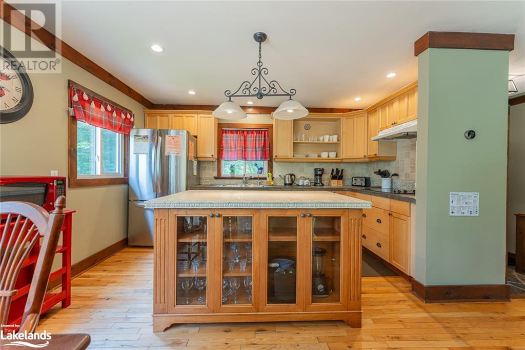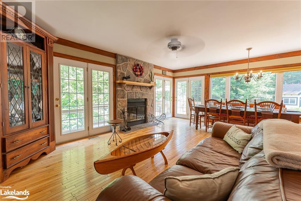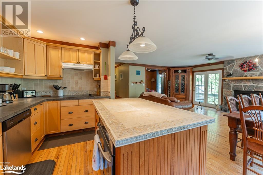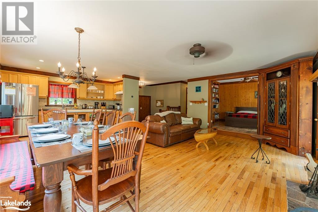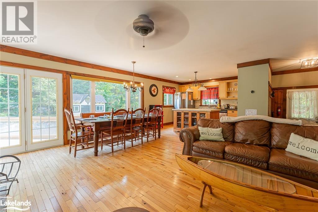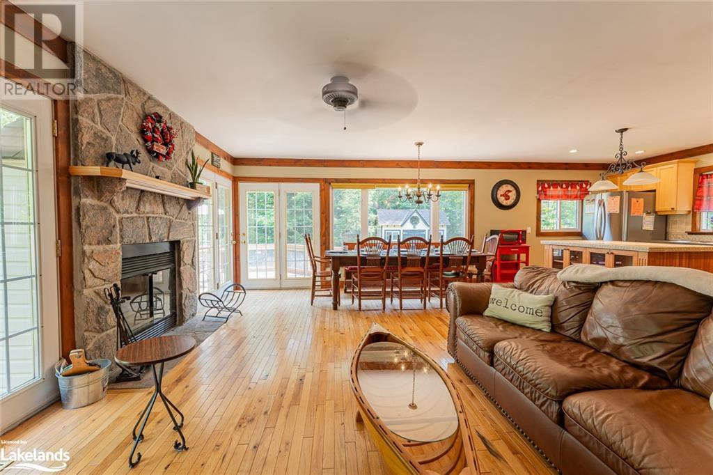 Welcome to Kushog Lake in the heart of Algonquin Highlands! This waterfront property could be your year round home or cottage, or investment property. With over 2100 square feet of living space, this turnkey 4-bedroom, plus den, 2-bathroom cottage/home is a haven for both relaxation & recreation. Hardwood floors grace the main level, creating a warm & inviting ambiance. The spacious open-concept living/dining room and kitchen boast walls of windows that flood the space with natural light throughout the day. The heart of the living area features a cozy fieldstone fireplace, a focal point that enhances the rustic charm of the cottage & provides comfort during the cooler fall evenings. Multiple walkouts lead to an expansive lakeside deck, offering an idyllic setting for your morning coffee, afternoon BBQs, or evening cocktails. The lower level of the cottage is designed to keep friends & family entertained, equipped with a pool table, board games, & a cozy space for movies/TV. Enjoy all-day sun, hard-packed sand bottom with a shallow entry to the lake. A well-constructed floating dock system with 10' depths at the end invites you to dive into the crystal-clear waters of Kushog Lake. The property is situated on a lake system with miles of boating possibilities. Explore the serene waters, engage in water sports, or simply take in the breathtaking scenery. With sleeping arrangements for 12+, hosting friends & family is a breeze. Everyone can share in the joy of lakeside living. If you're considering an investment, this property boasts a track record of proven income as a rental property. Make your lakeside dream a reality while generating income. Many upgrades over the past 2 years, such as a new septic system, propane forced air furnace with A/C, laminate flooring in the lower level, stainless steel appliances, & more. Comes fully furnished for your immediate enjoyment. (id:22211)